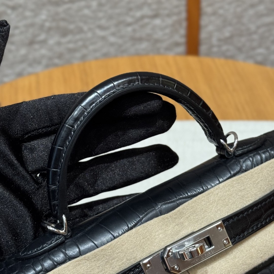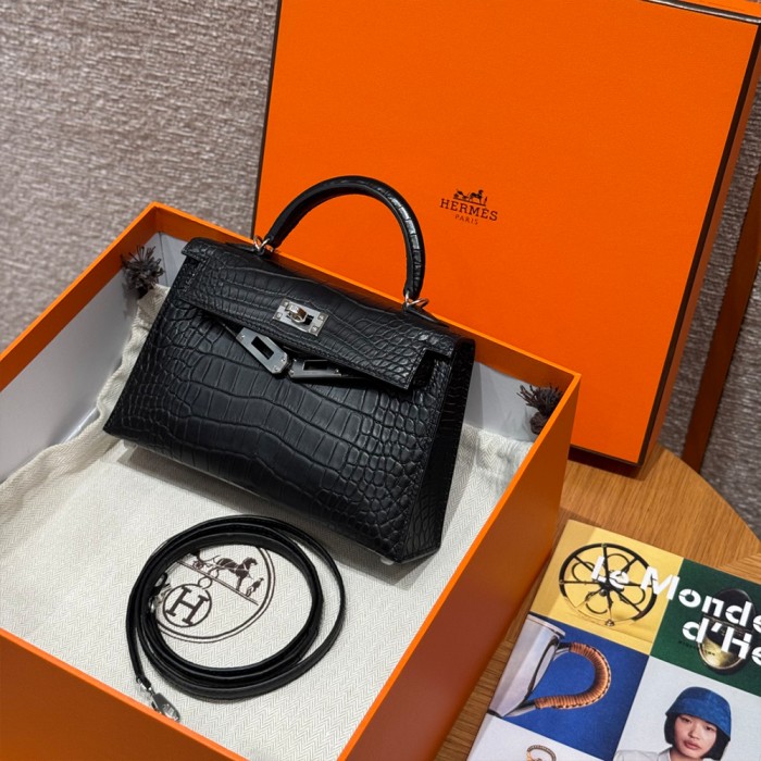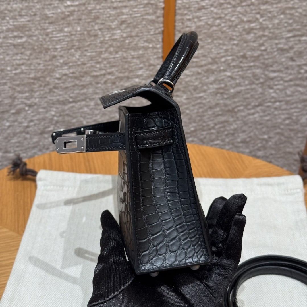 올수공 에르메스 미니 켈리 89/noir 악어 가죽 실버 하드웨어