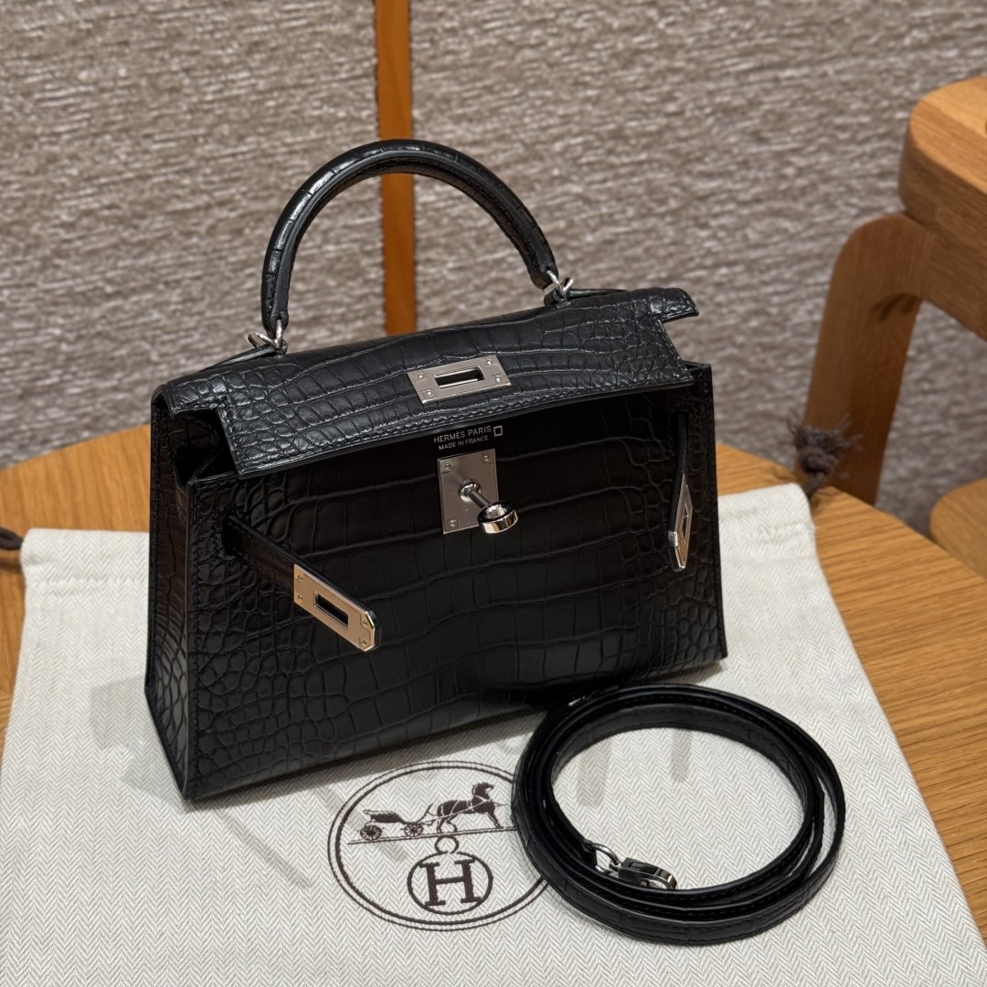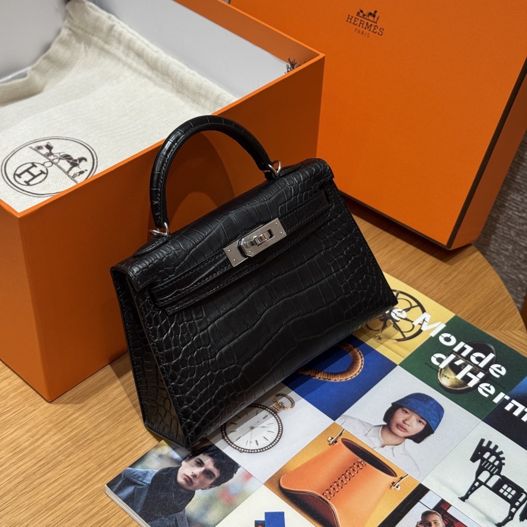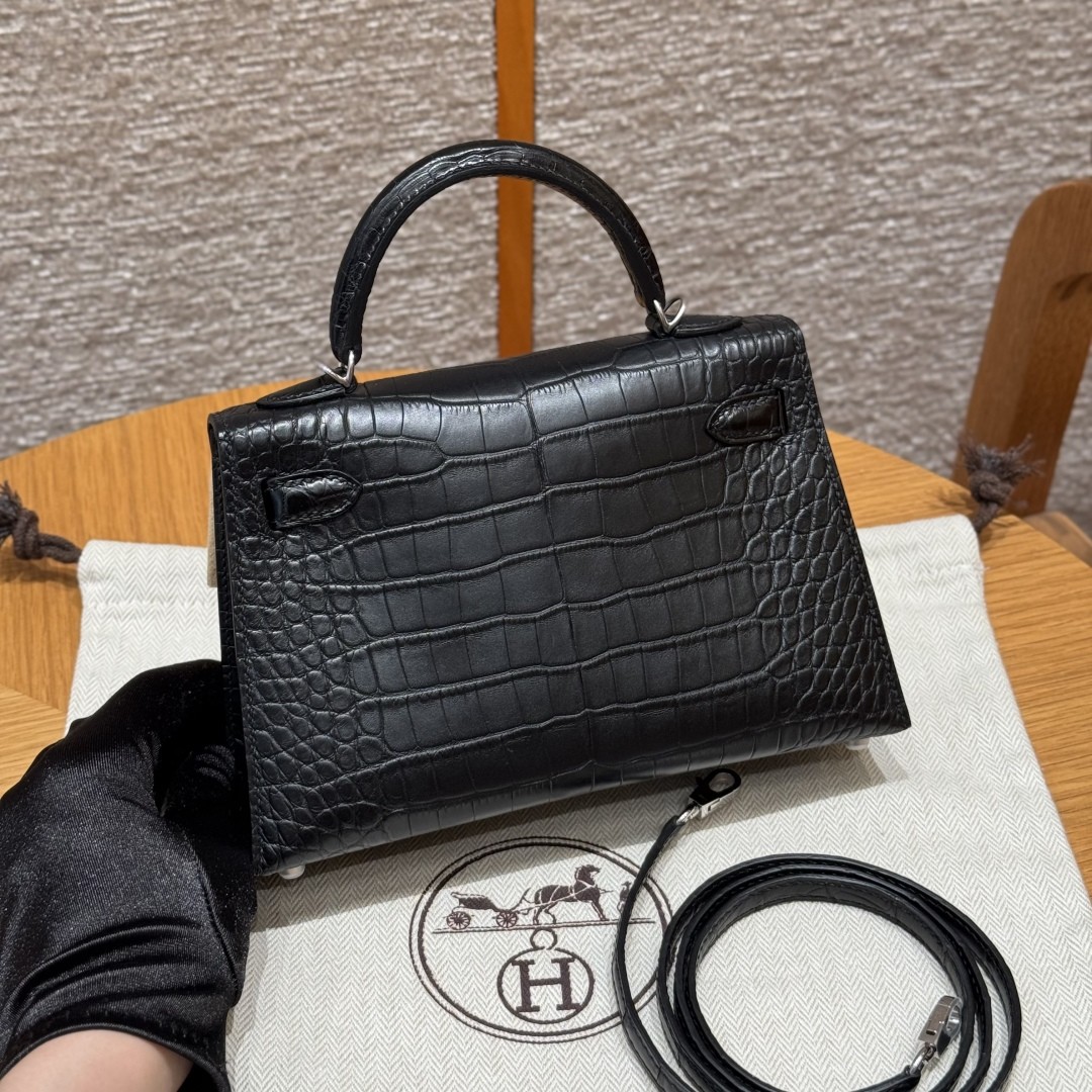 올수공 에르메스 미니 켈리 89/noir 악어 가죽 실버 하드웨어