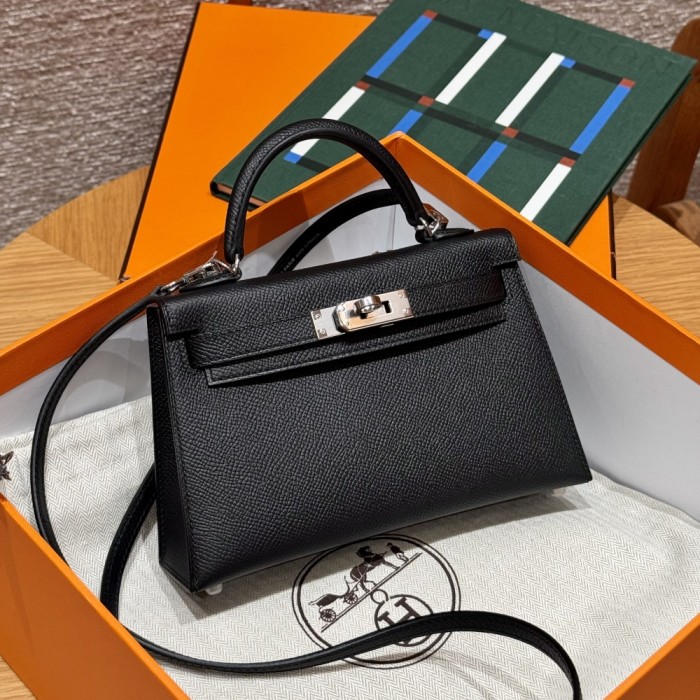 올수공 에르메스 미니 켈리 89/noir & 3Q/Rose Sakura 엡송 가죽 실버 하드웨어