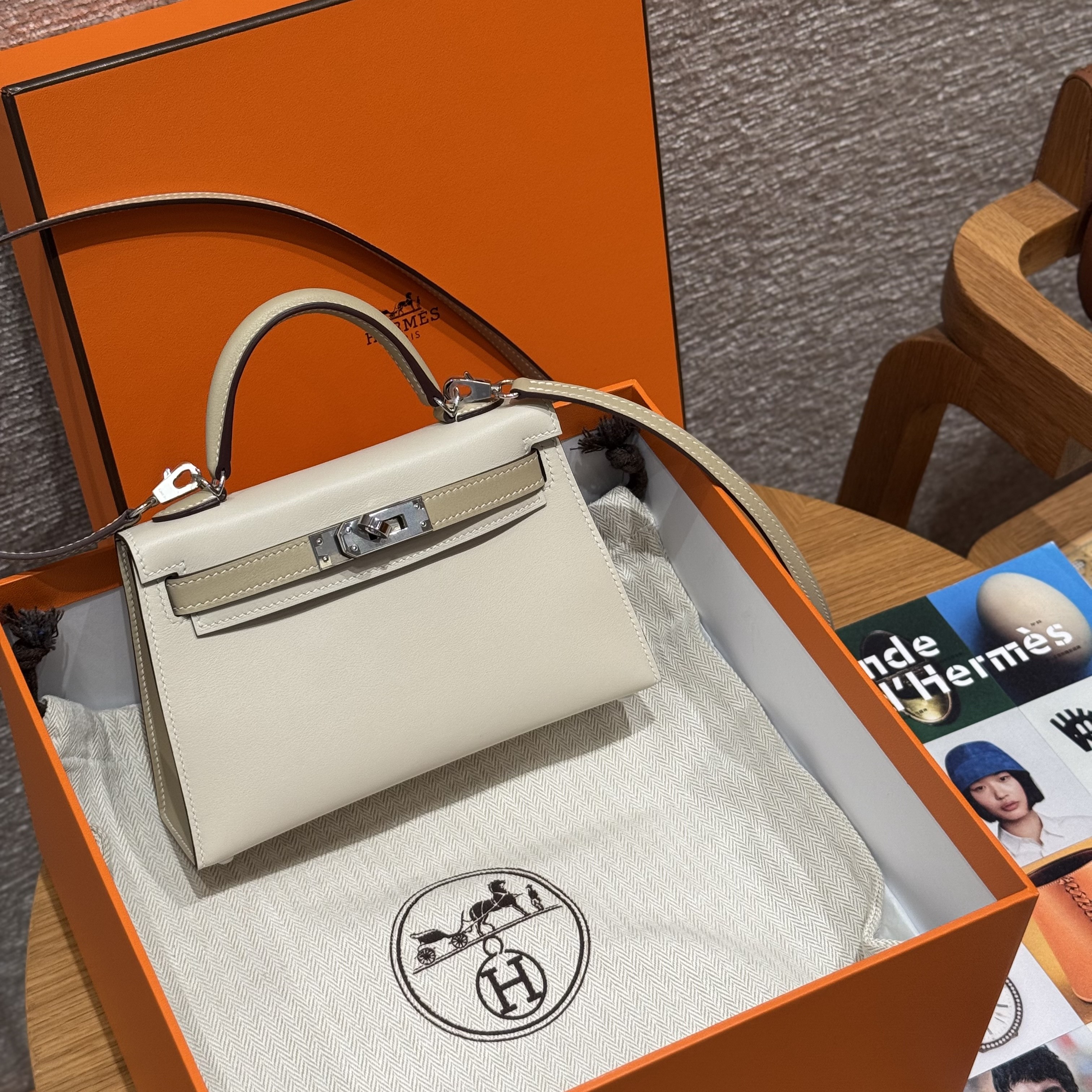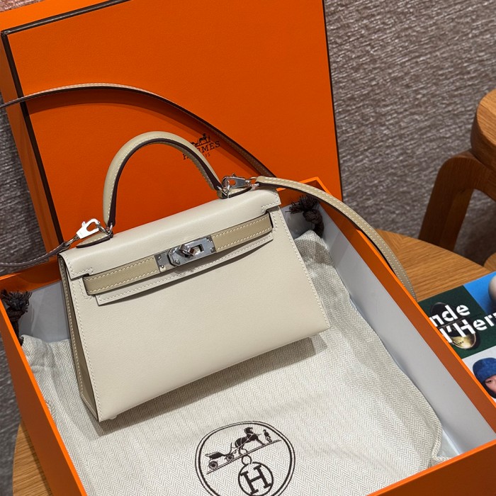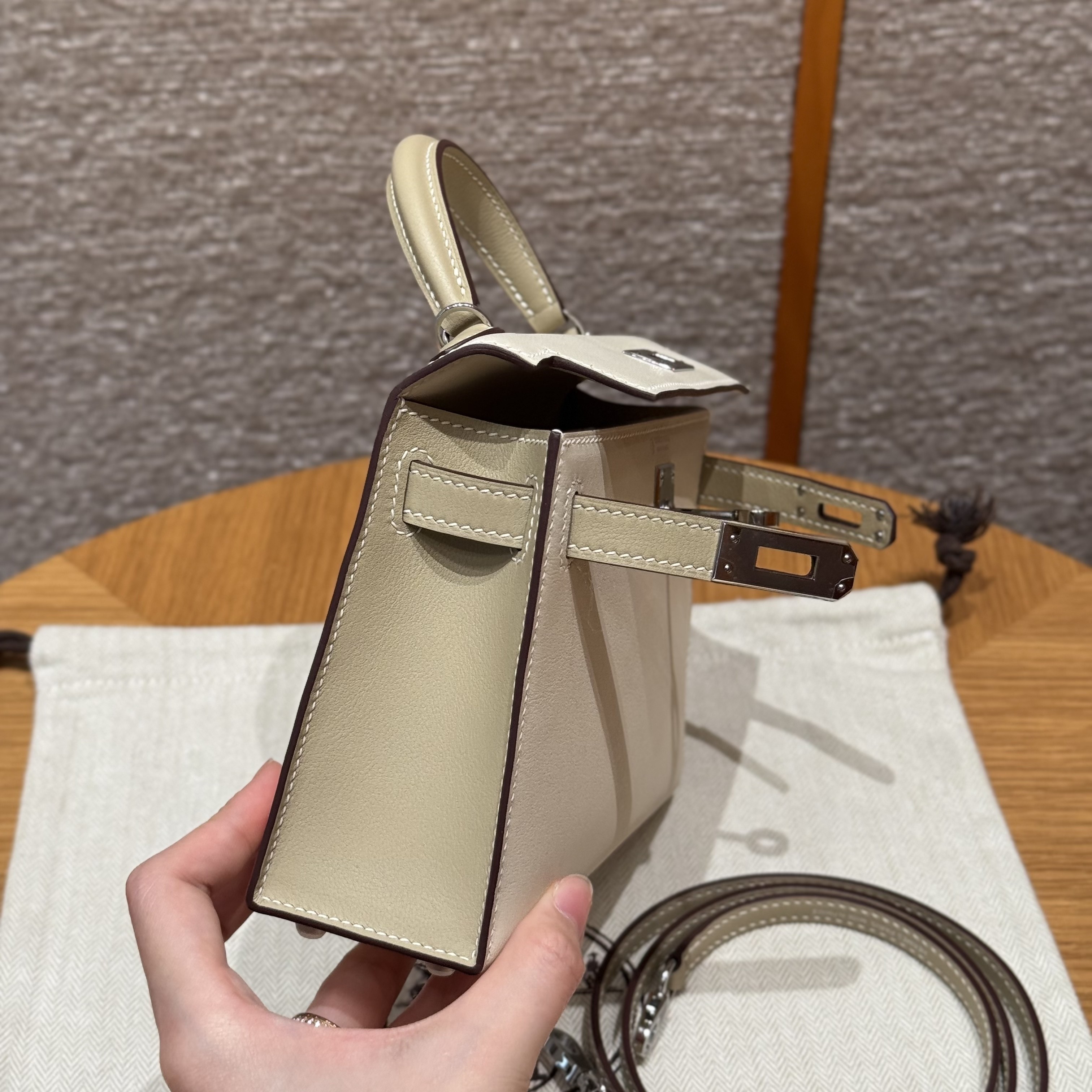 올수공 에르메스 미니 켈리 Craie & Trench 스위프트 가죽 실버 하드웨어