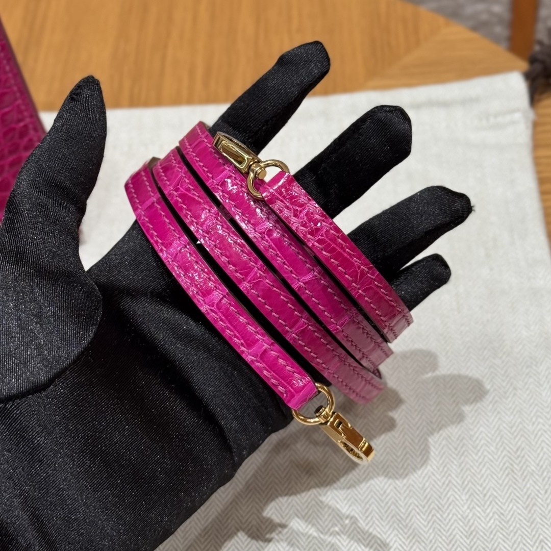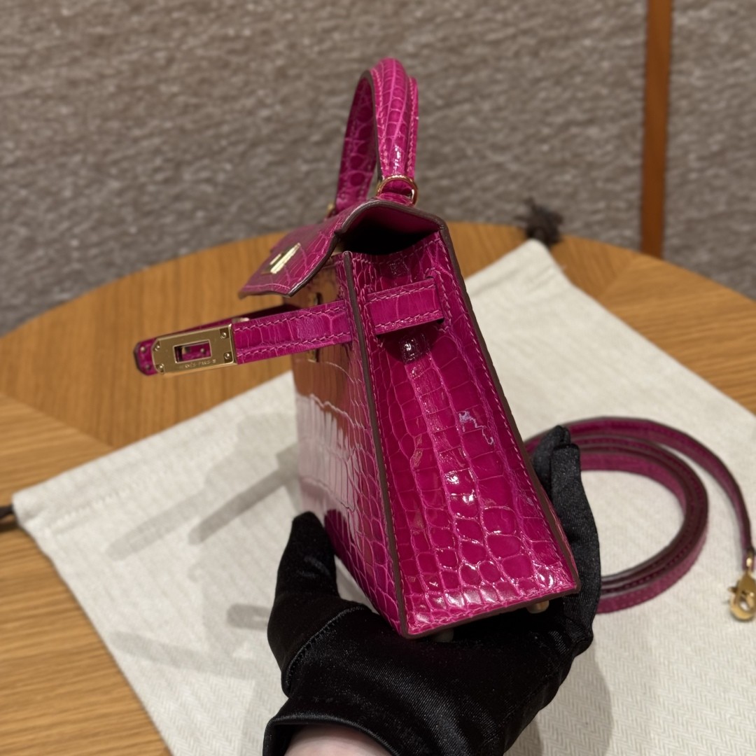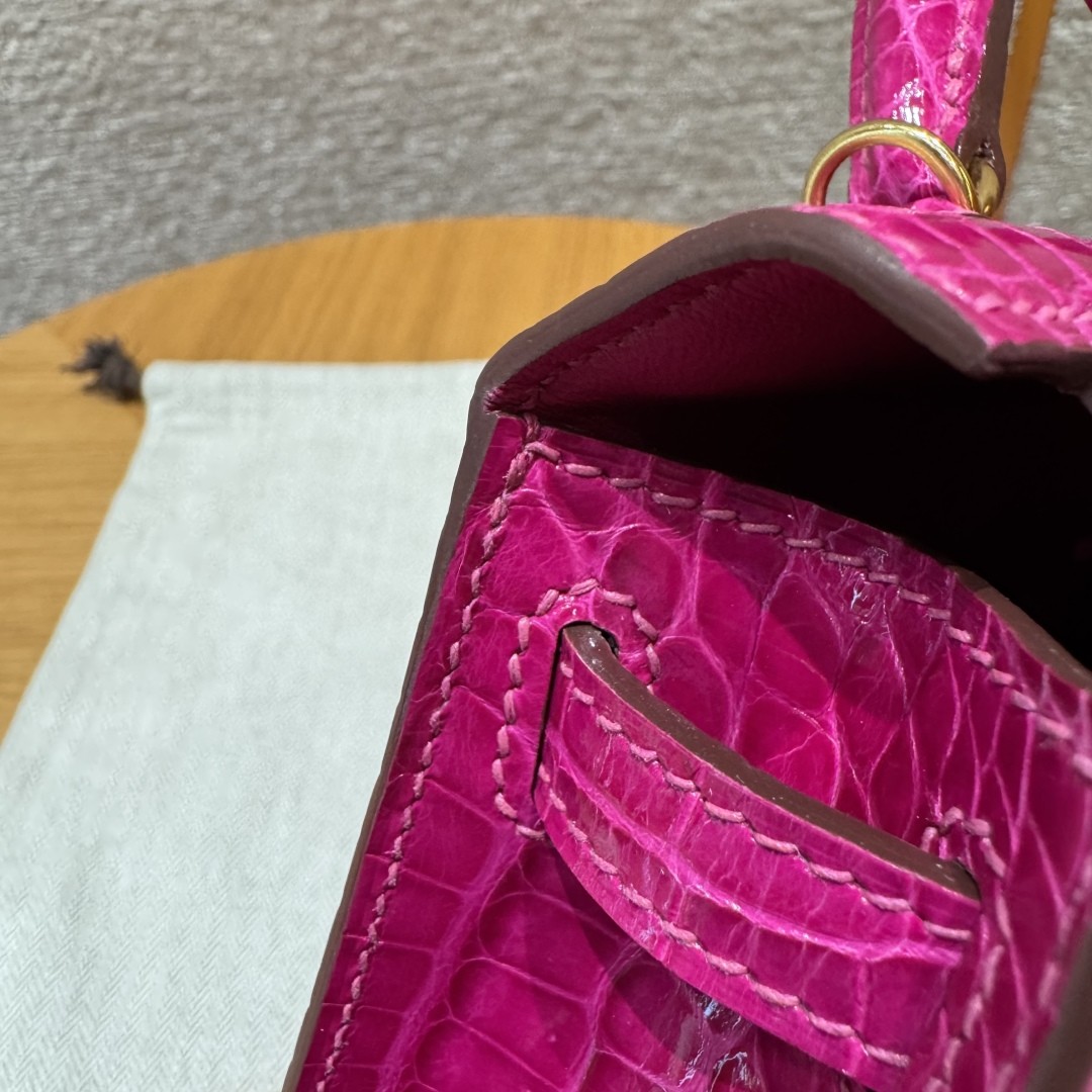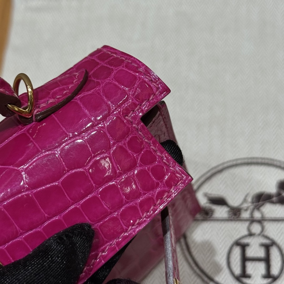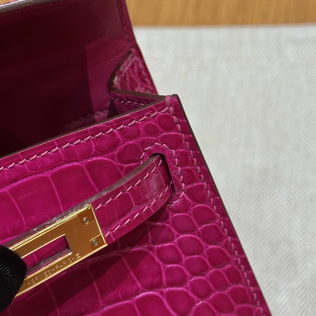 올수공 에르메스 미니 켈리 J5/Rose Scheherazade 악어 가죽 골드 하드웨어
