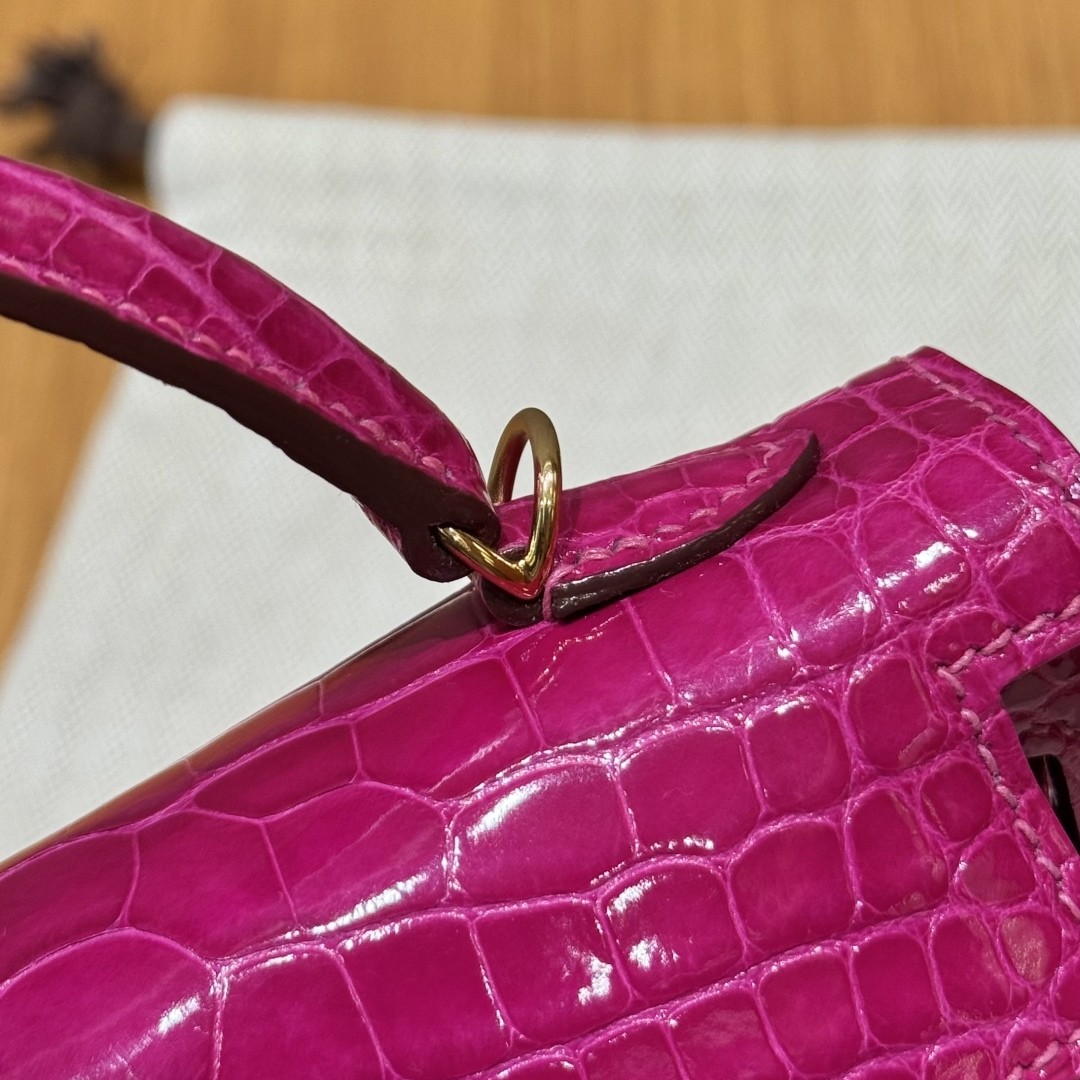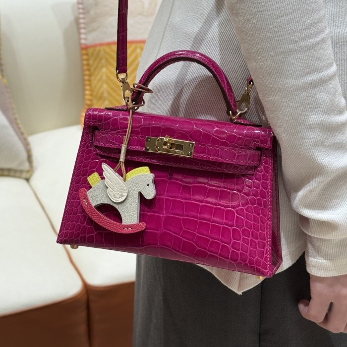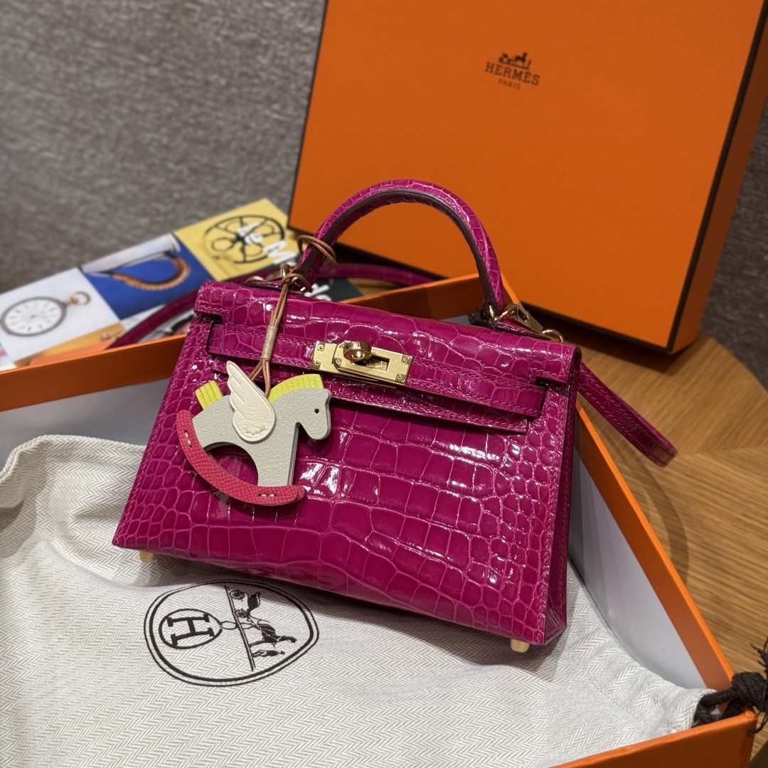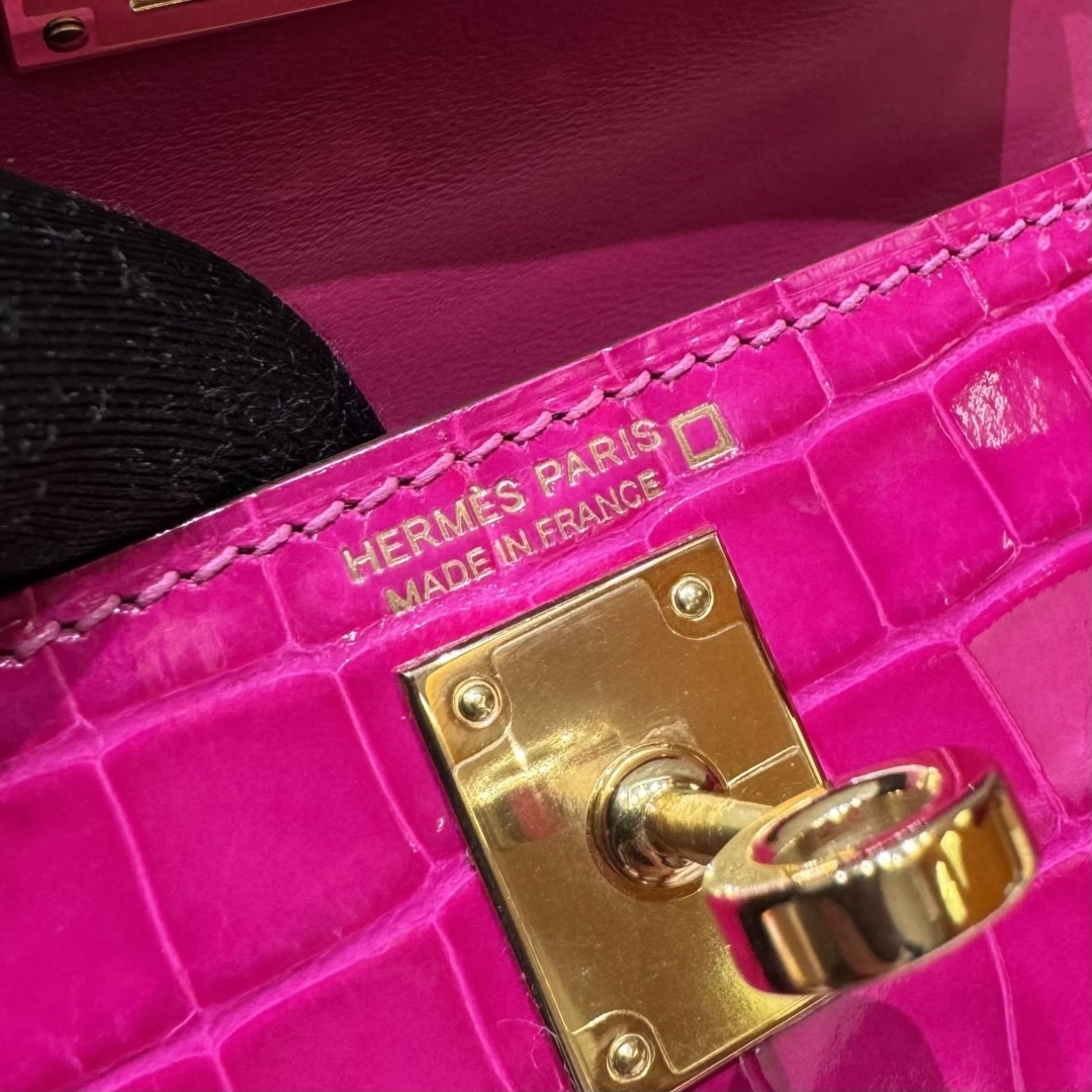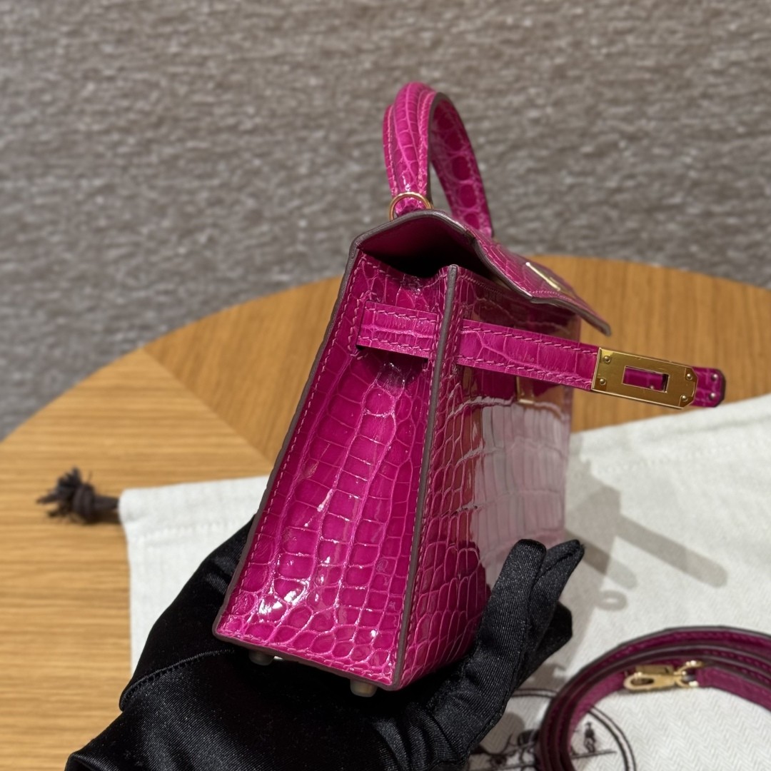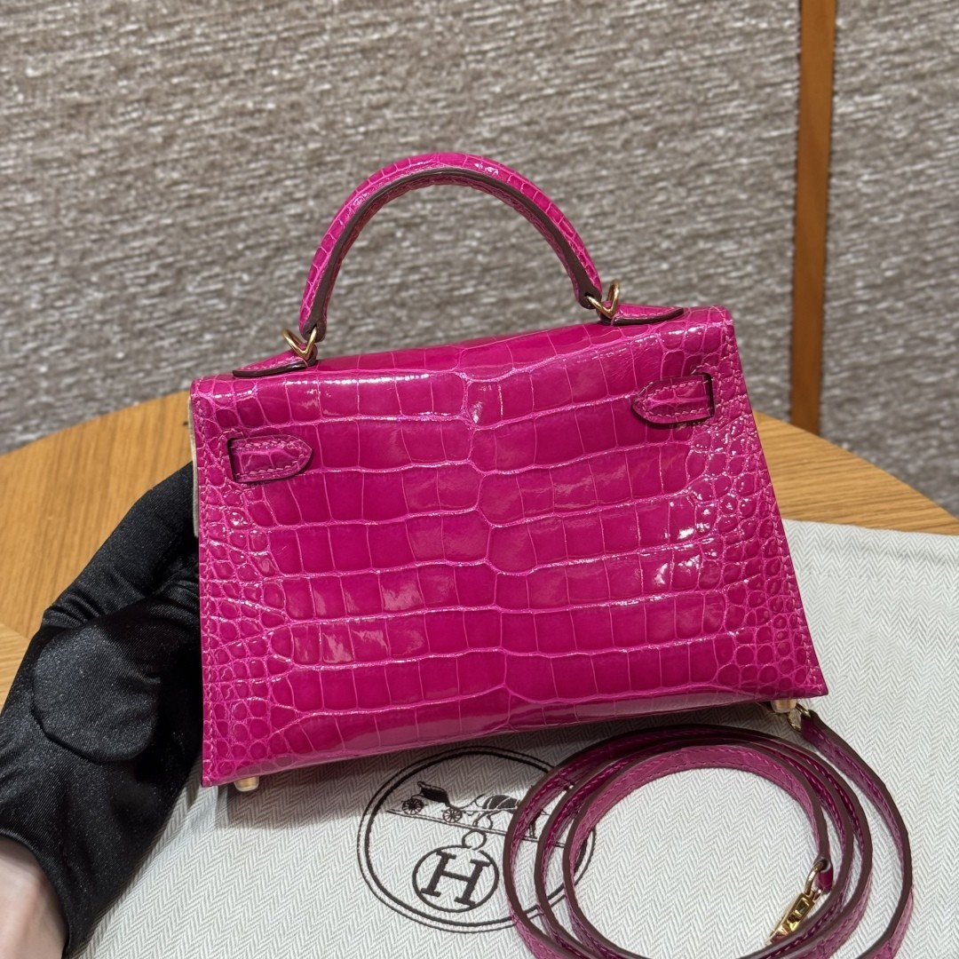 올수공 에르메스 미니 켈리 J5/Rose Scheherazade 악어 가죽 골드 하드웨어