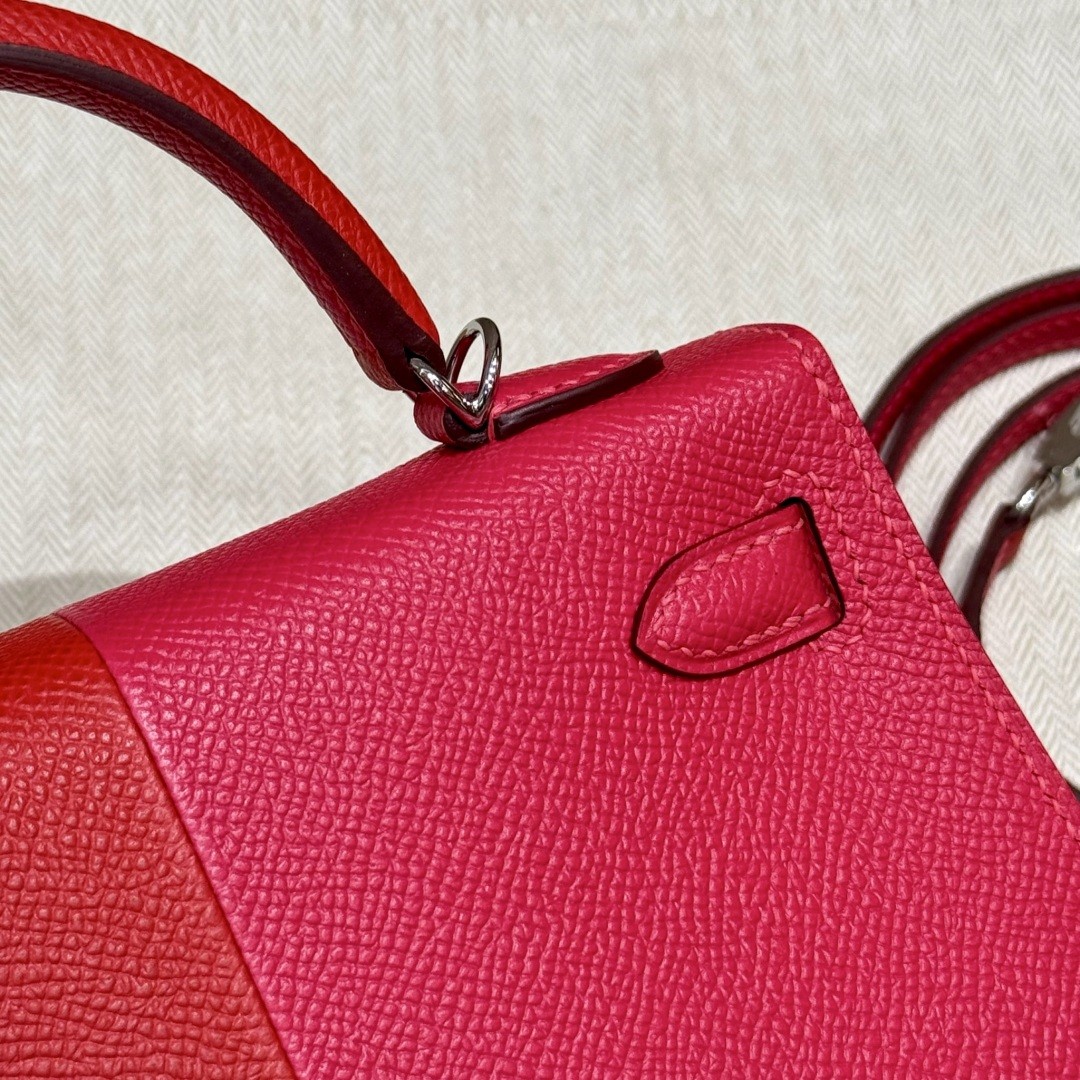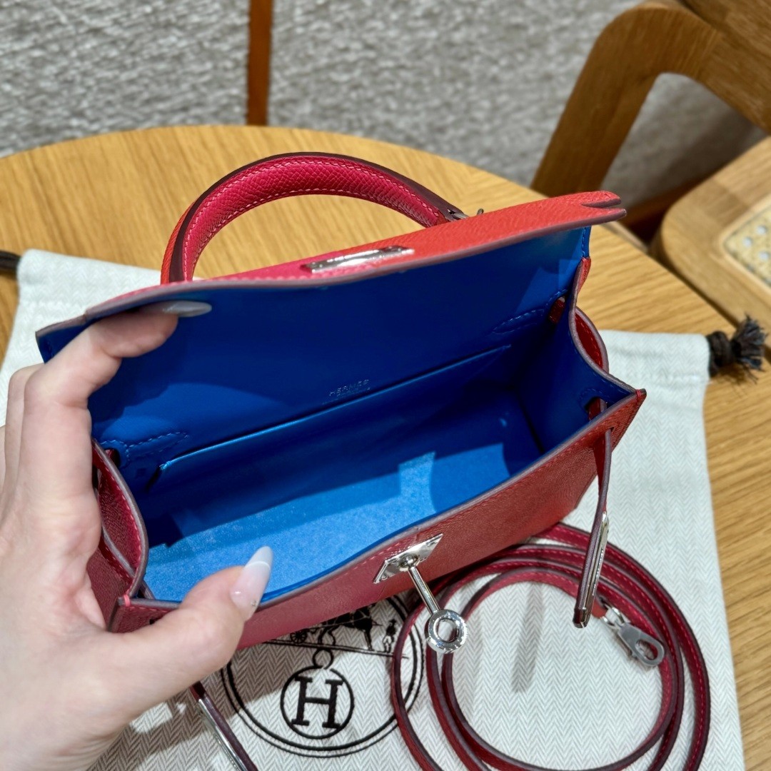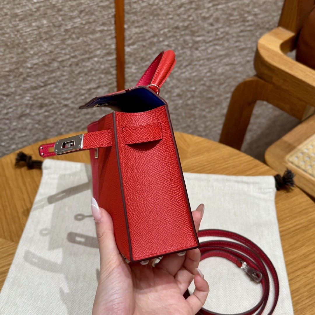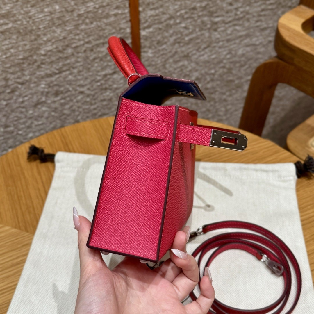 올수공 에르메스 미니 켈리 l6/Rose extreme & S3/Rouge Coeur & B3/Blue Zanzibar 엡송 가죽 실버 하드웨어