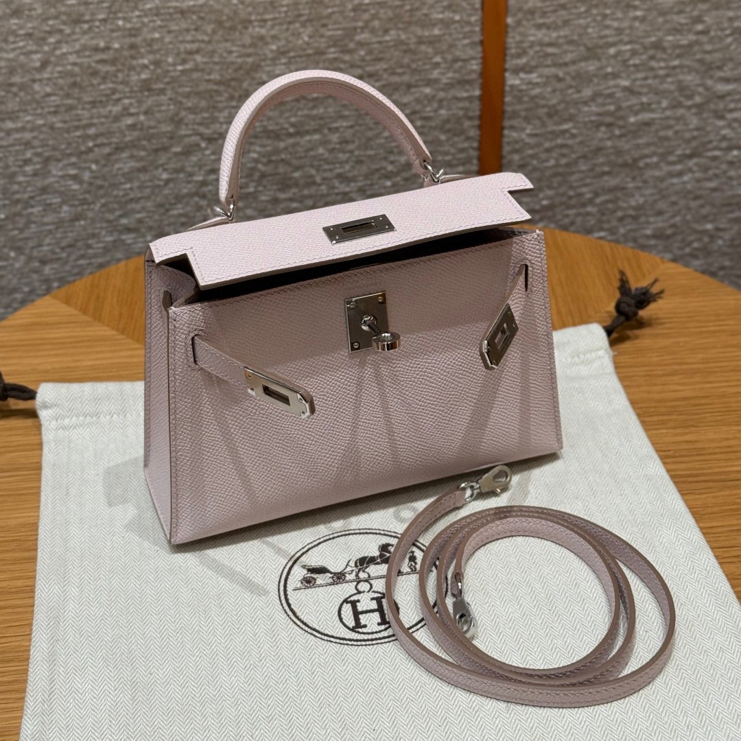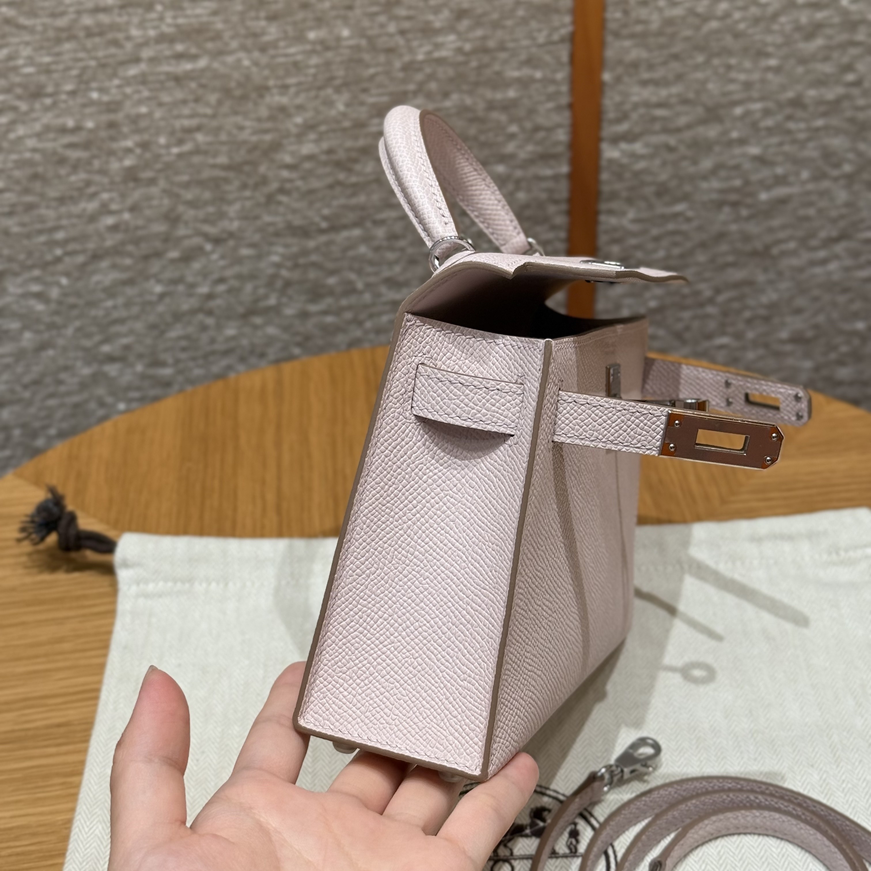 올수공 에르메스 미니 켈리 Mauve pale 엡송 가죽 실버 하드웨어
