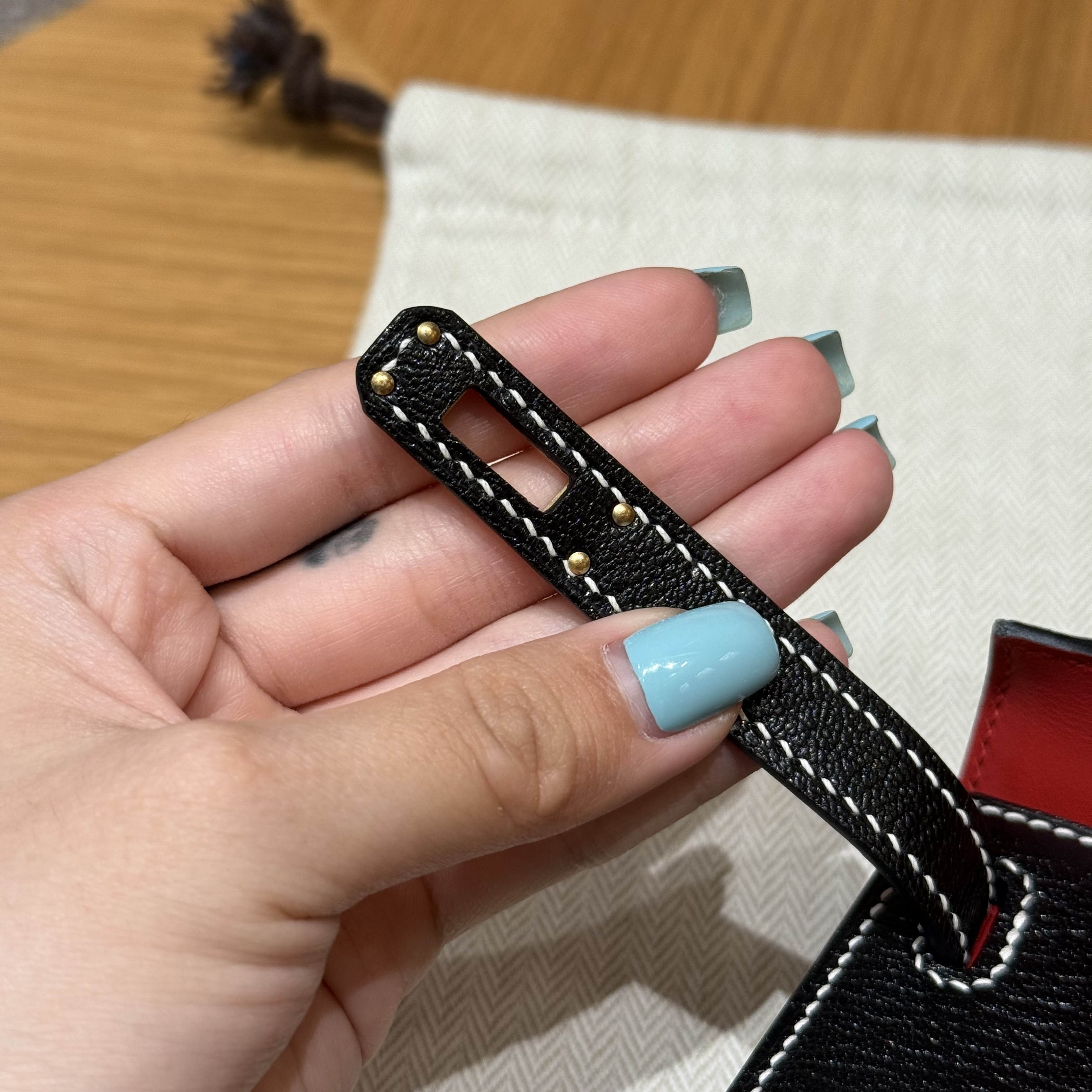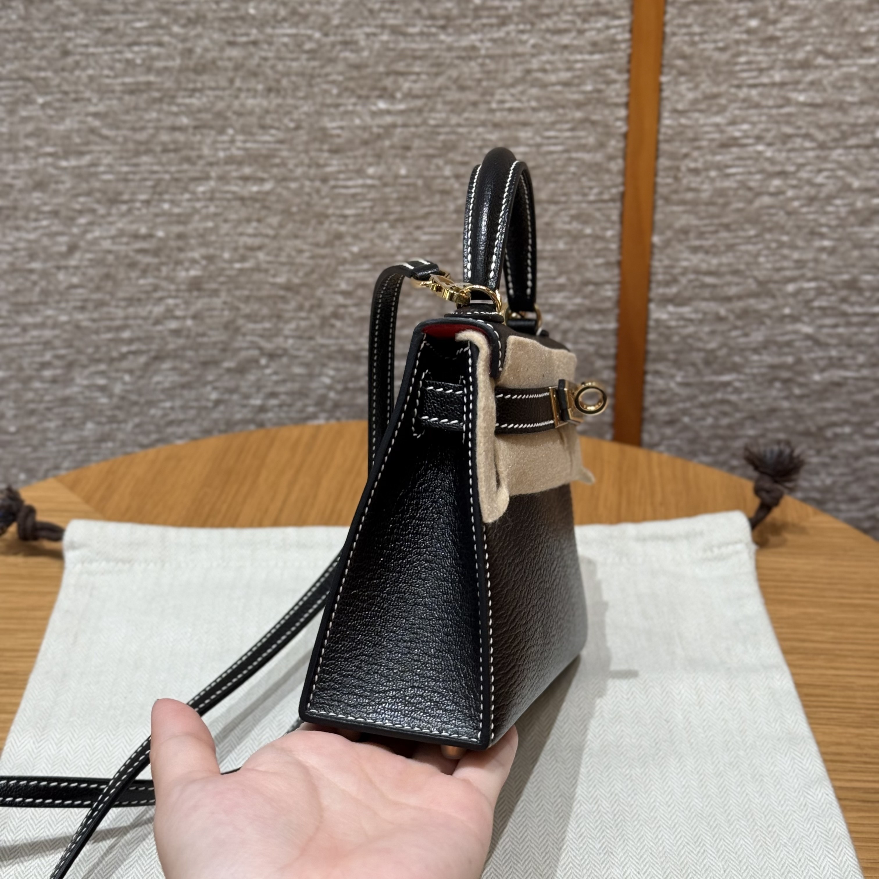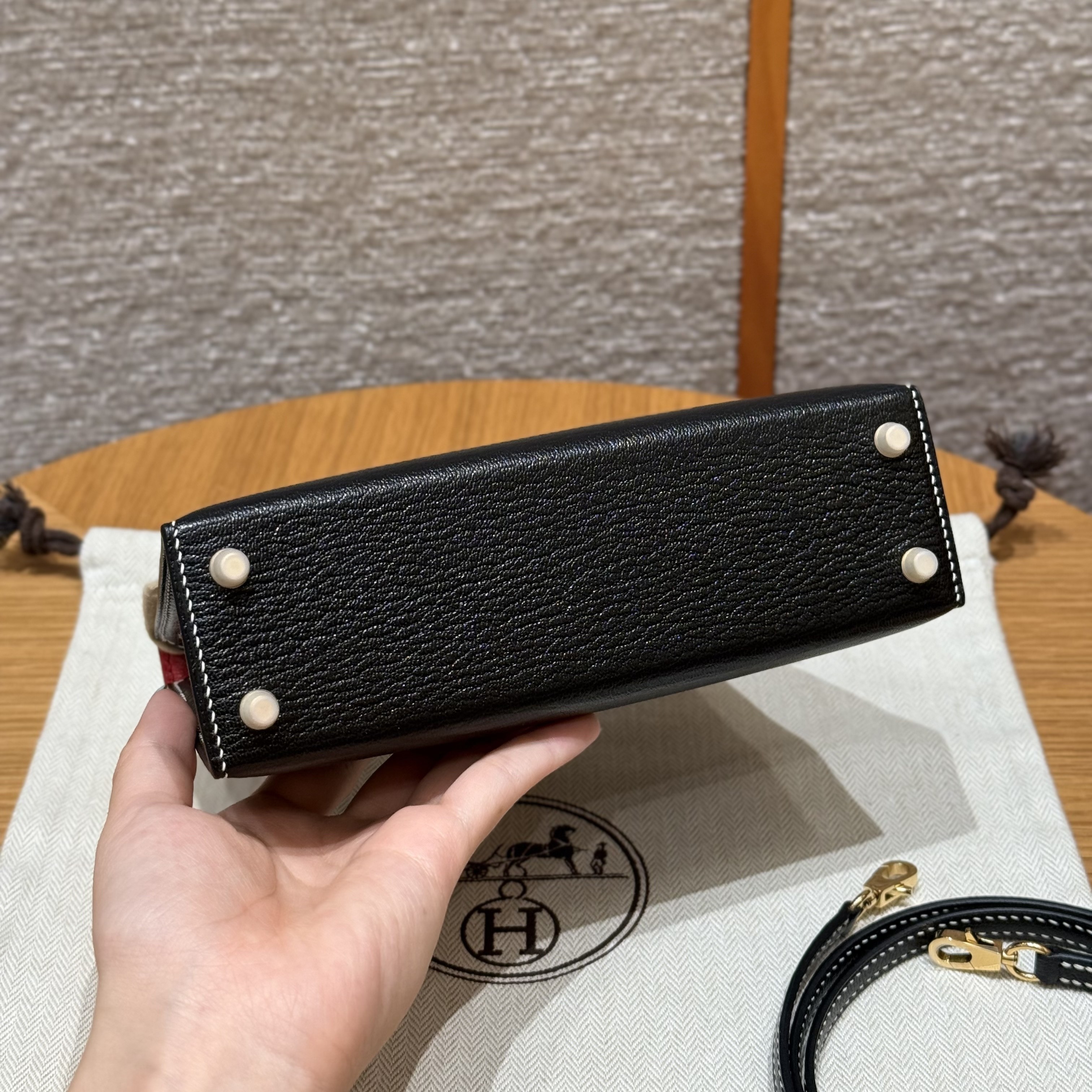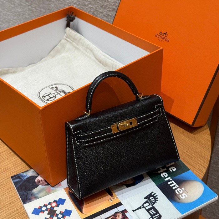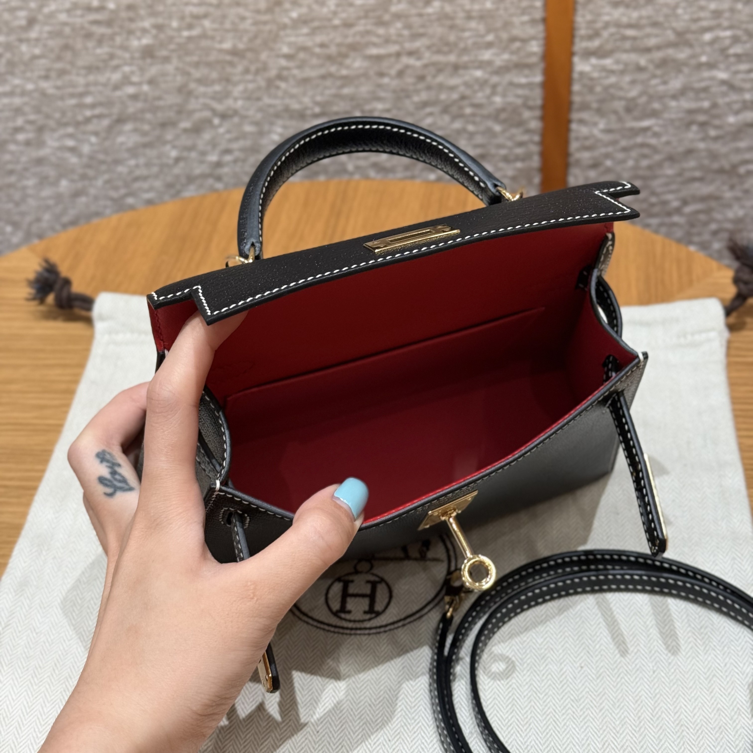올수공 에르메스 미니 켈리 Noir & Rouge Coeur 쉐브르 가죽 골드 하드웨어