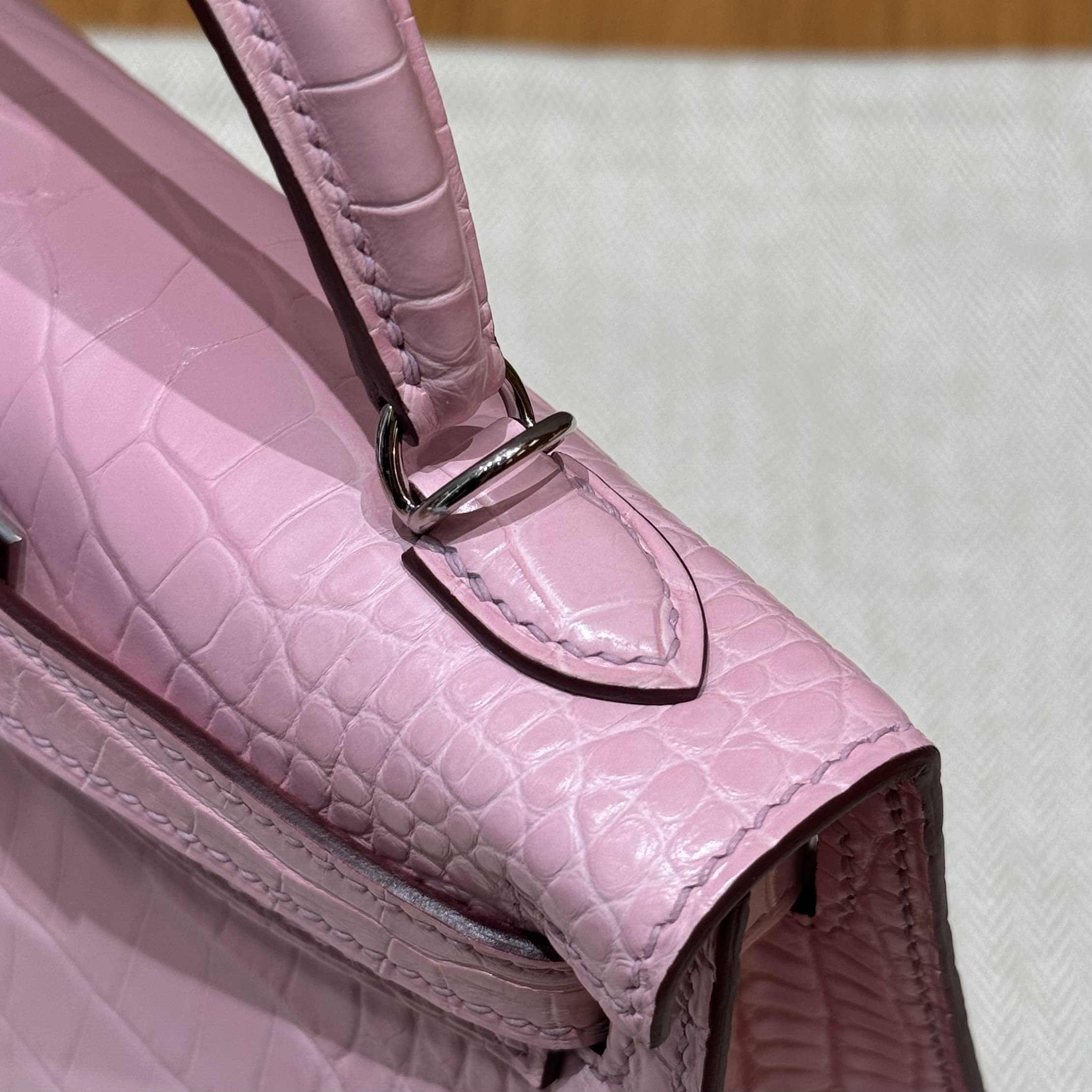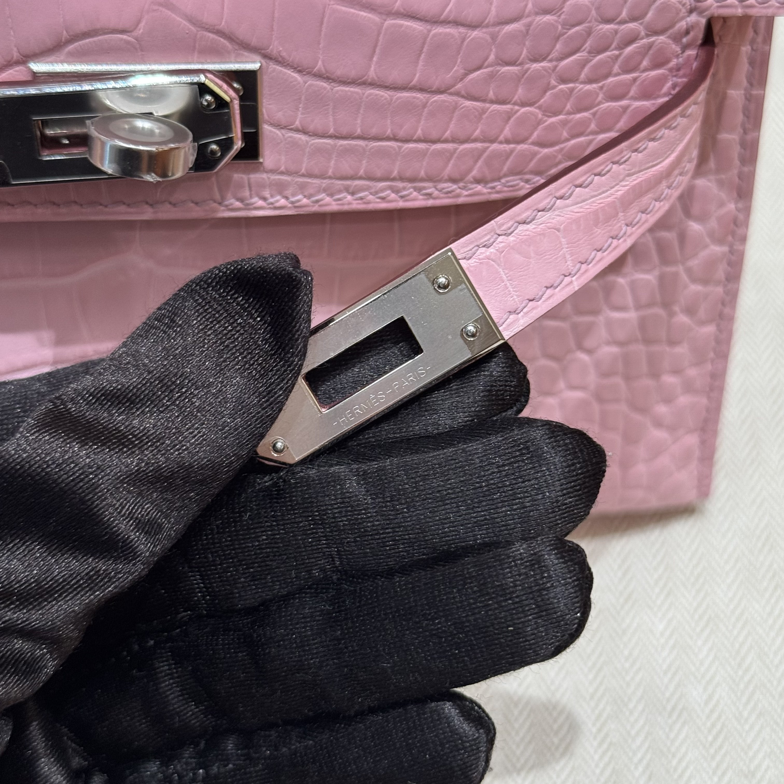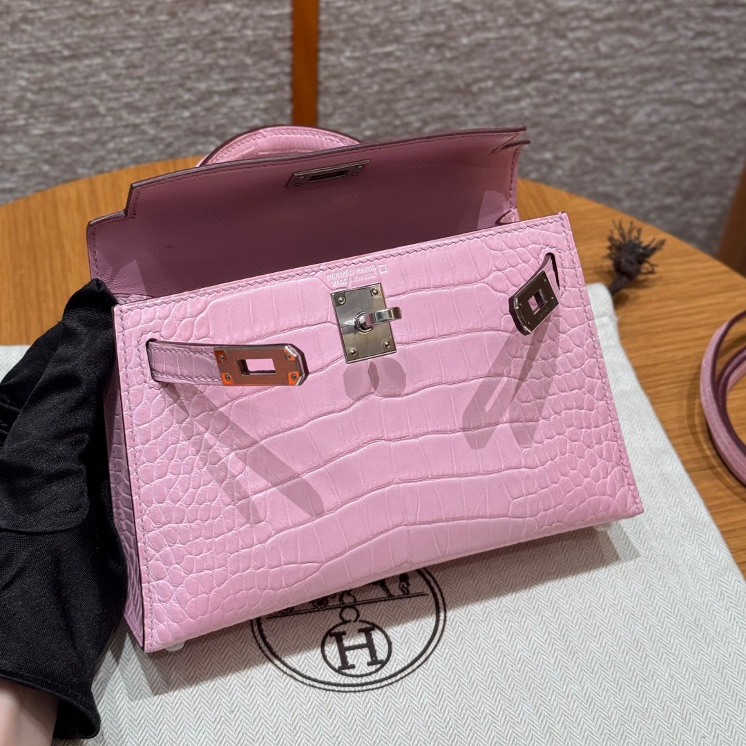 올수공 에르메스 미니 켈리 Rose Sakura 악어 가죽 실버 하드웨어