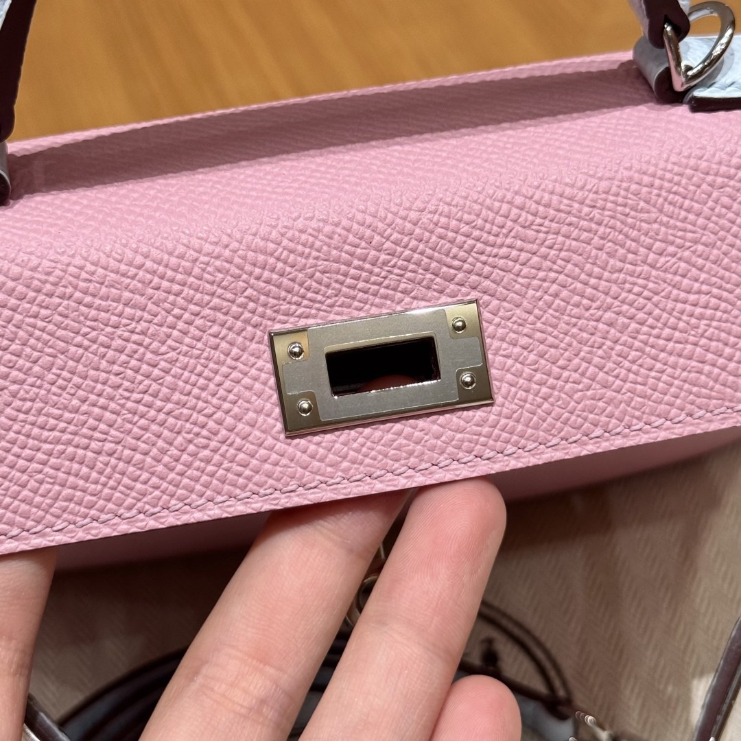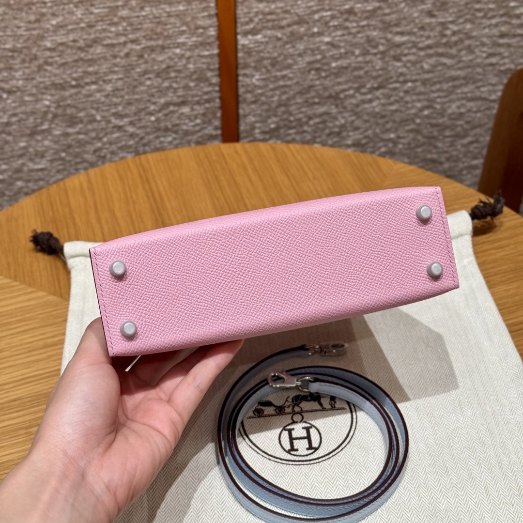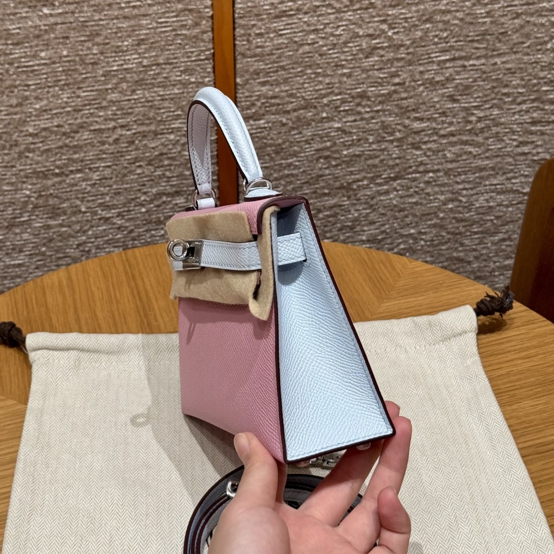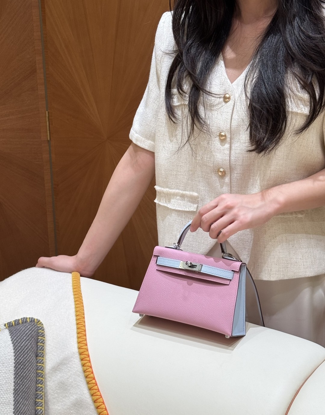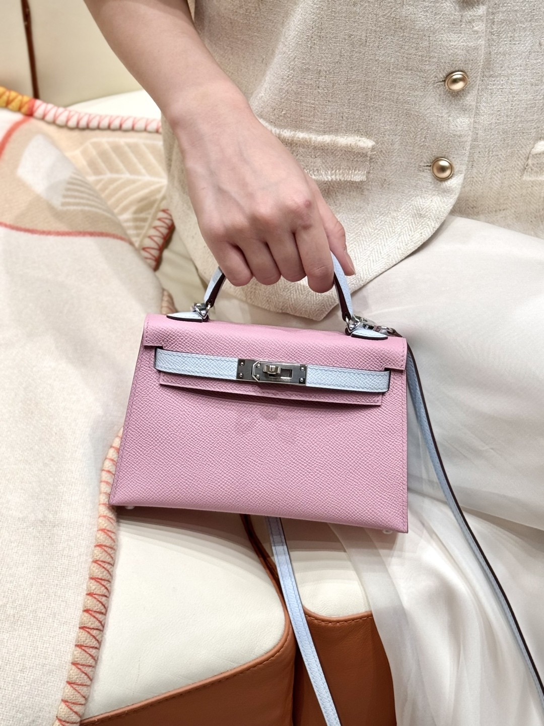 올수공 에르메스 미니 켈리 X9/mauve & T0/Blue Brume 엡송 가죽 실버 하드웨어