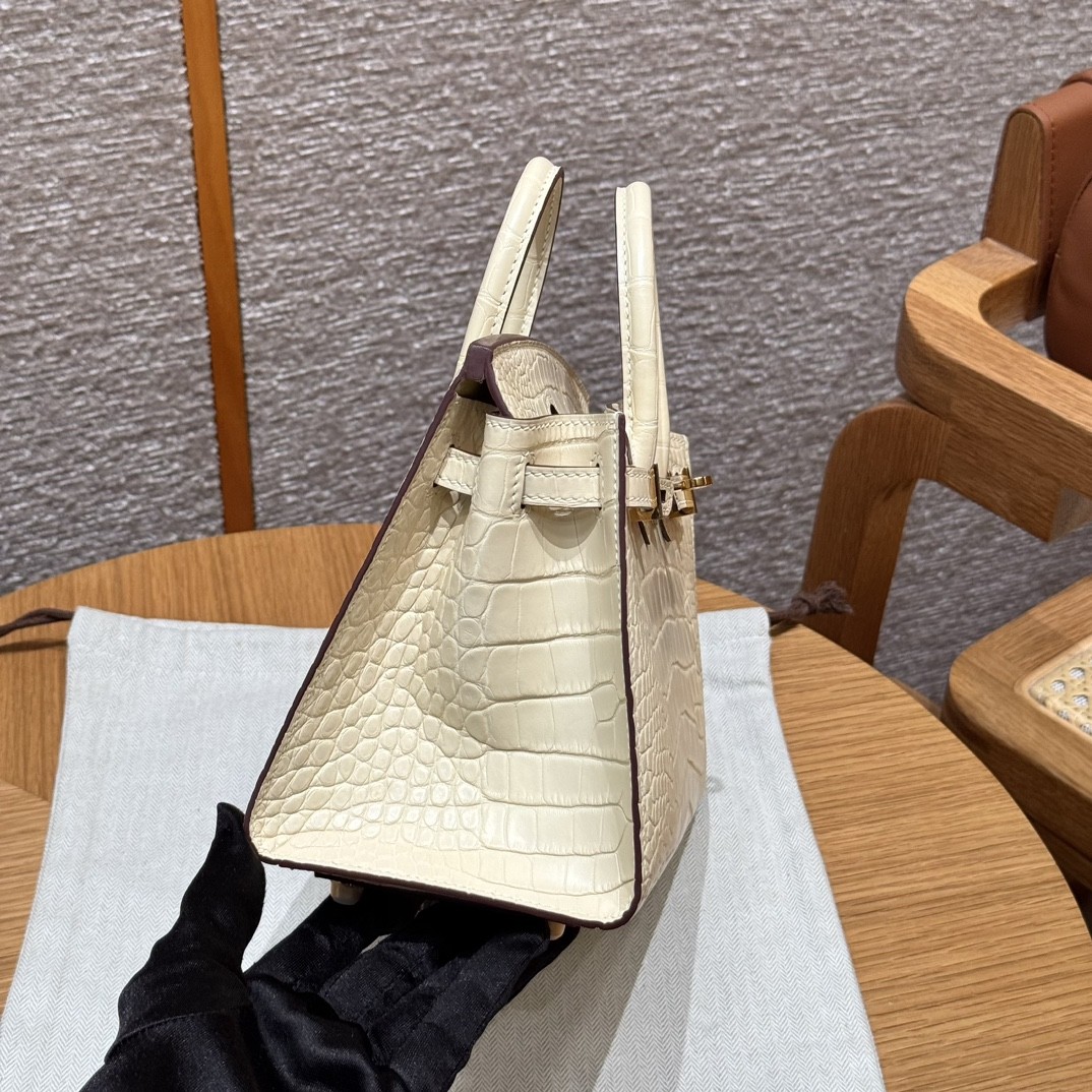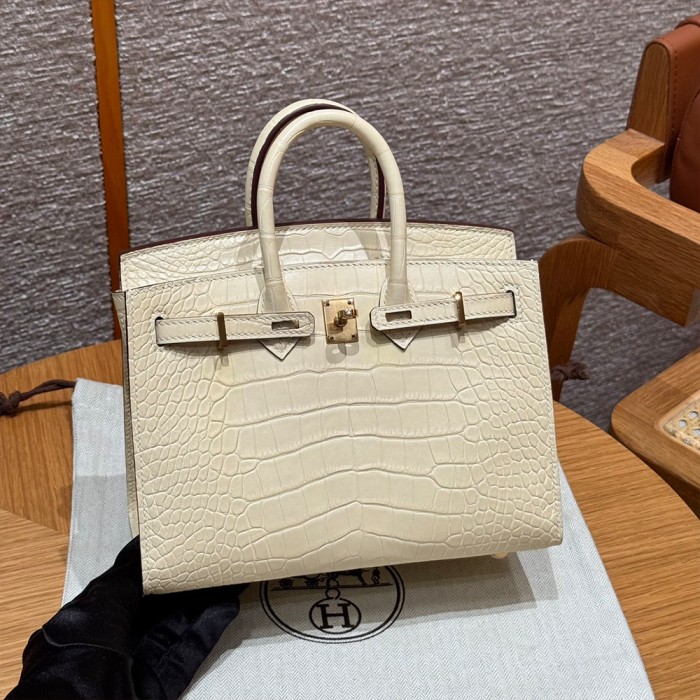 올수공 에르메스 버킨 20 Y1/Vanille 악어 가죽 골드 하드웨어
