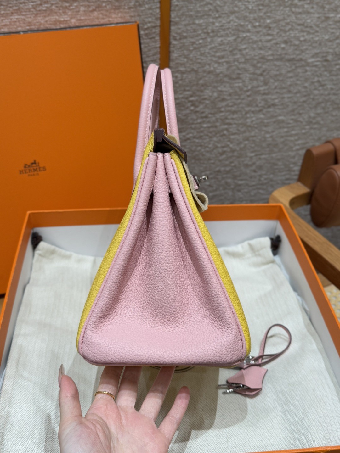 올수공 에르메스 버킨 25 9o/Jaune Naples/3Q/Rose Sakura 토고 가죽 골드 하드웨어