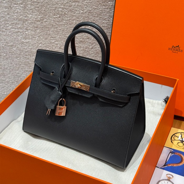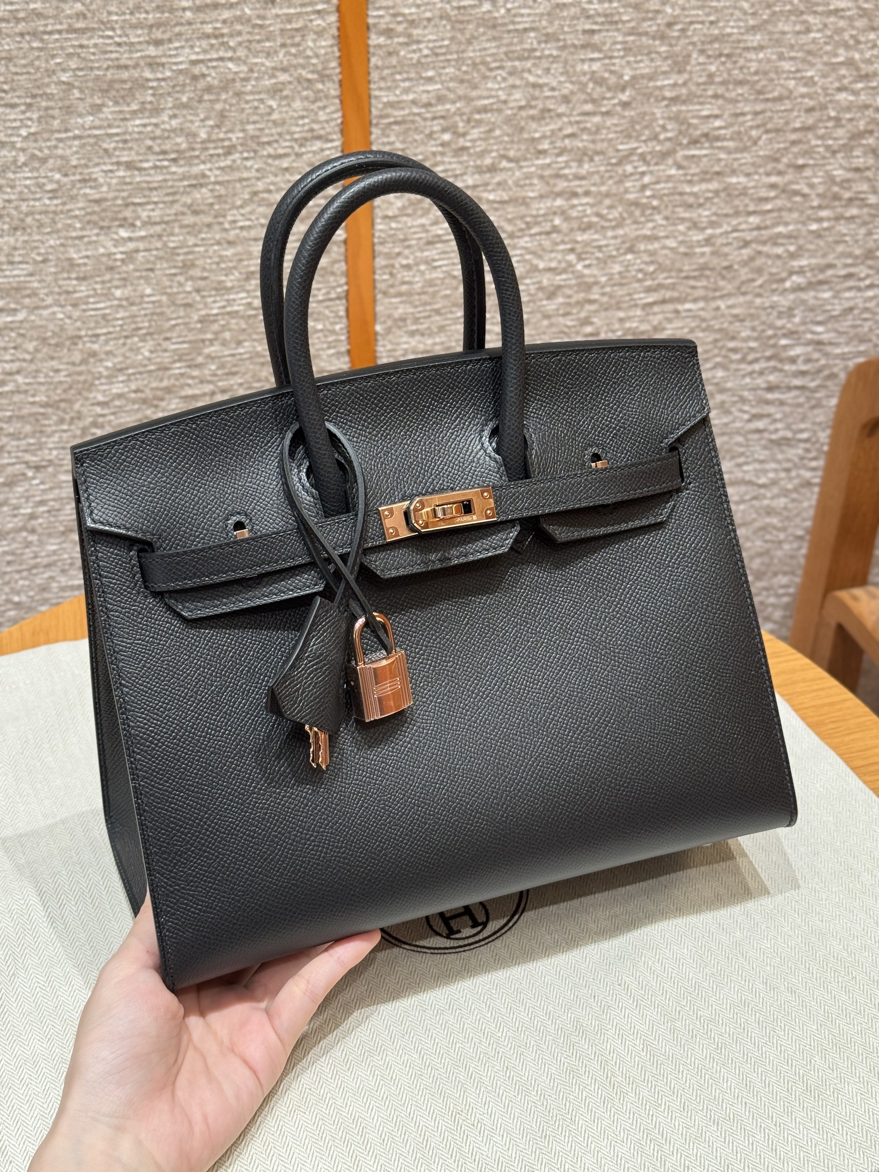 올수공 에르메스 버킨 25 Noir 엡송 가죽 로즈골드 하드웨어
