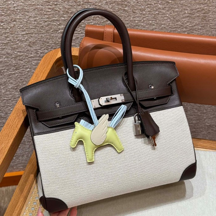 올수공 에르메스 버킨 30 Ebene 스위프트 가죽 & 캔버스 실버 하드웨어