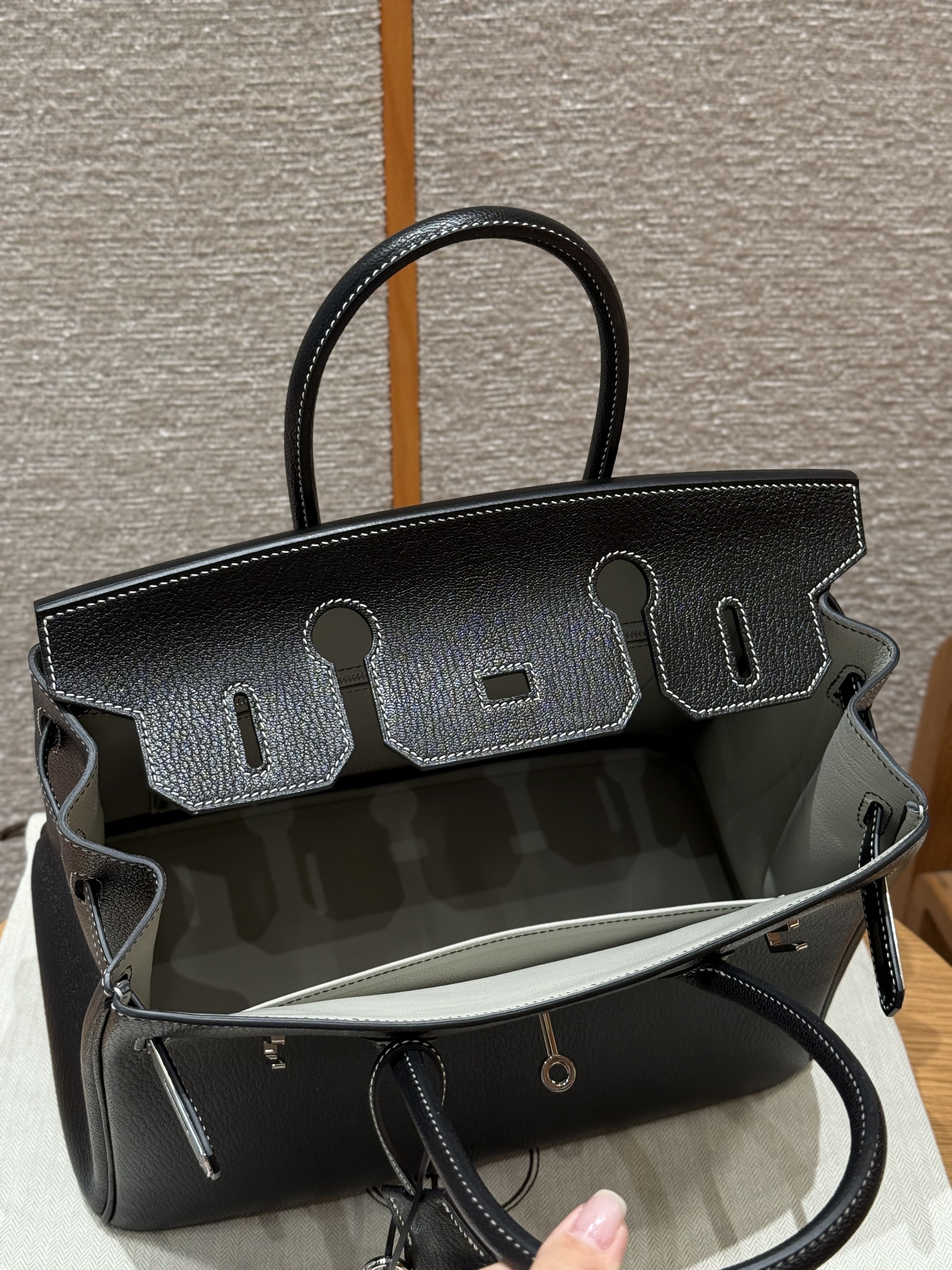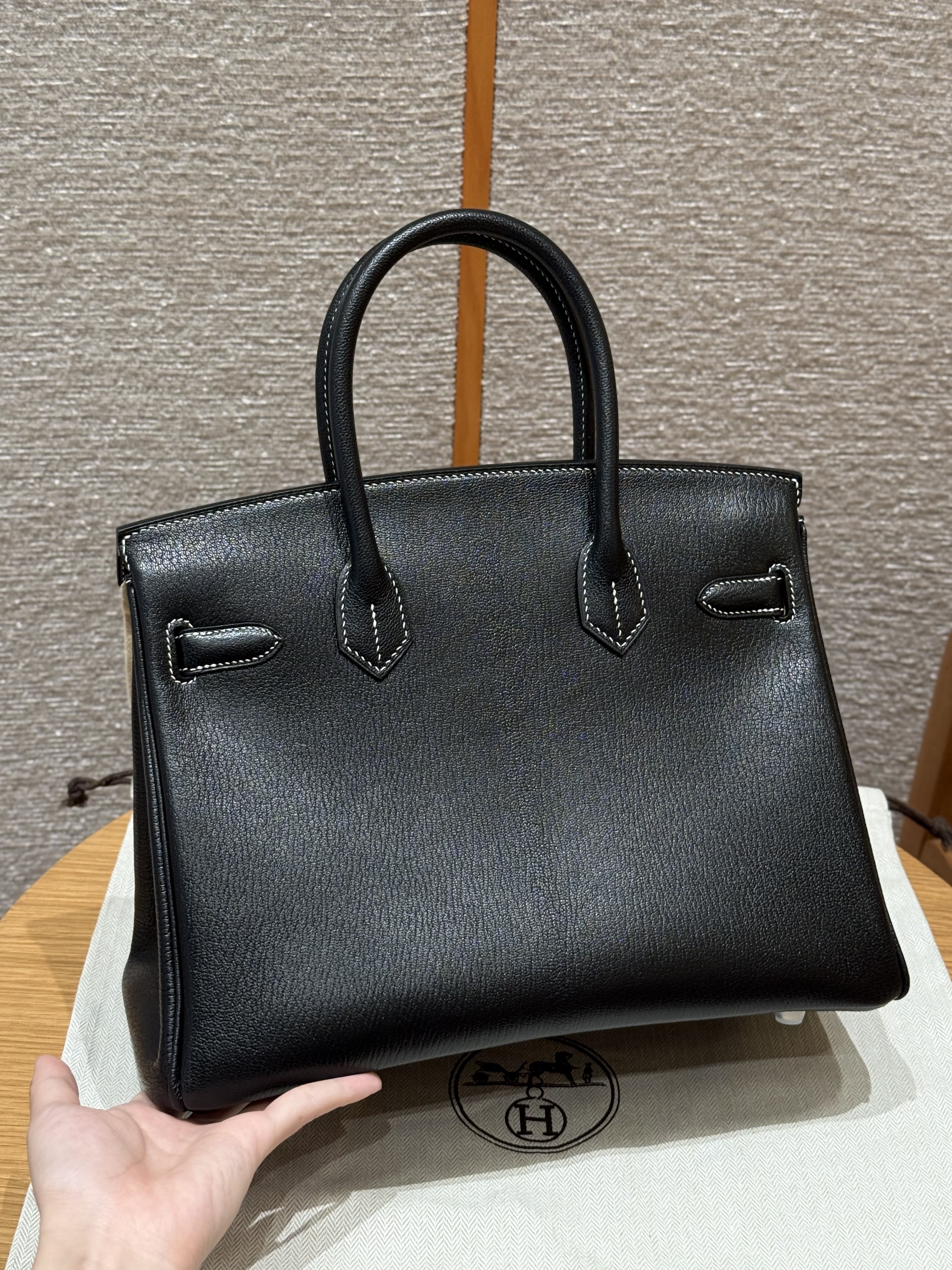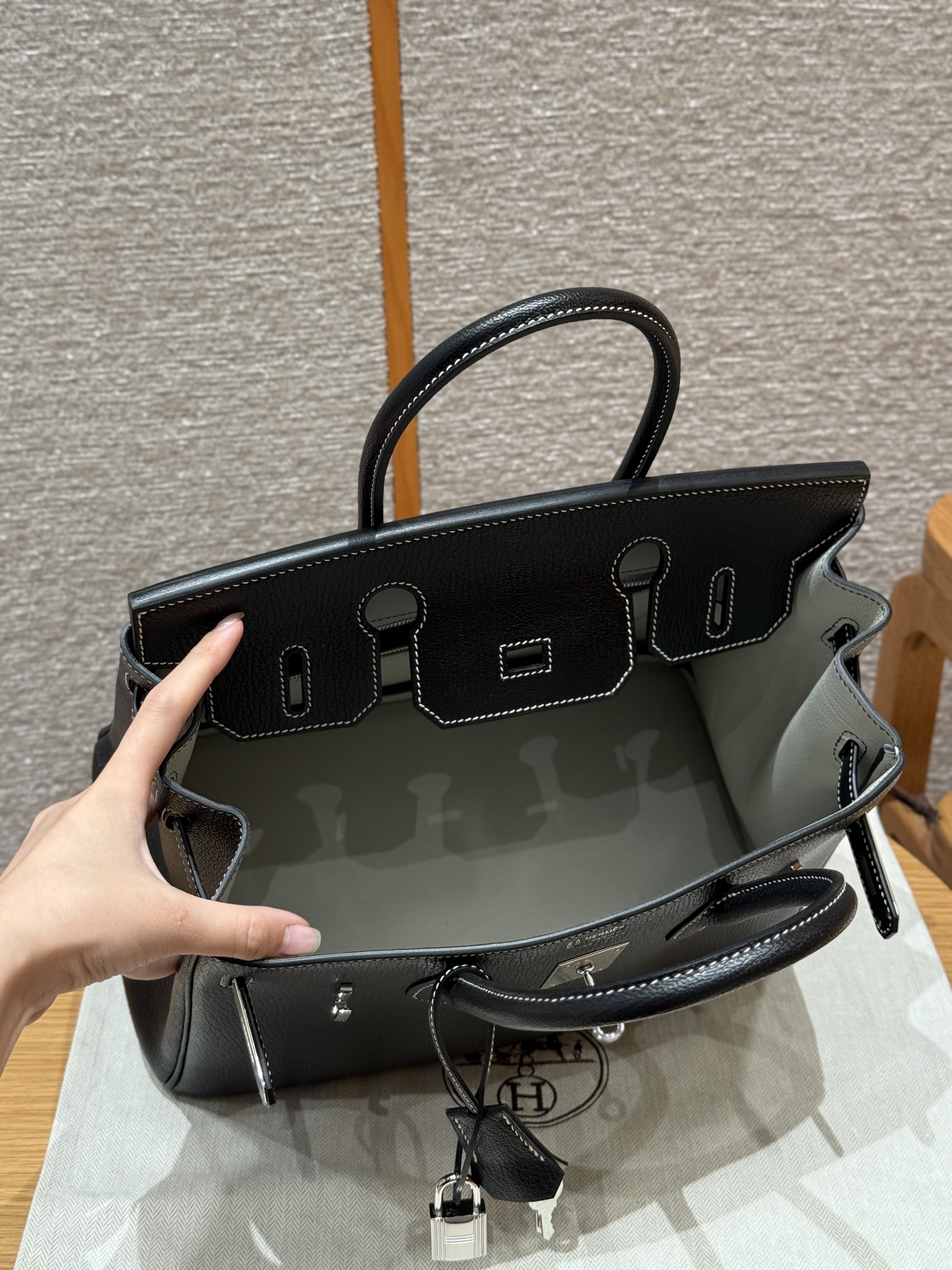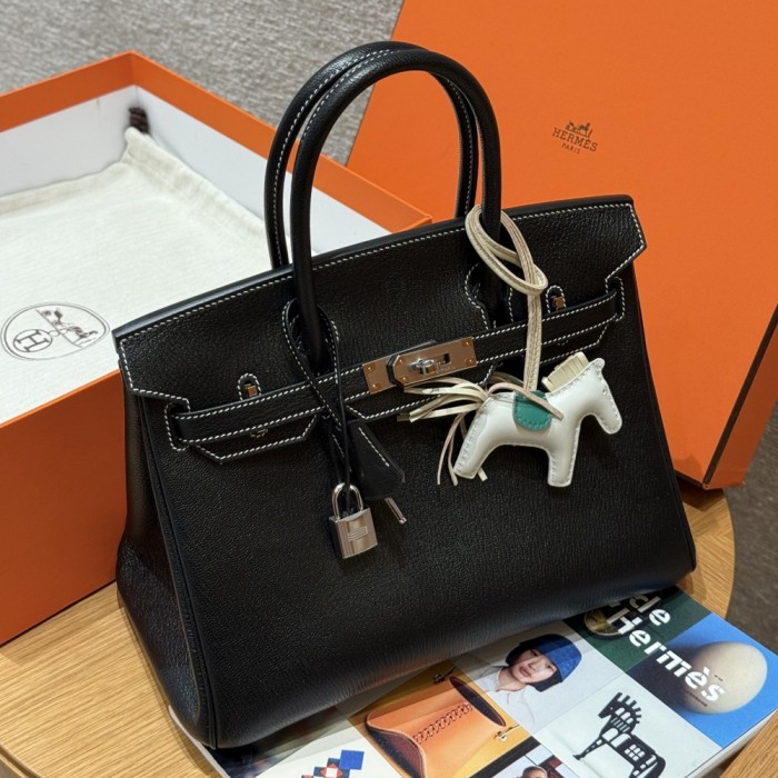 올수공 에르메스 버킨 30 Noir & Girs perle 쉐브르 가죽 실버 하드웨어