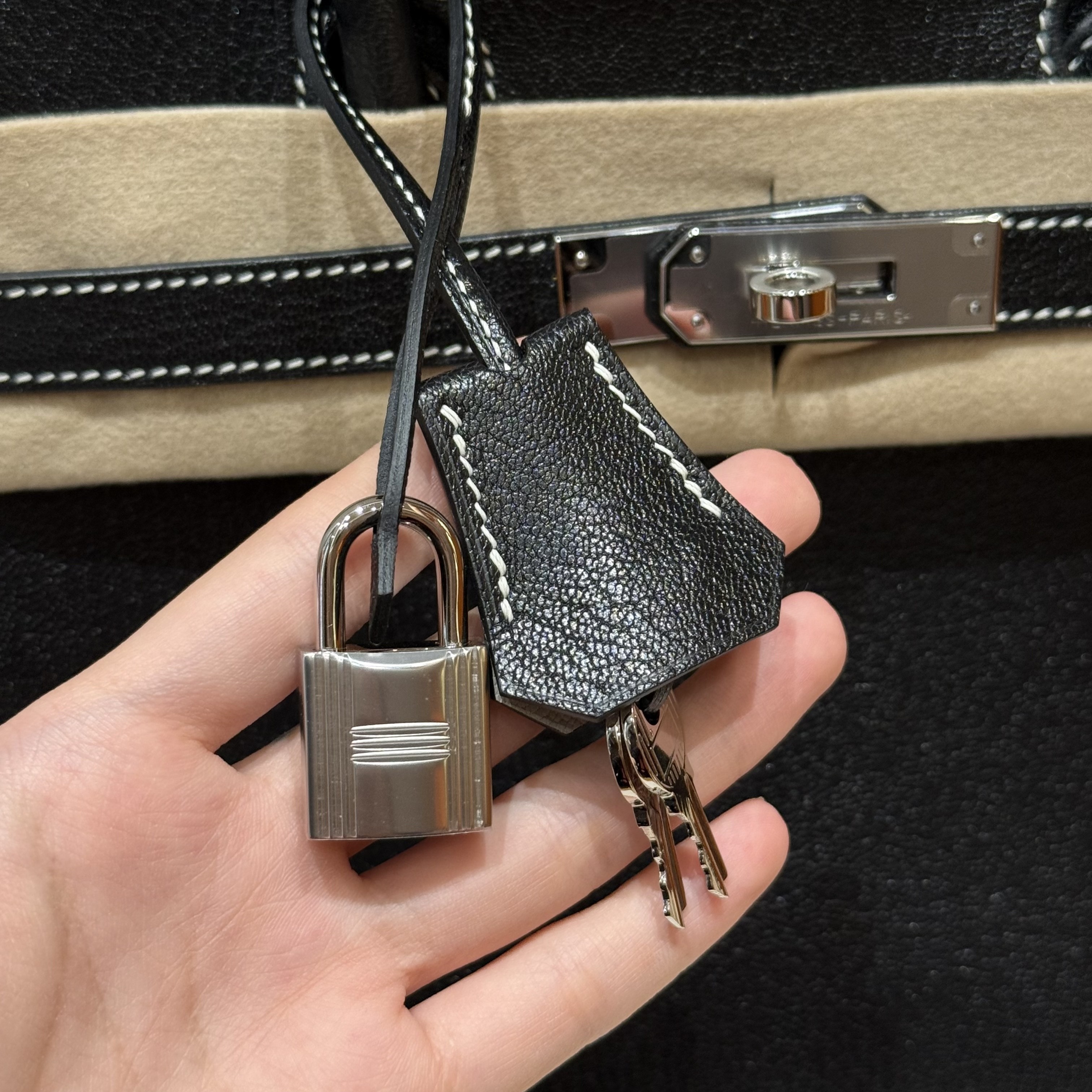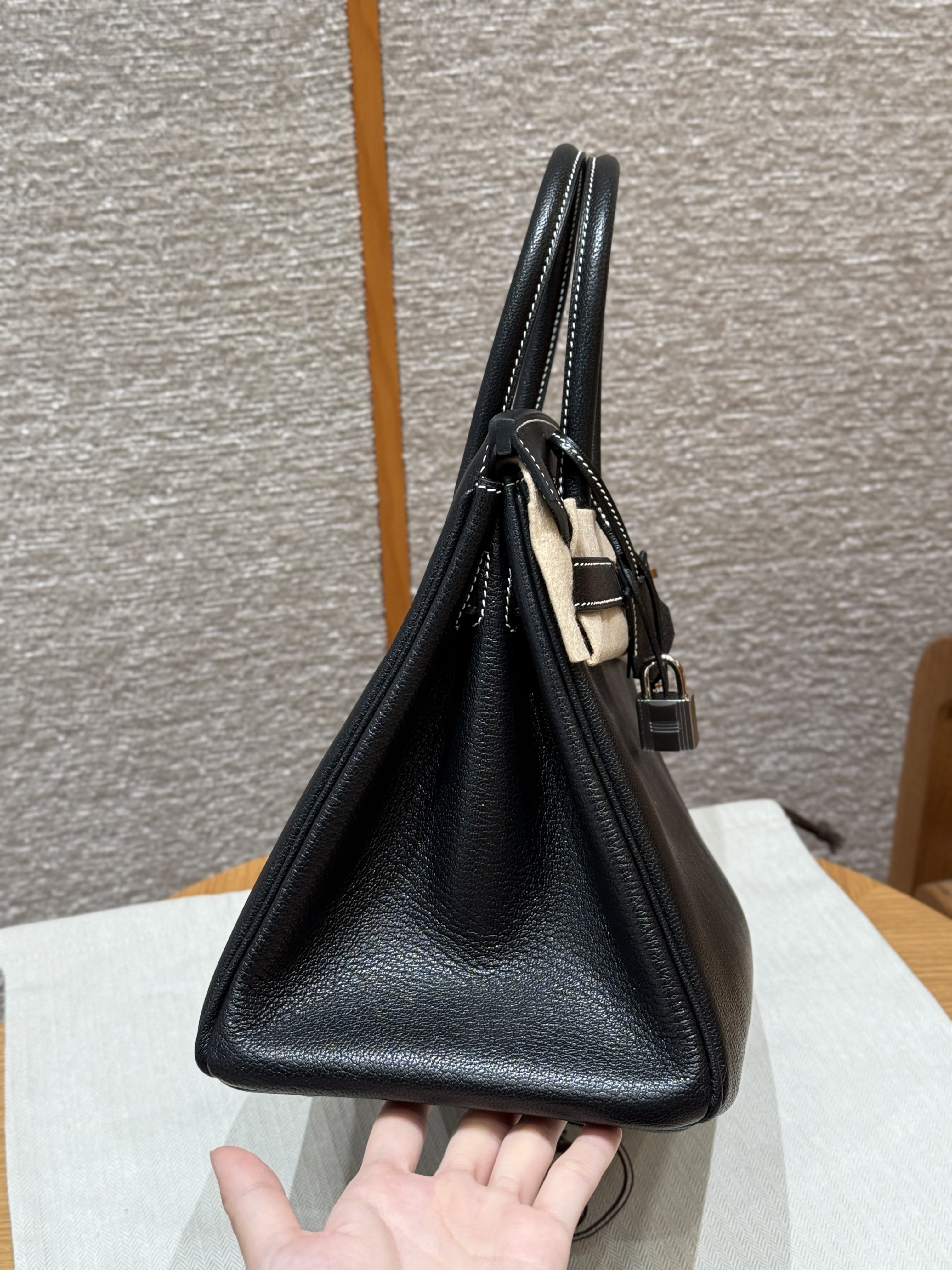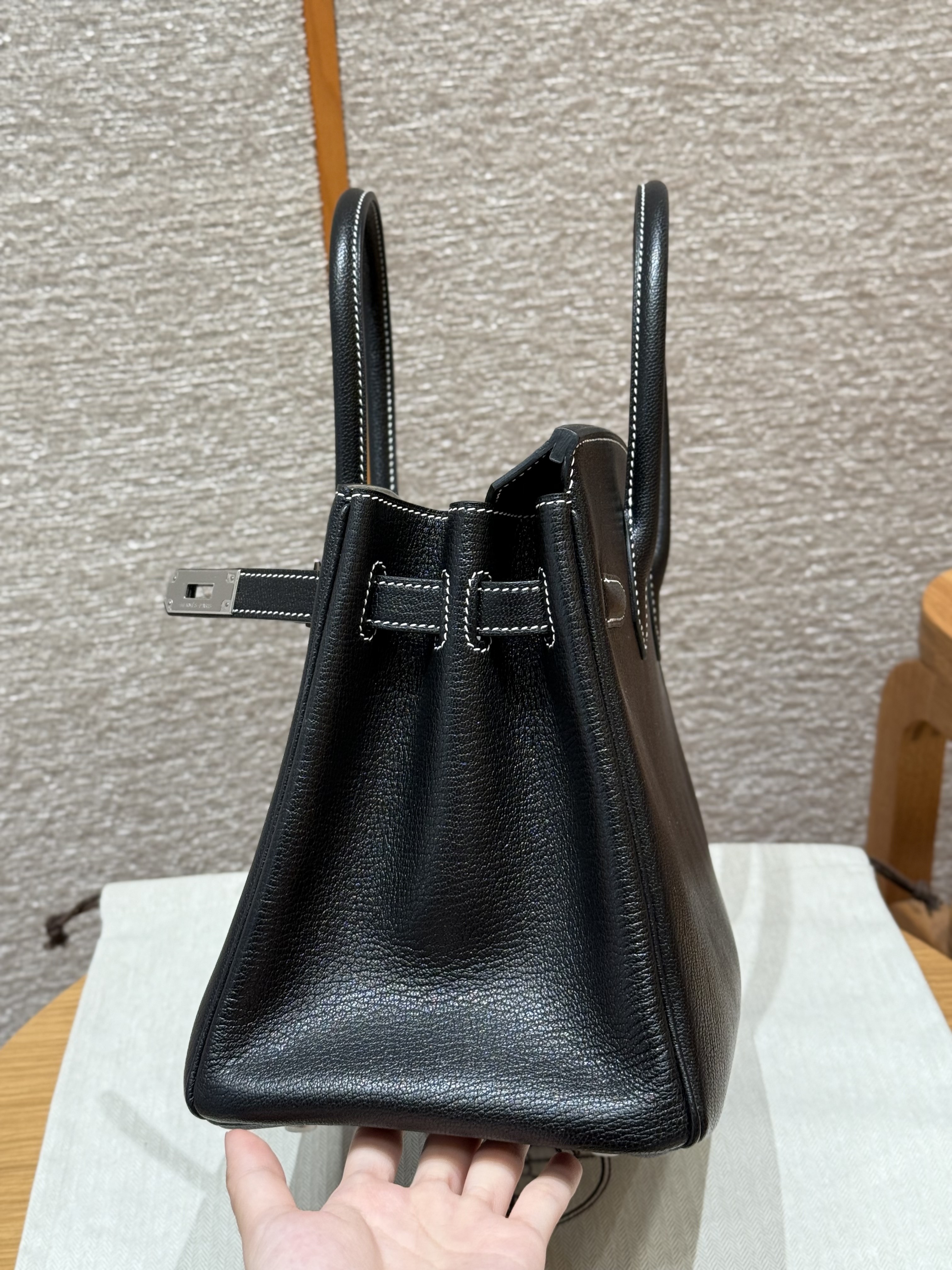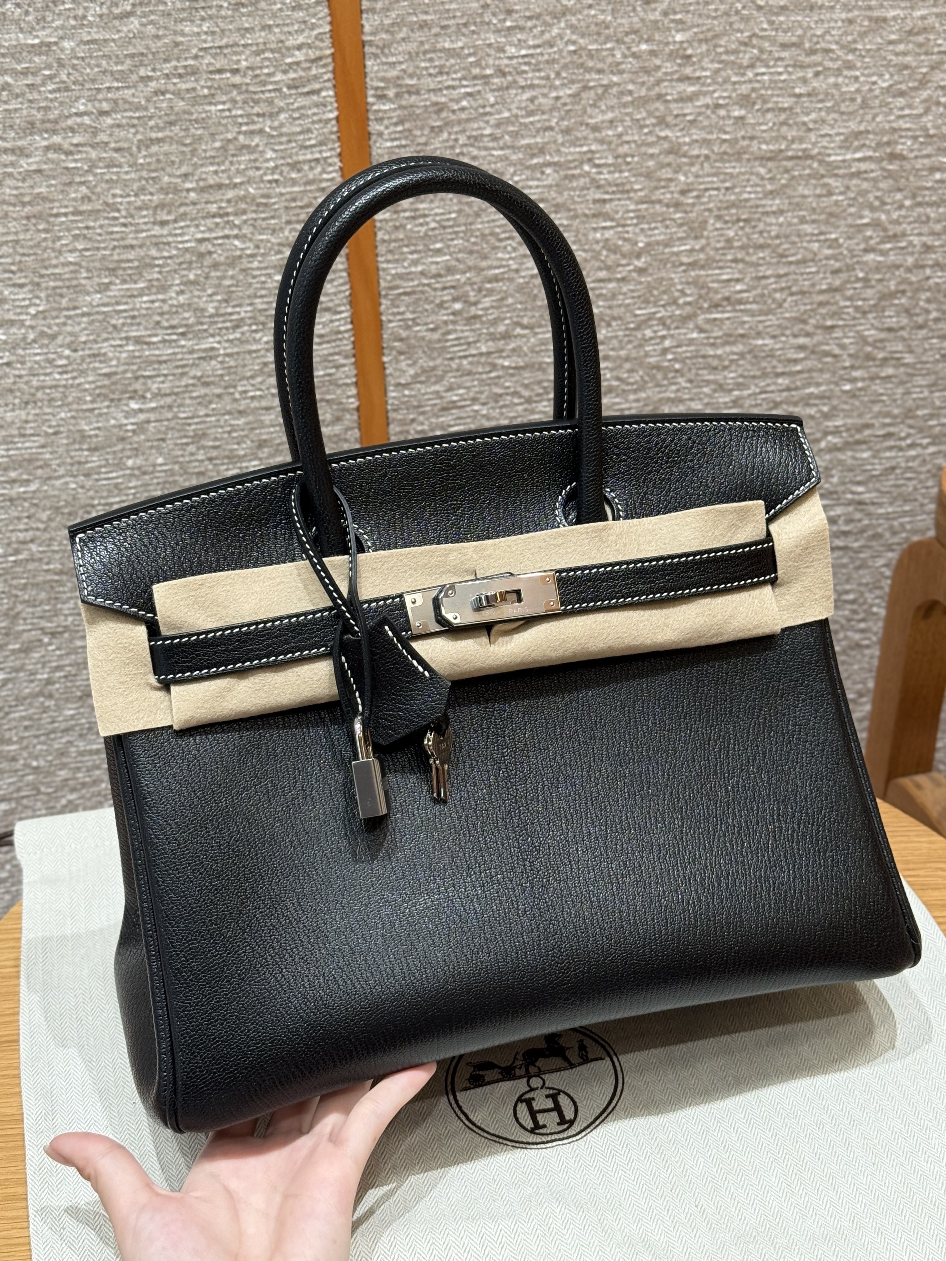 올수공 에르메스 버킨 30 Noir & Girs perle 쉐브르 가죽 실버 하드웨어