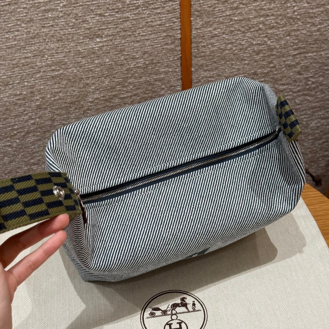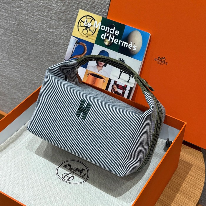 올수공 에르메스 브리드 어 브랙 파우치 GM Bleu Abysse 코튼 실버 하드웨어