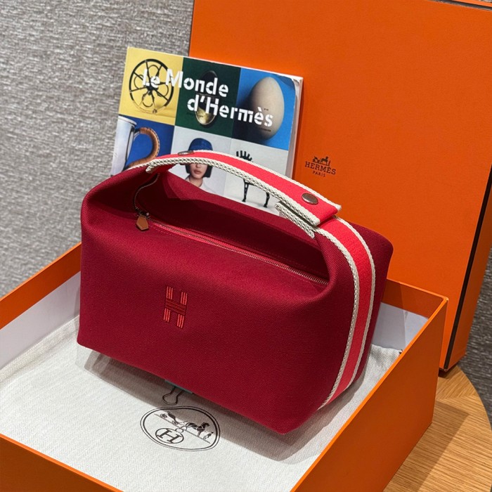 올수공 에르메스 브리드 어 브랙 파우치 GM Carmin 코튼 실버 하드웨어