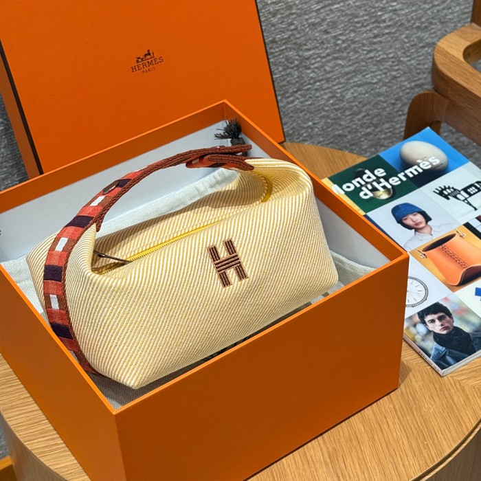 올수공 에르메스 브리드 어 브랙 파우치 PM Fauve 코튼 실버 하드웨어