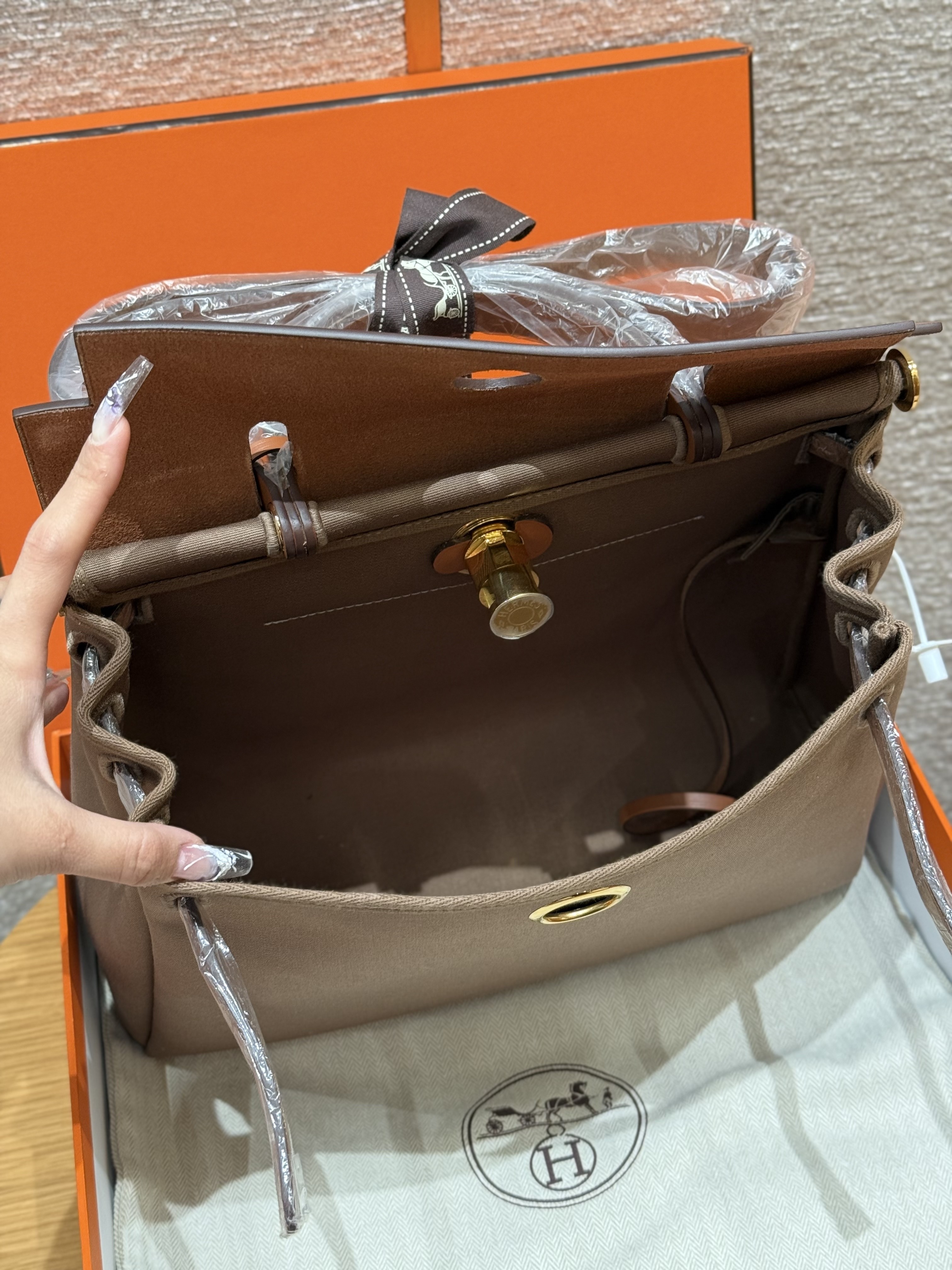 올수공 에르메스 에르백 31 Etoupe & Gold 캔버스 & 소가죽 골드 하드웨어