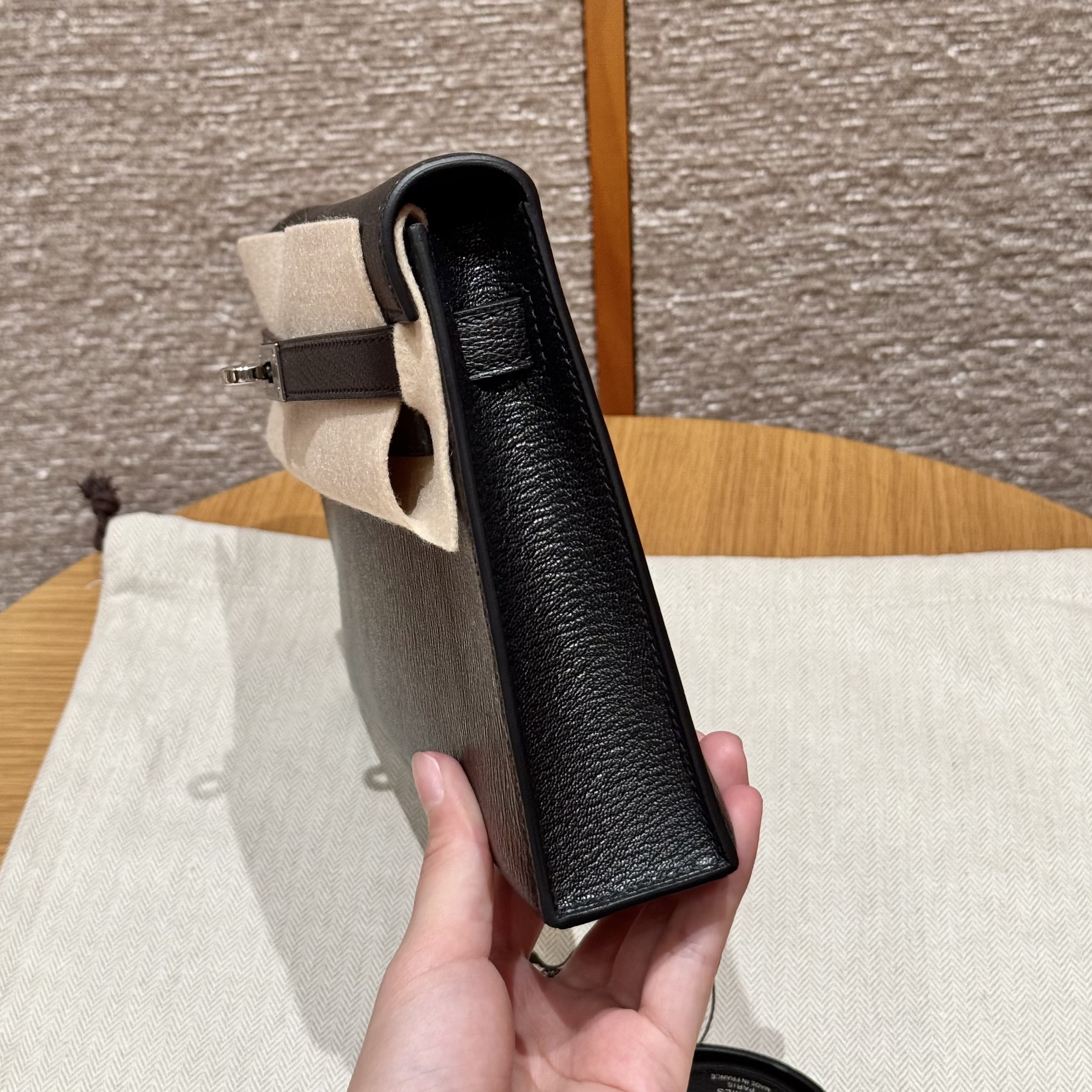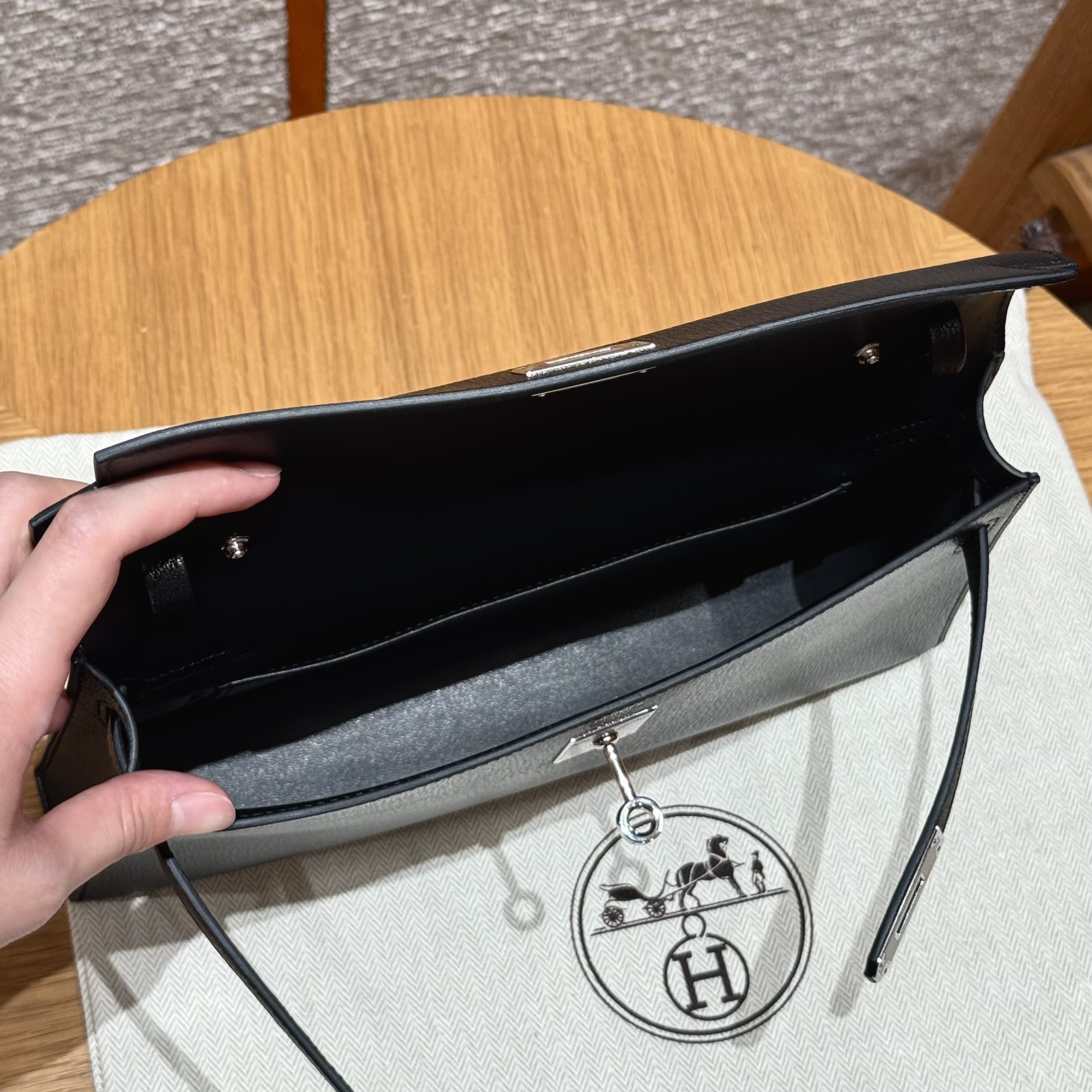 올수공 에르메스 켈리 엘란 noir 쉐브르 가죽 실버 하드웨어