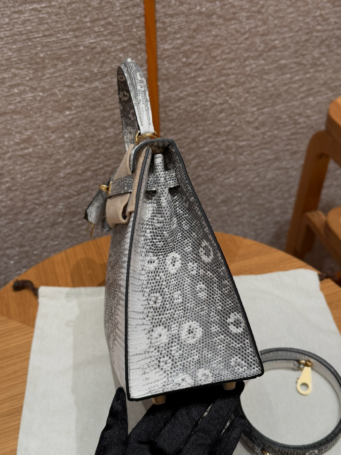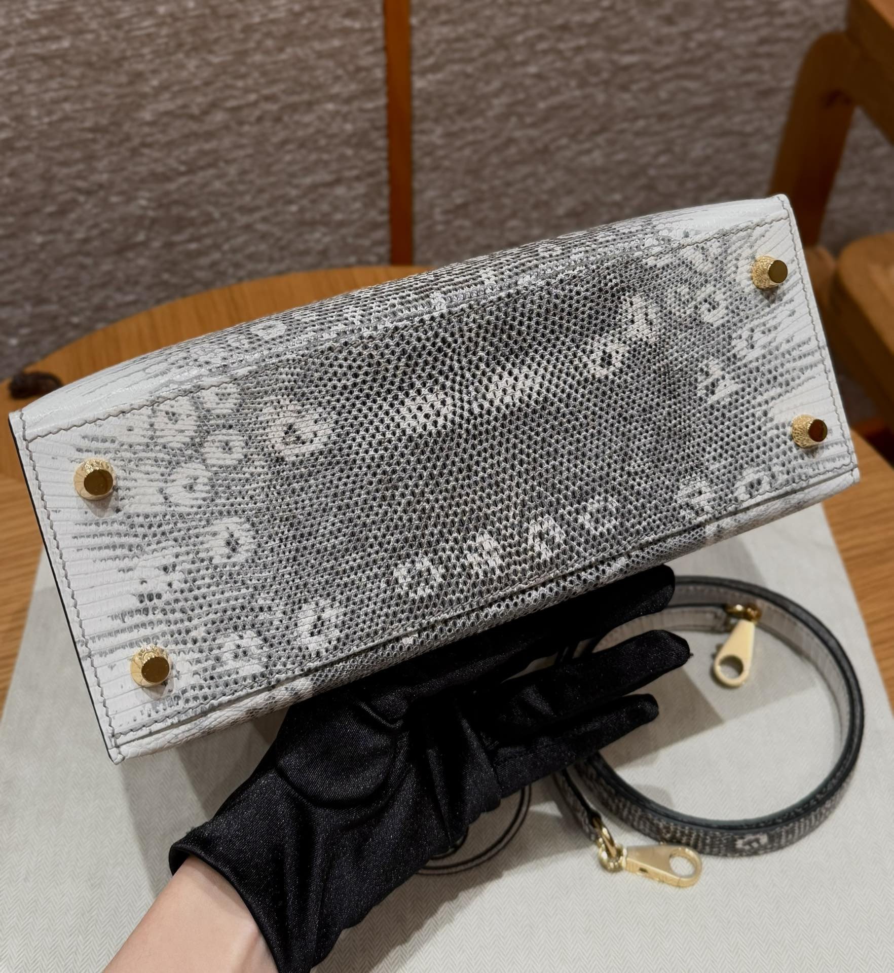 올수공 에르메스 켈리 25 1B/Ombre 리자드 가죽 골드 하드웨어