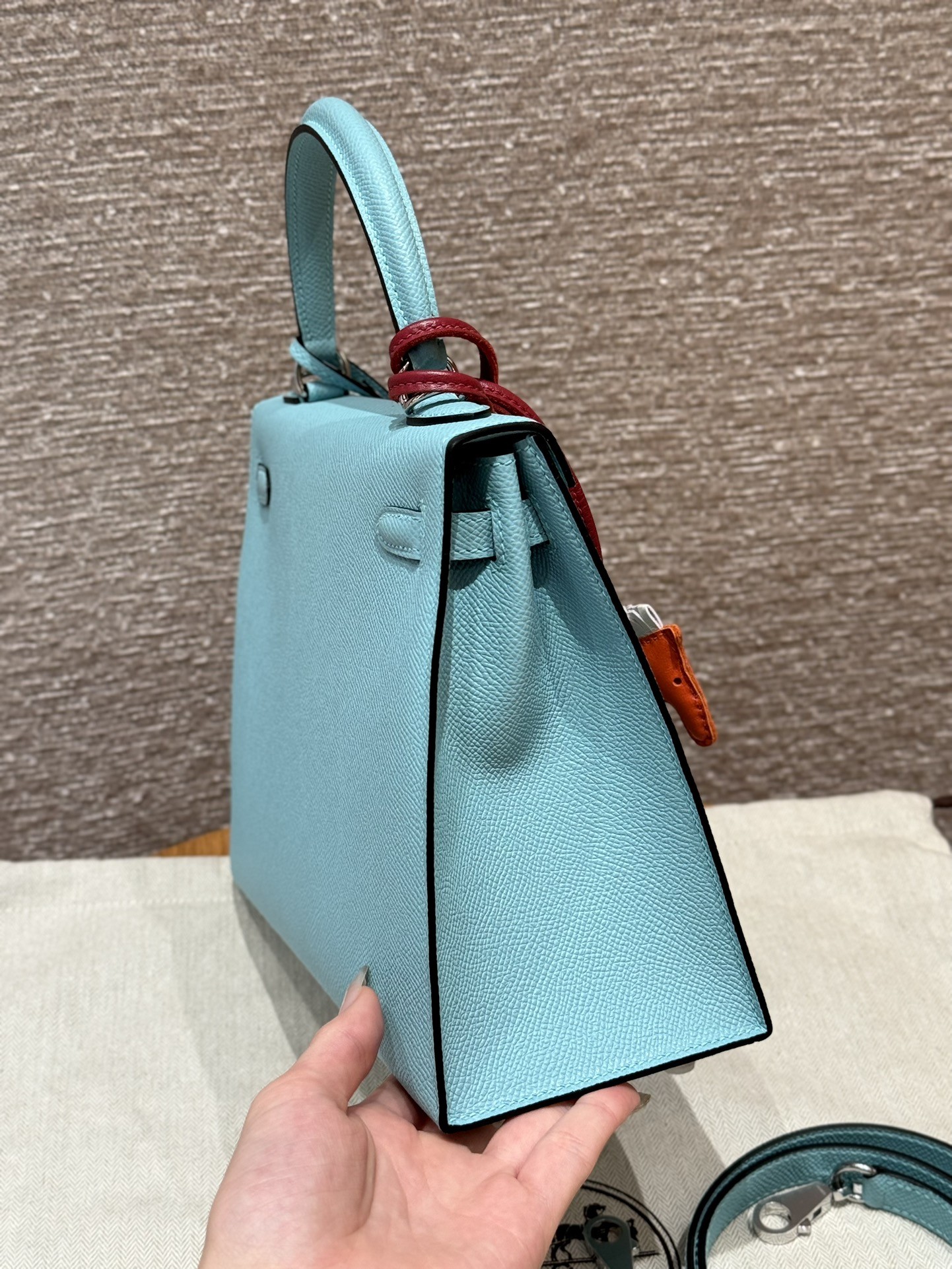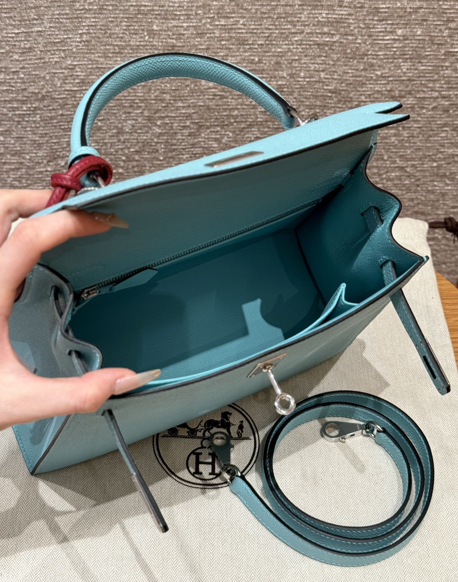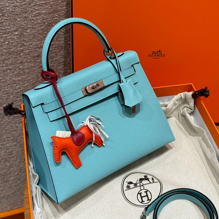 올수공 에르메스 켈리 25 3P/Blue atoll 엡송 가죽 실버 하드웨어