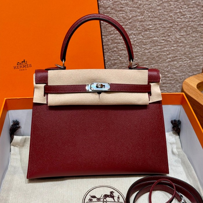 올수공 에르메스 켈리 25 55/Rouge H 엡송 가죽 실버 하드웨어