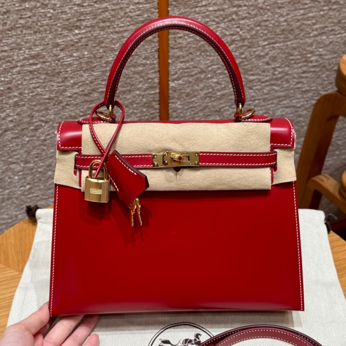 올수공 에르메스 켈리 25 5x/Rouge piment 박스 가죽 골드 하드웨어