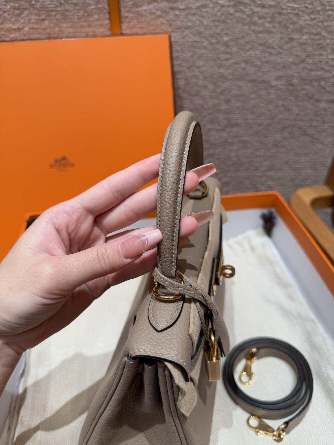 올수공 에르메스 켈리 25 81/Girs tourterlle 토고 가죽 골드 하드웨어
