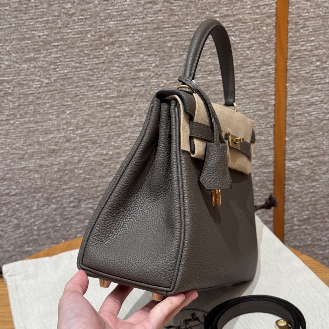 올수공 에르메스 켈리 25 8F/Etain 토고 가죽 골드 하드웨어