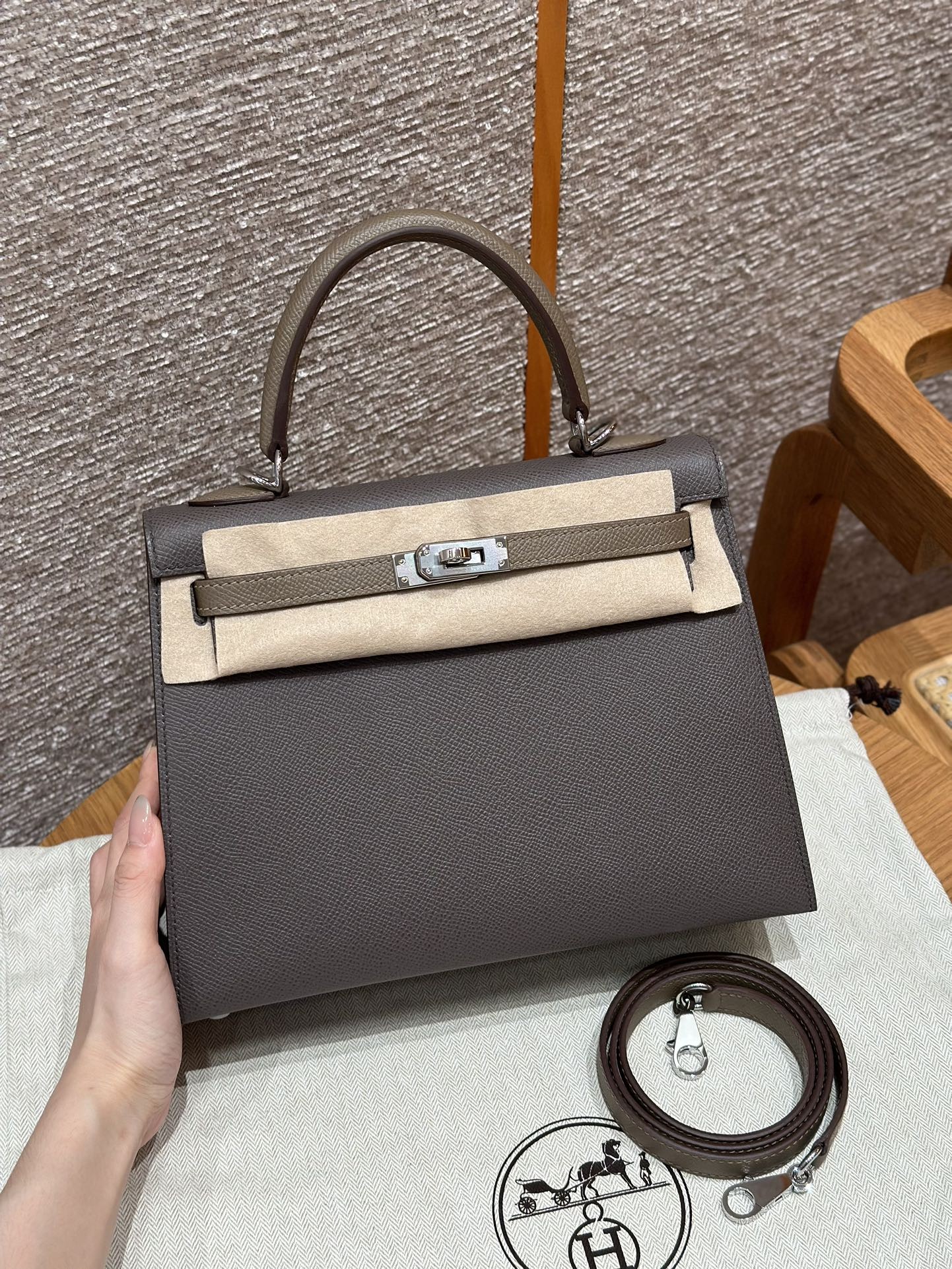 올수공 에르메스 켈리 25 8F/Etain /ck18/Etoup 엡송 가죽 실버 하드웨어