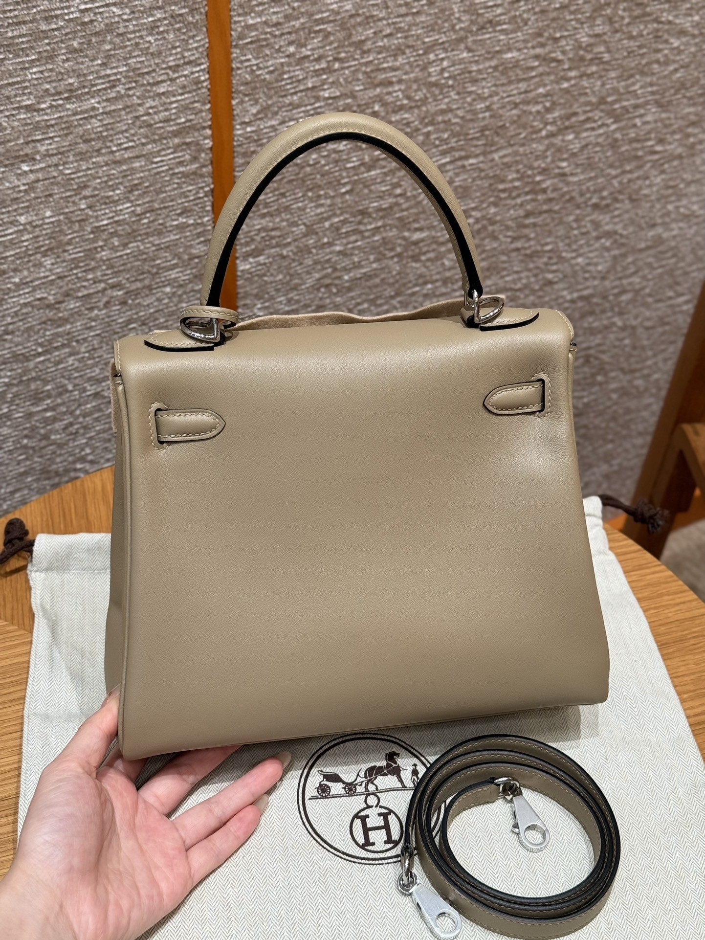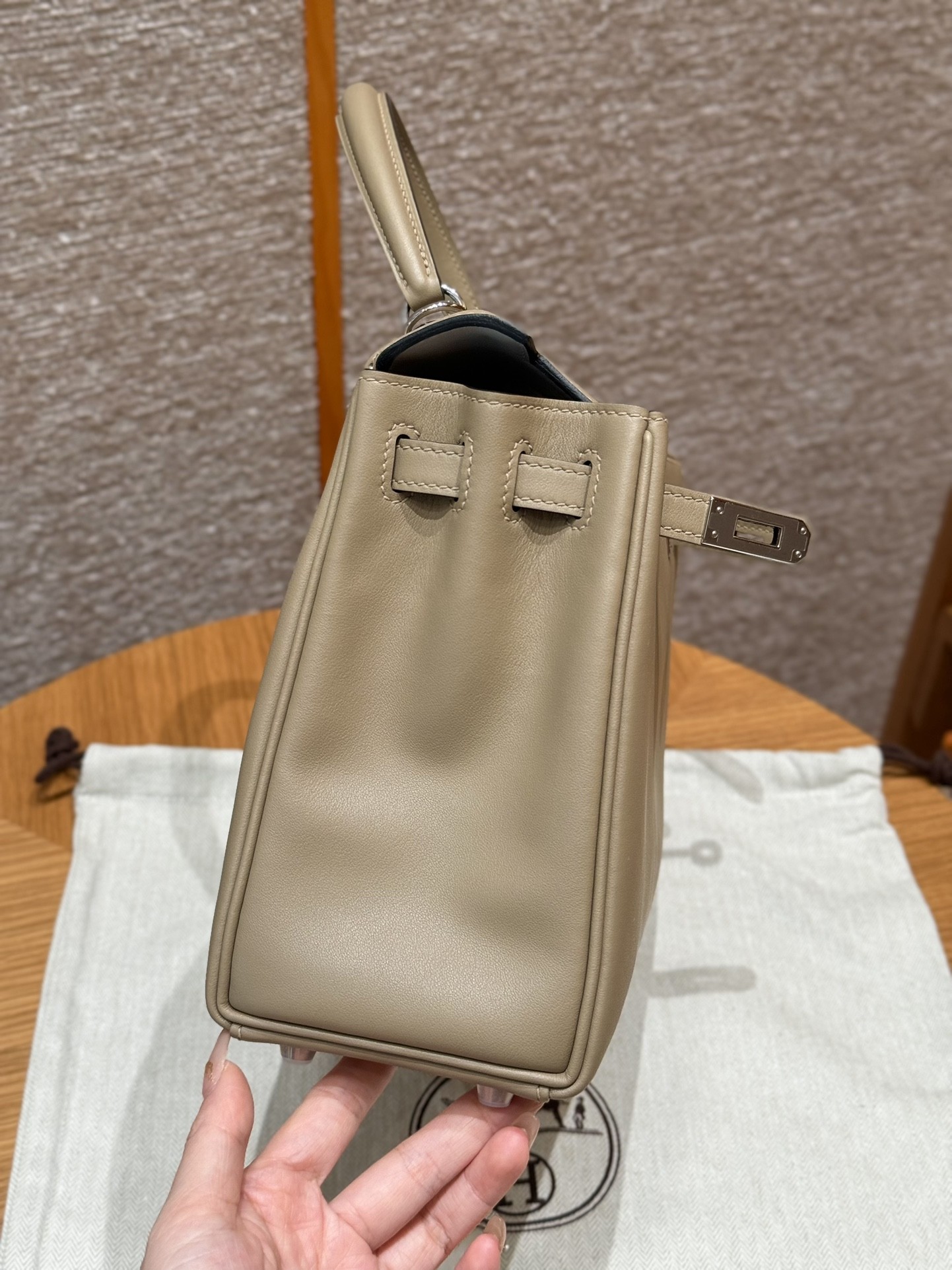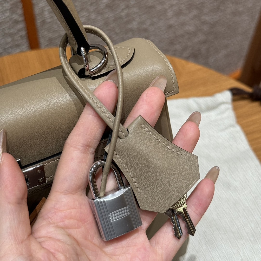 올수공 에르메스 켈리 25 8Q/Beige Marfa M4/Gris pale 스위프트 가죽 실버 하드웨어