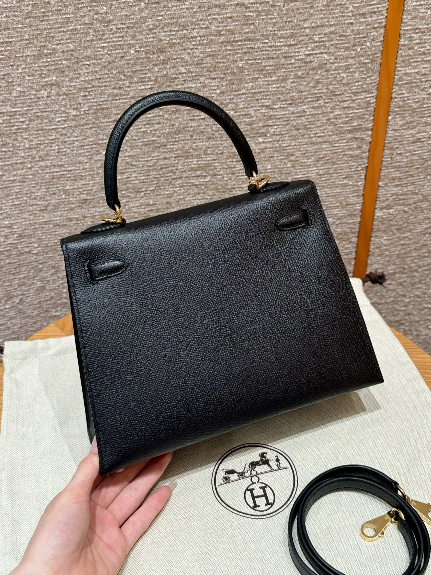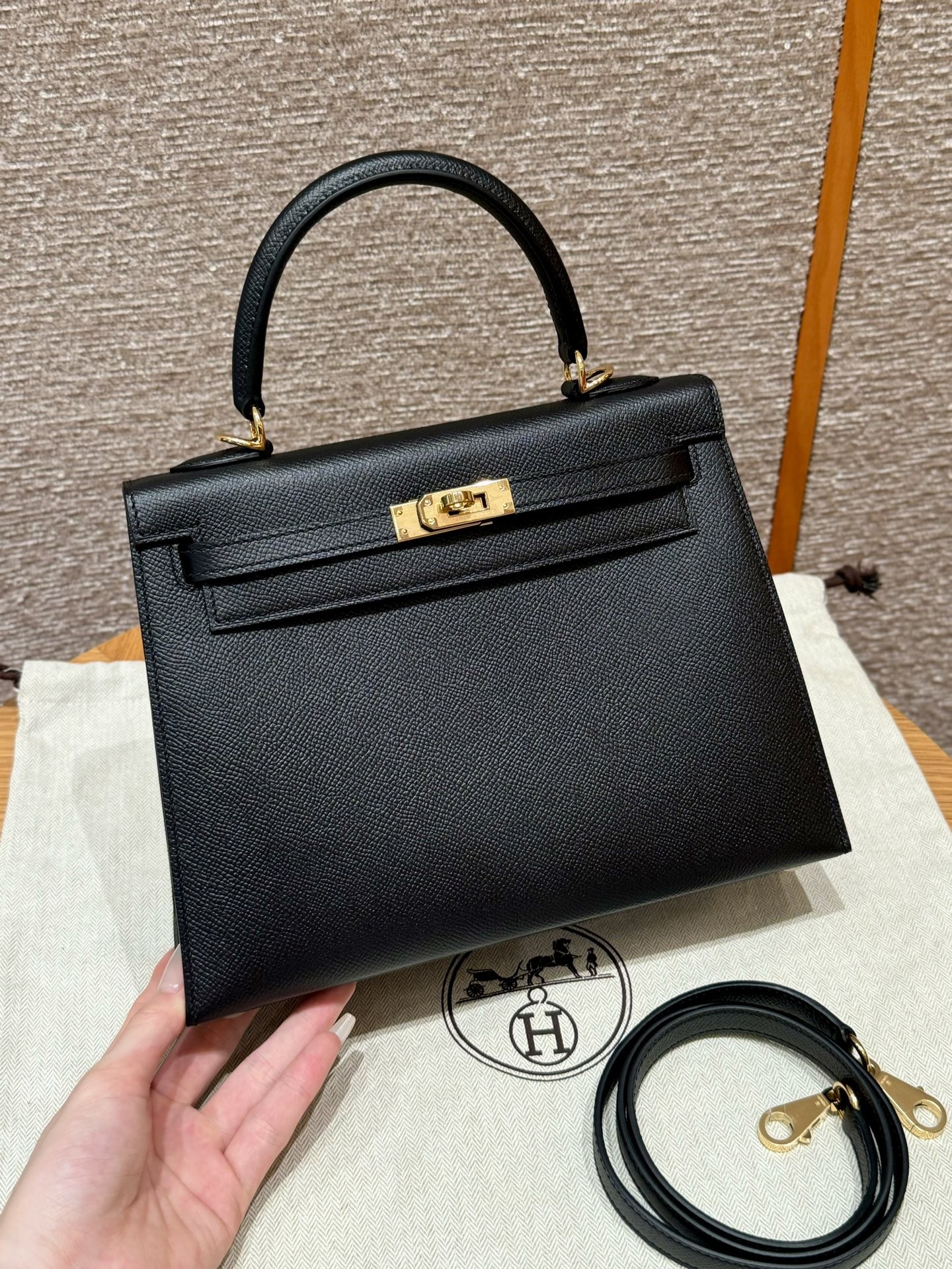 올수공 에르메스 켈리 25 ck89/noir 엡송 가죽 골드 하드웨어