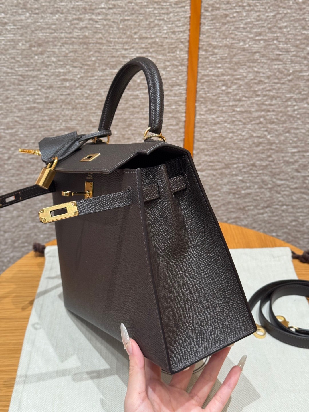 올수공 에르메스 켈리 25 Ebene 엡송 가죽 골드 하드웨어