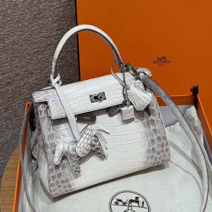 올수공 에르메스 켈리 25 Himalaya 악어 가죽 실버 하드웨어