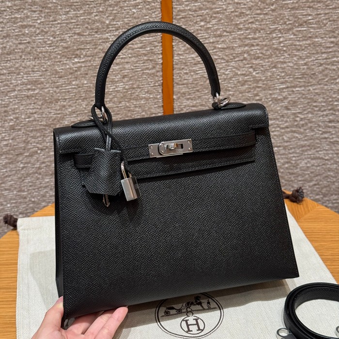 올수공 에르메스 켈리 25 noir 엡송 가죽 실버 하드웨어
