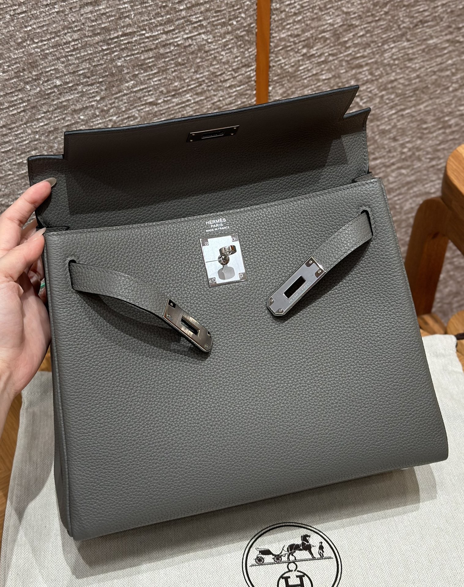 올수공 에르메스 켈리 28 0L/Gris Mayer 토고 가죽 실버 하드웨어