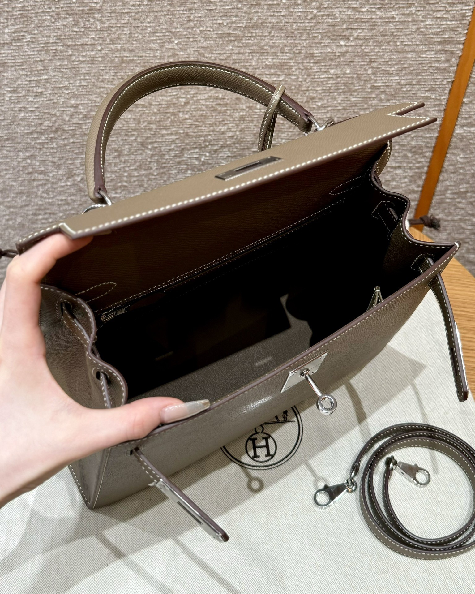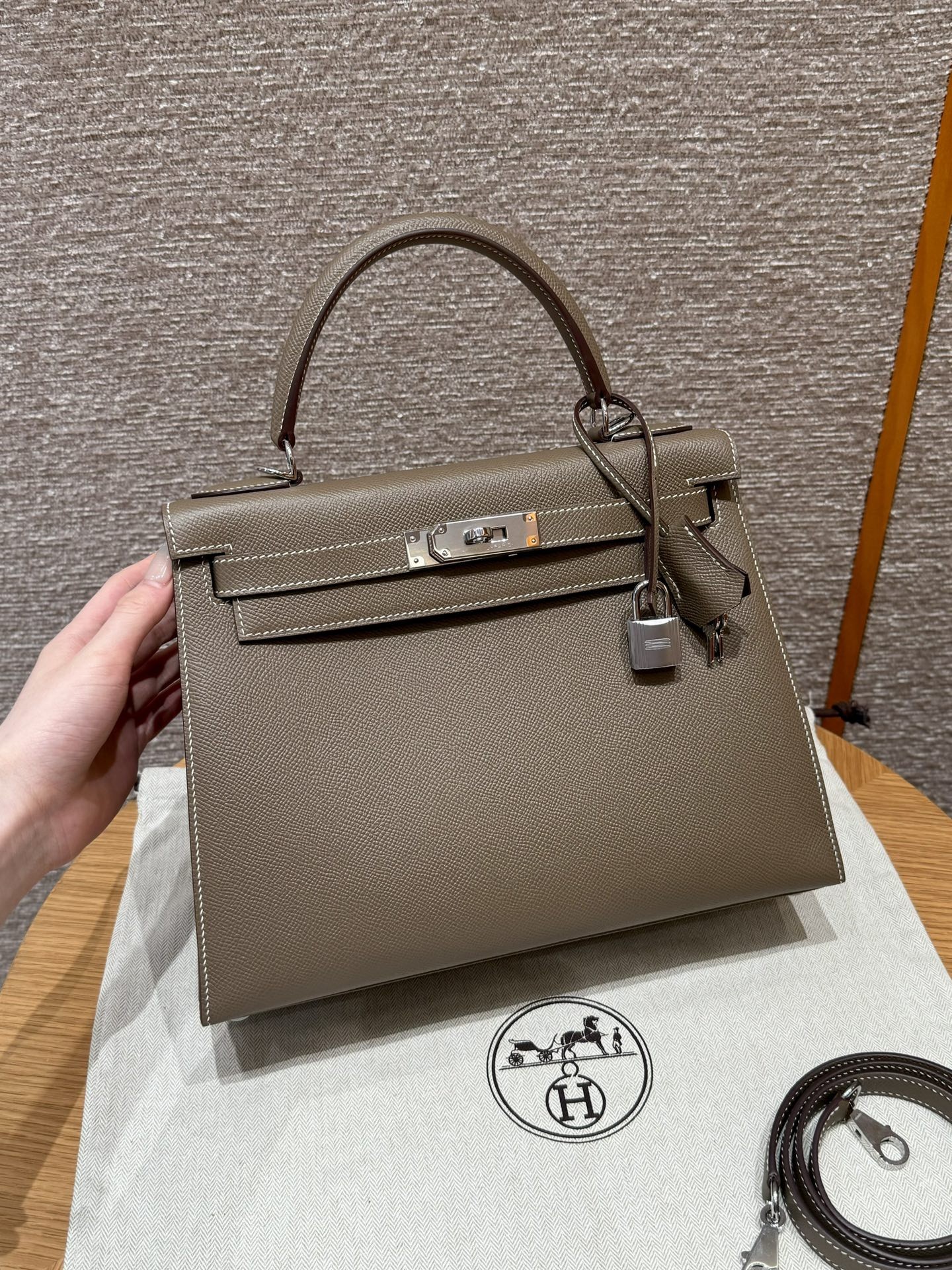 올수공 에르메스 켈리 28 ck18/Etoupe 엡송 가죽 실버 하드웨어