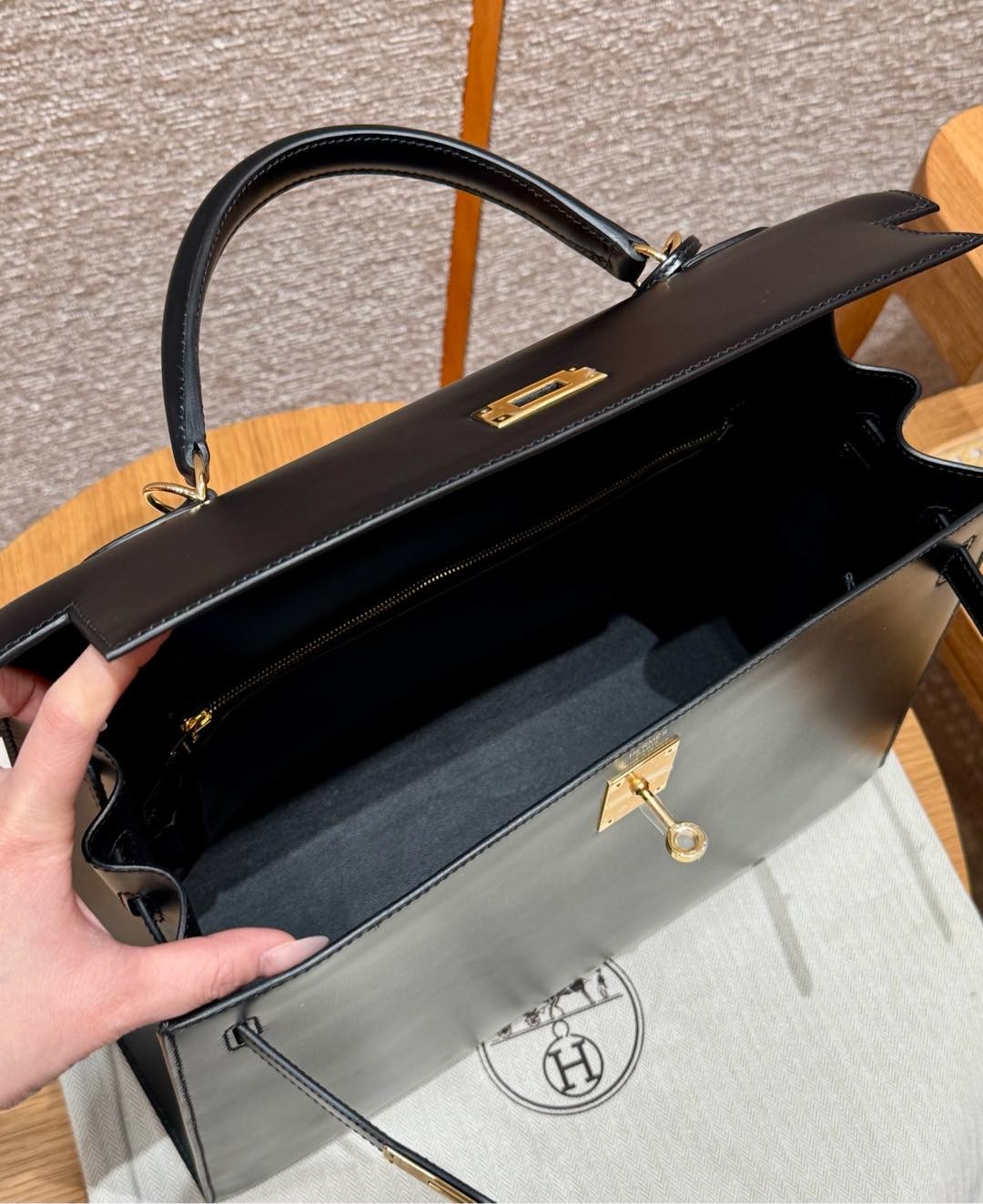 올수공 에르메스 켈리 35 89/noir 박스 가죽 골드 하드웨어