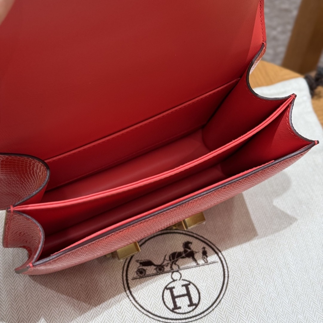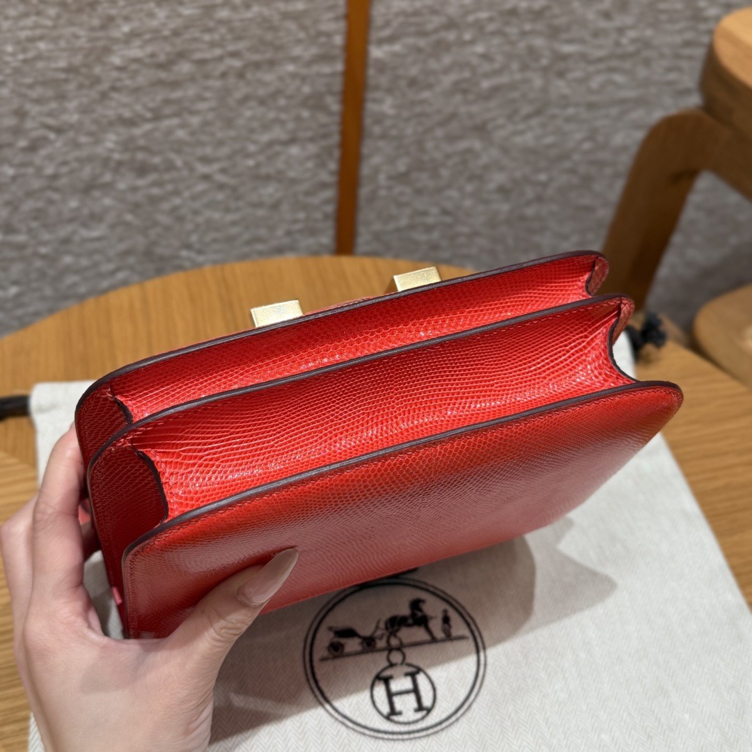 올수공 에르메스 콘스탄스 19 51/Rouge Exotique 리자드 가죽 골드 하드웨어