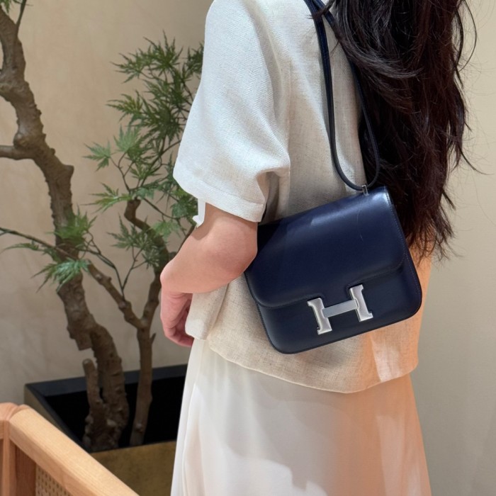 올수공 에르메스 콘스탄스 19 73/Blue saphir 박스 가죽 실버 하드웨어