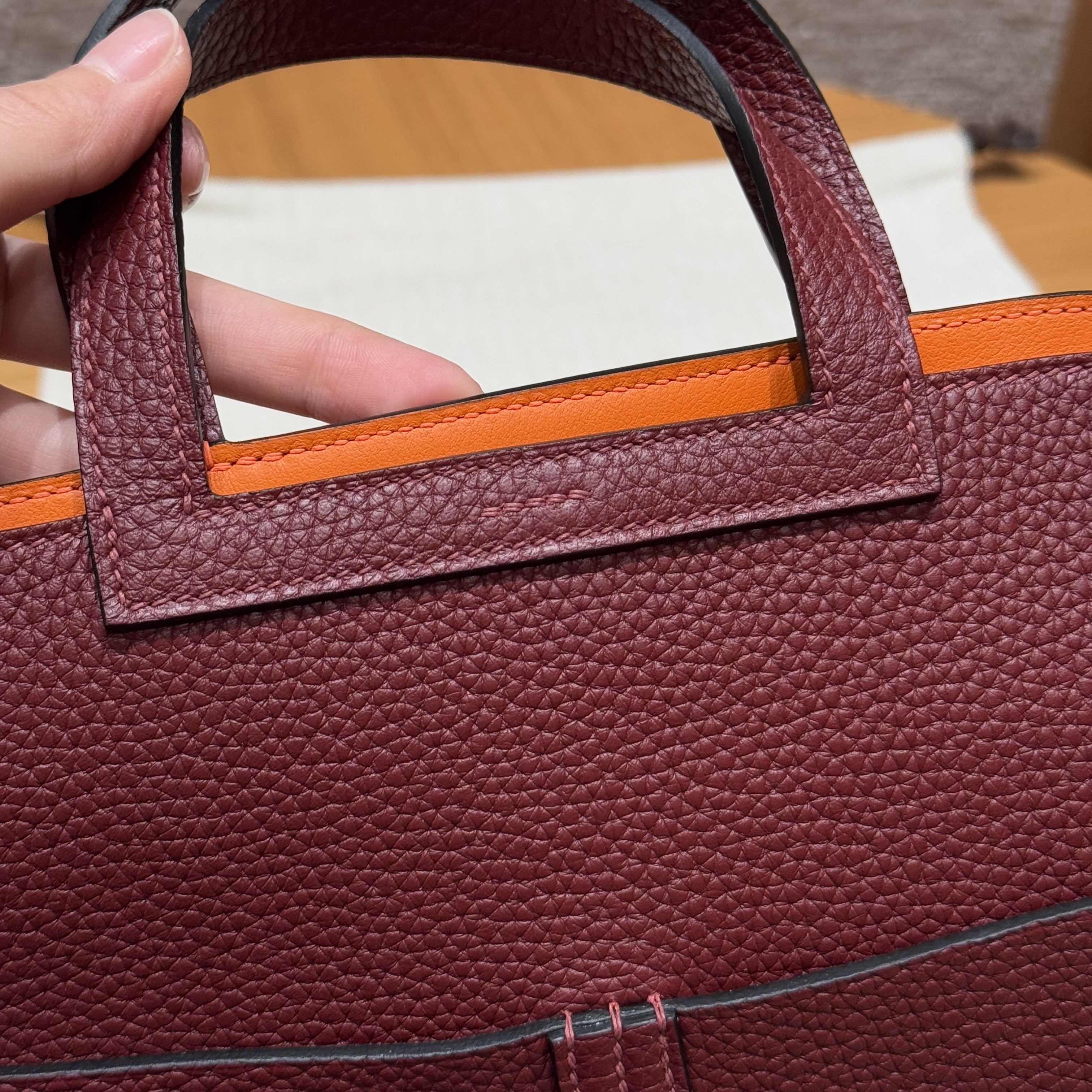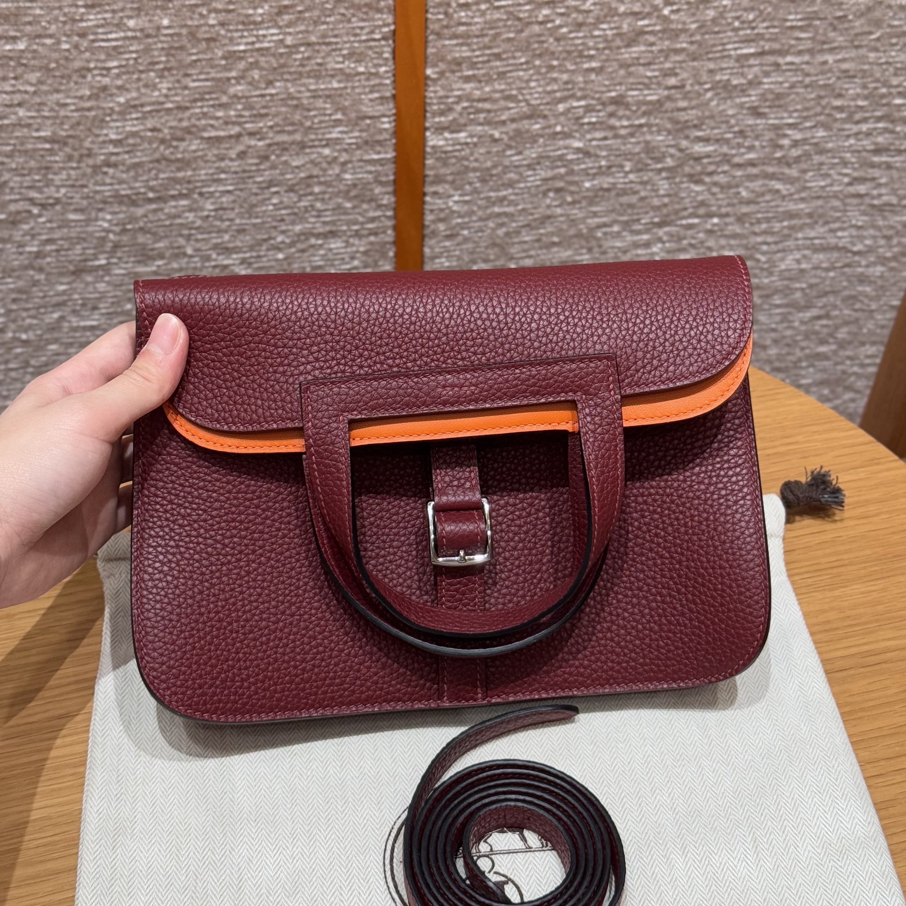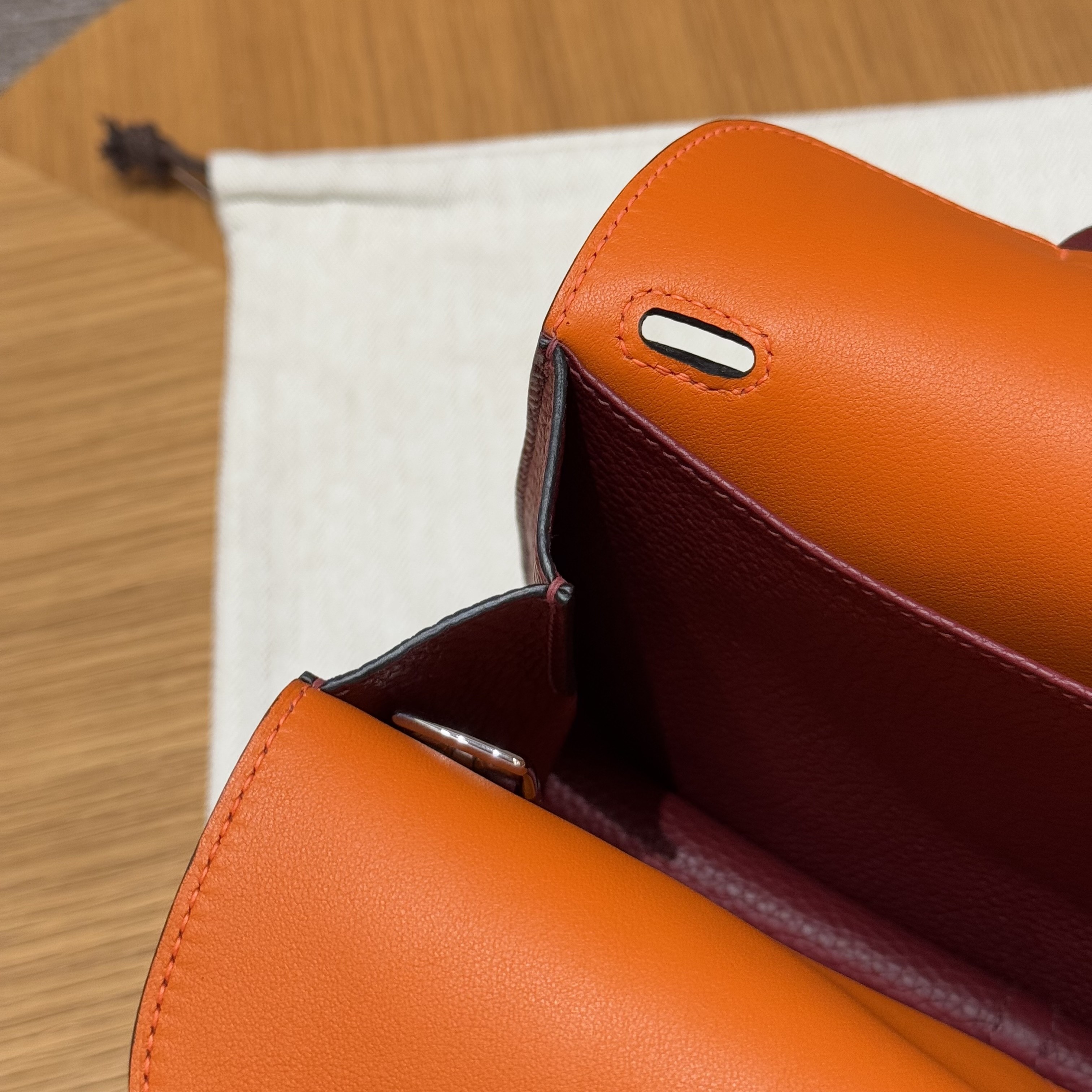 올수공 에르메스 할잔 25 백 Rouge H & Orange 클레망스 & 실버 하드웨어