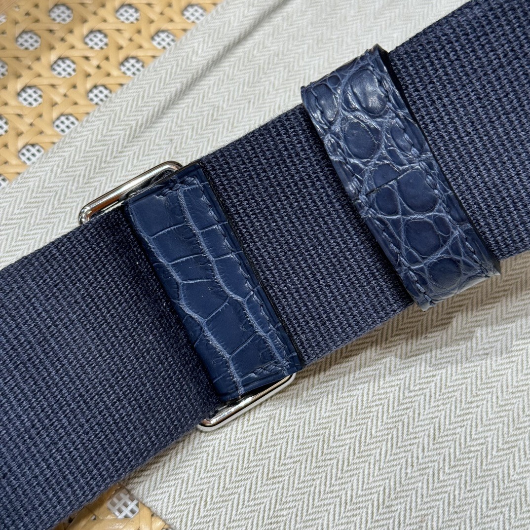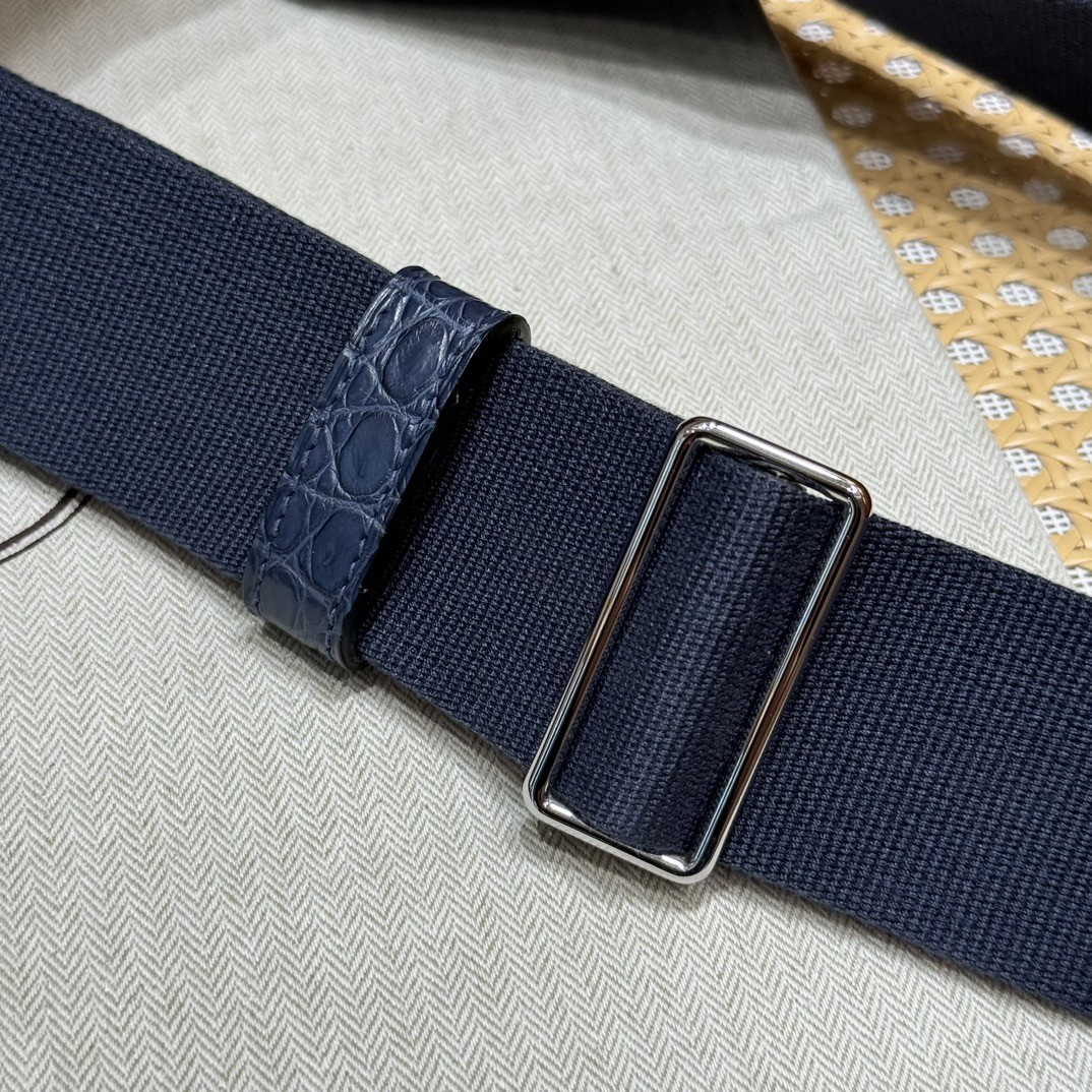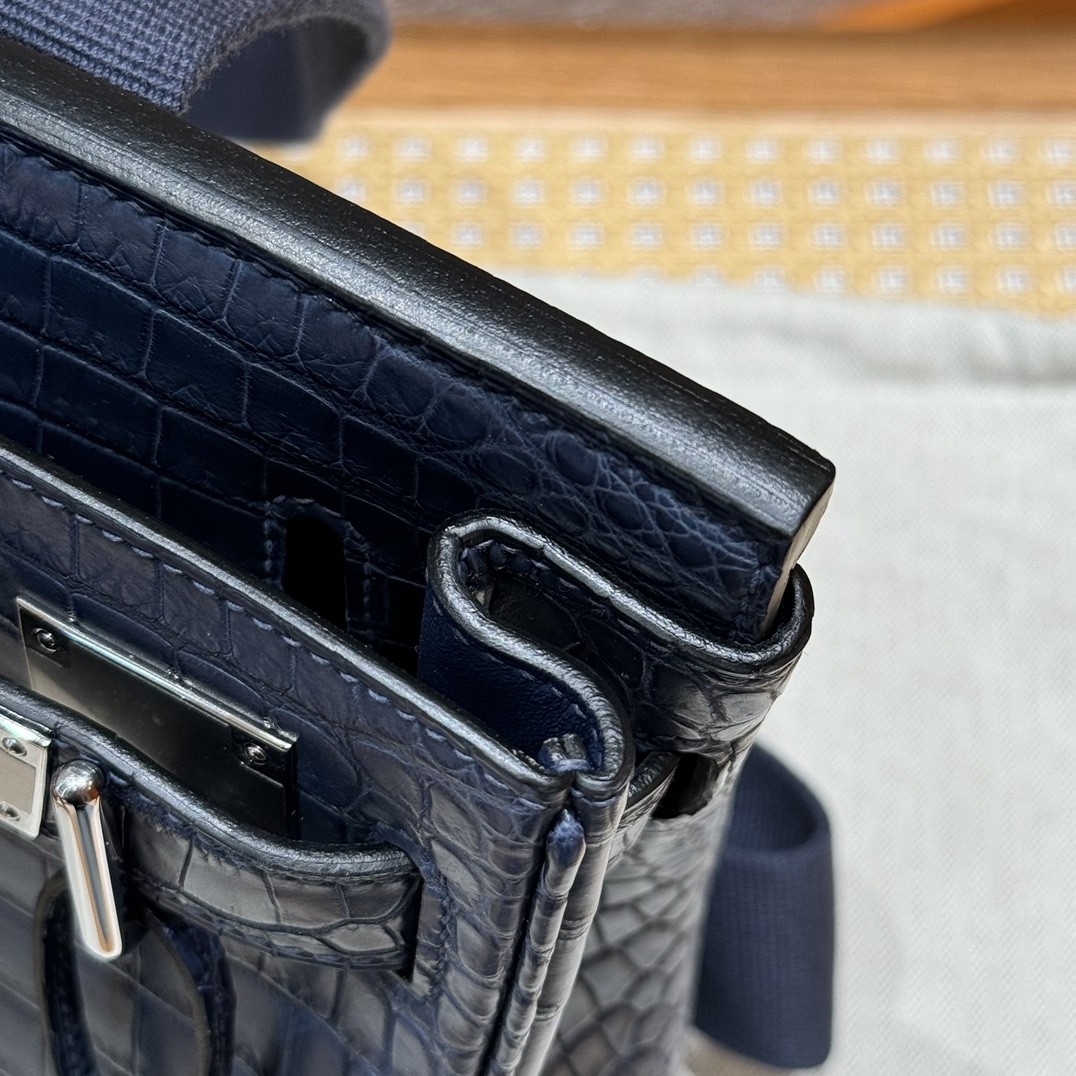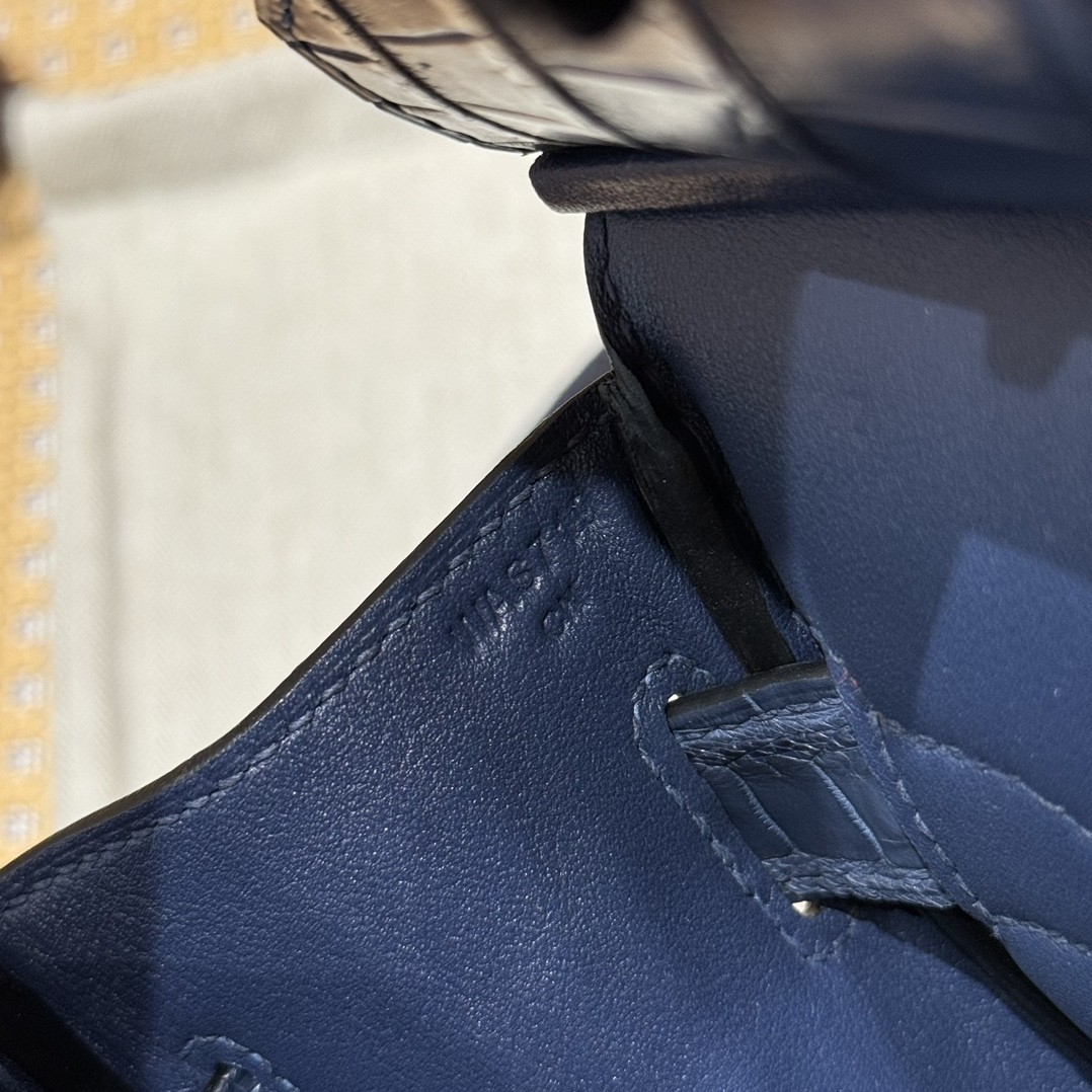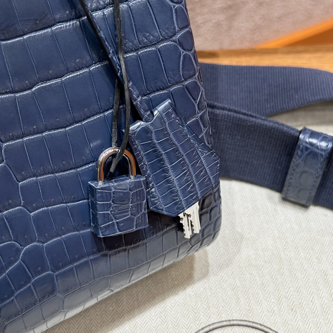 올수공 에르메스 핵아도 Blue indigo 악어 가죽 실버 하드웨어
