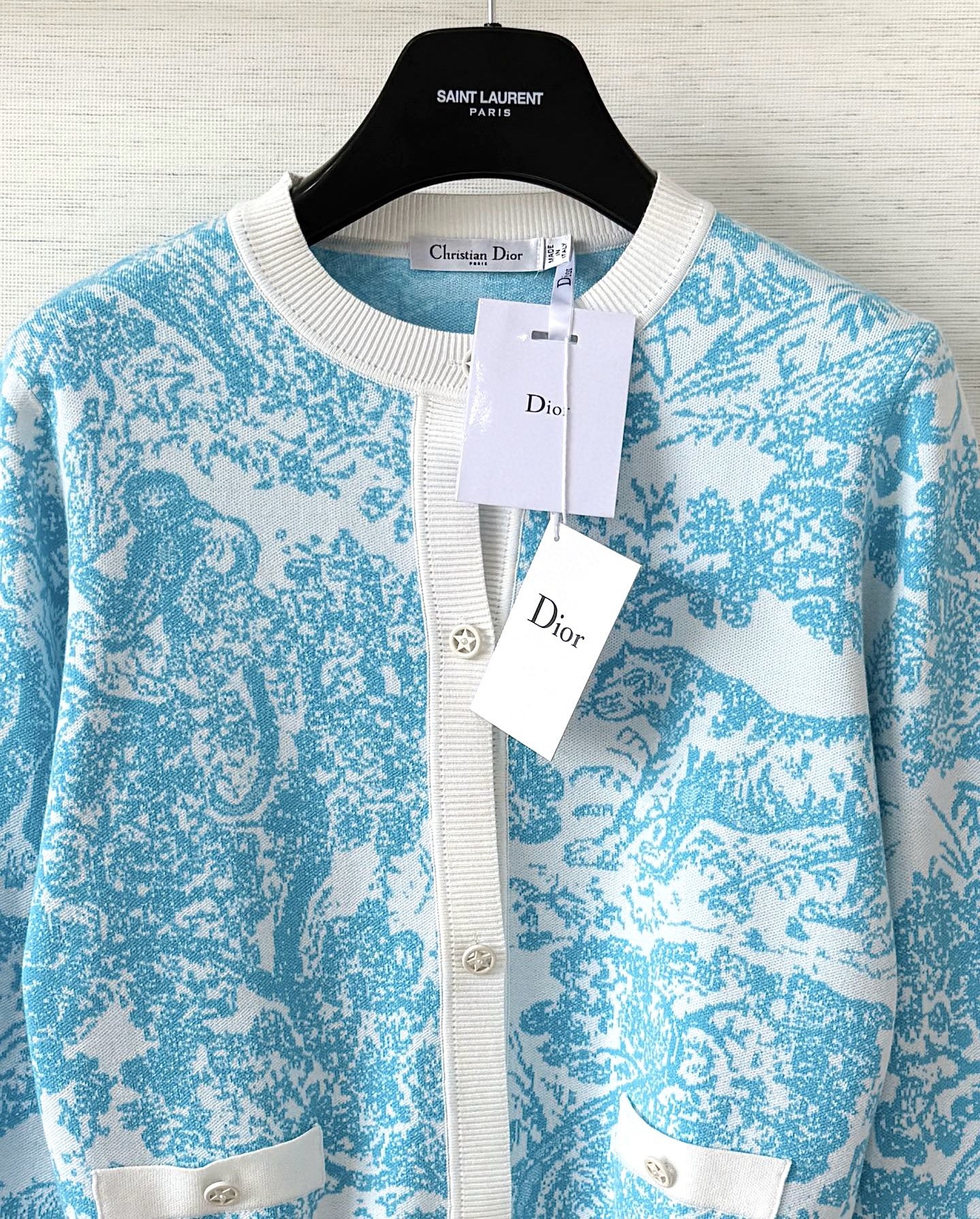 “최고퀄 디올 Dioriviera 크롭 재킷 화이트 테크니컬 니트 & 은방울꽃 그린 Toile de Jouy Sauvage 모티브”의 첫 상품평을 남겨주세요;