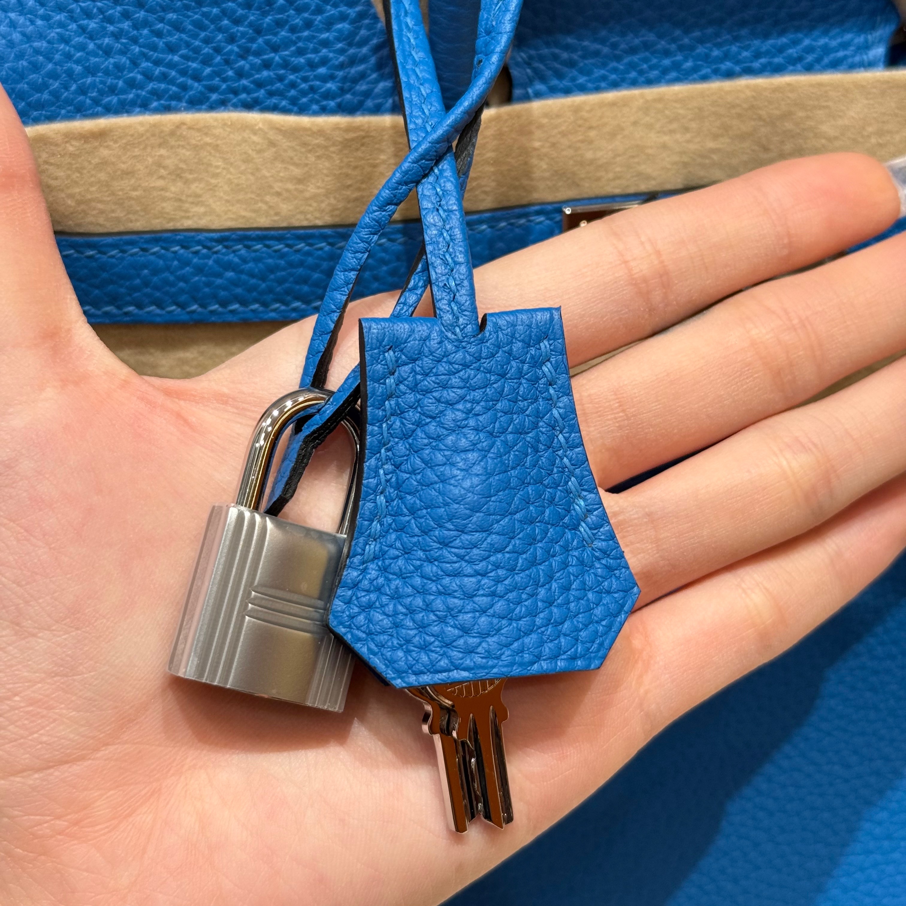 최고퀄 에르메스 올수공 버킨 25 블루 잘리쥬 토고 가죽 은장