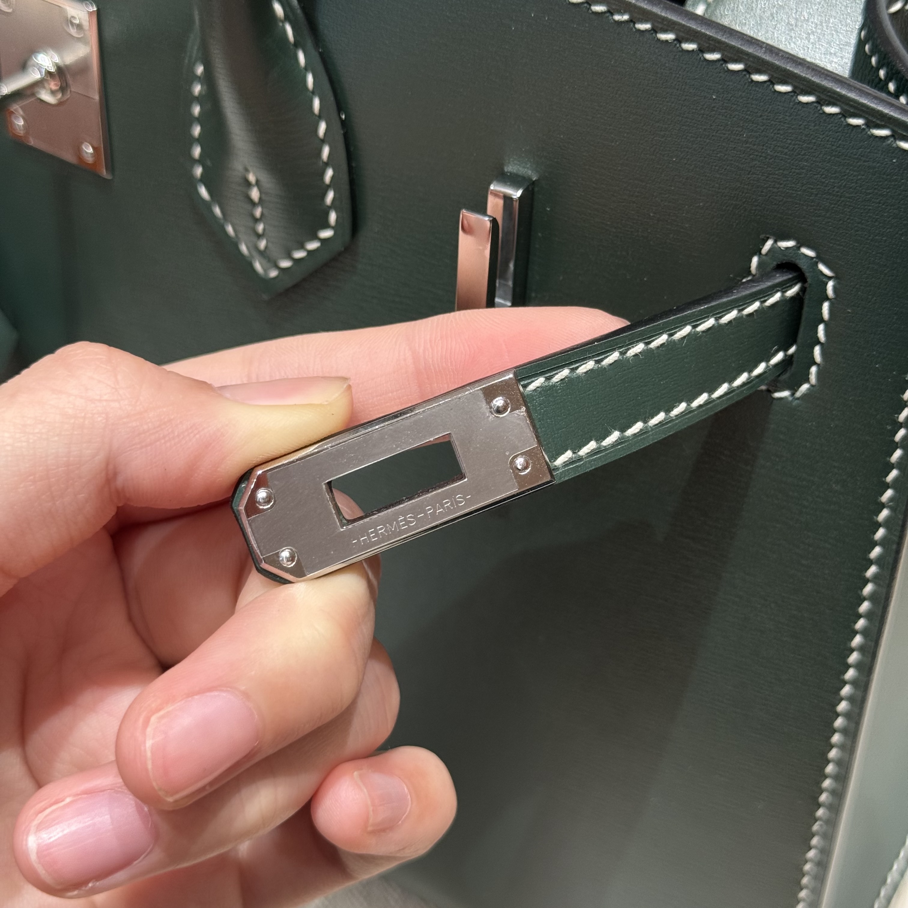 최고퀄 에르메스 올수공 버킨 25 포레스트 그린 박스 가죽 은장