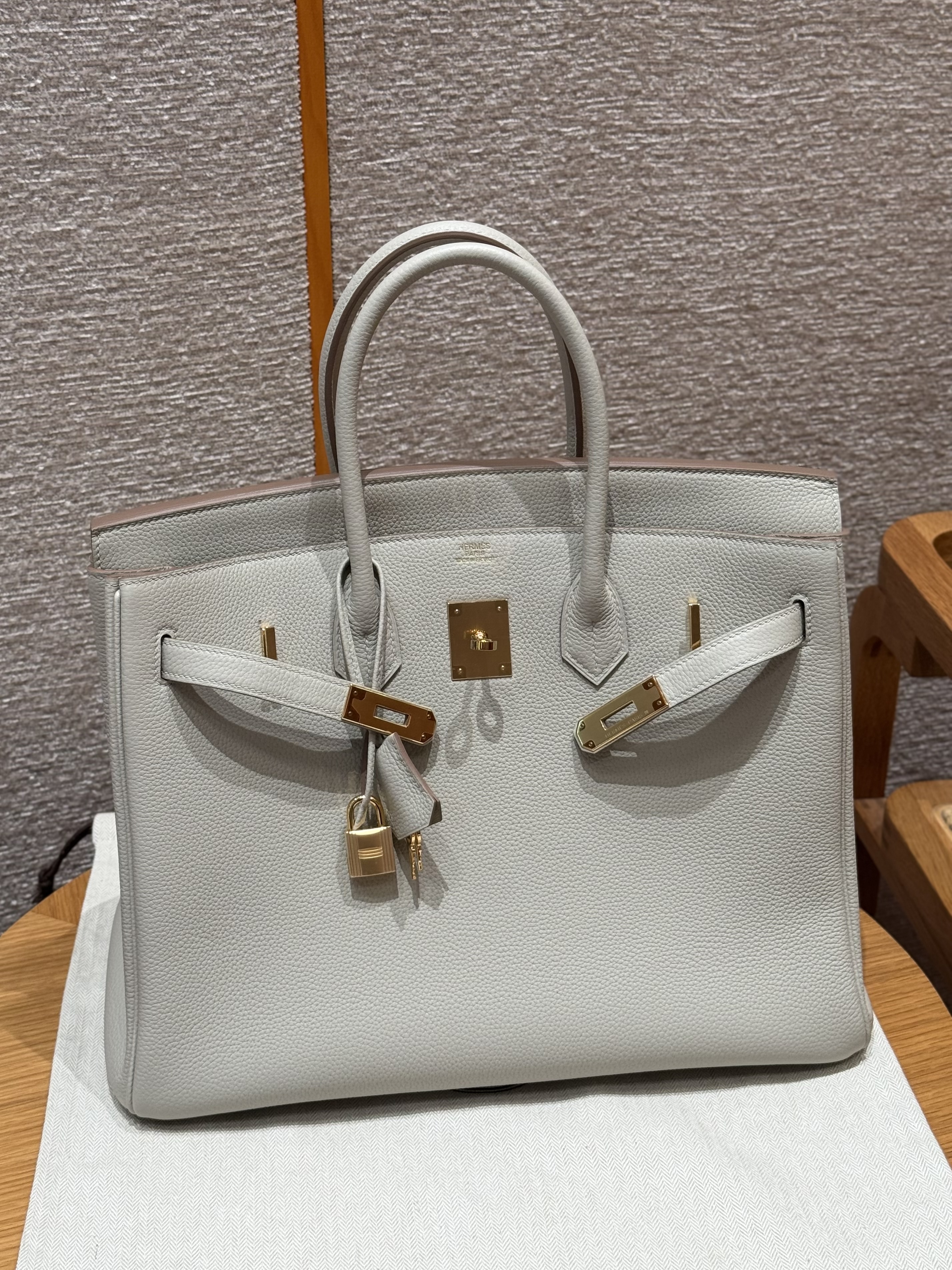 최고퀄 에르메스 올수공 버킨 35 라이트 그레이 토고 가죽 금장