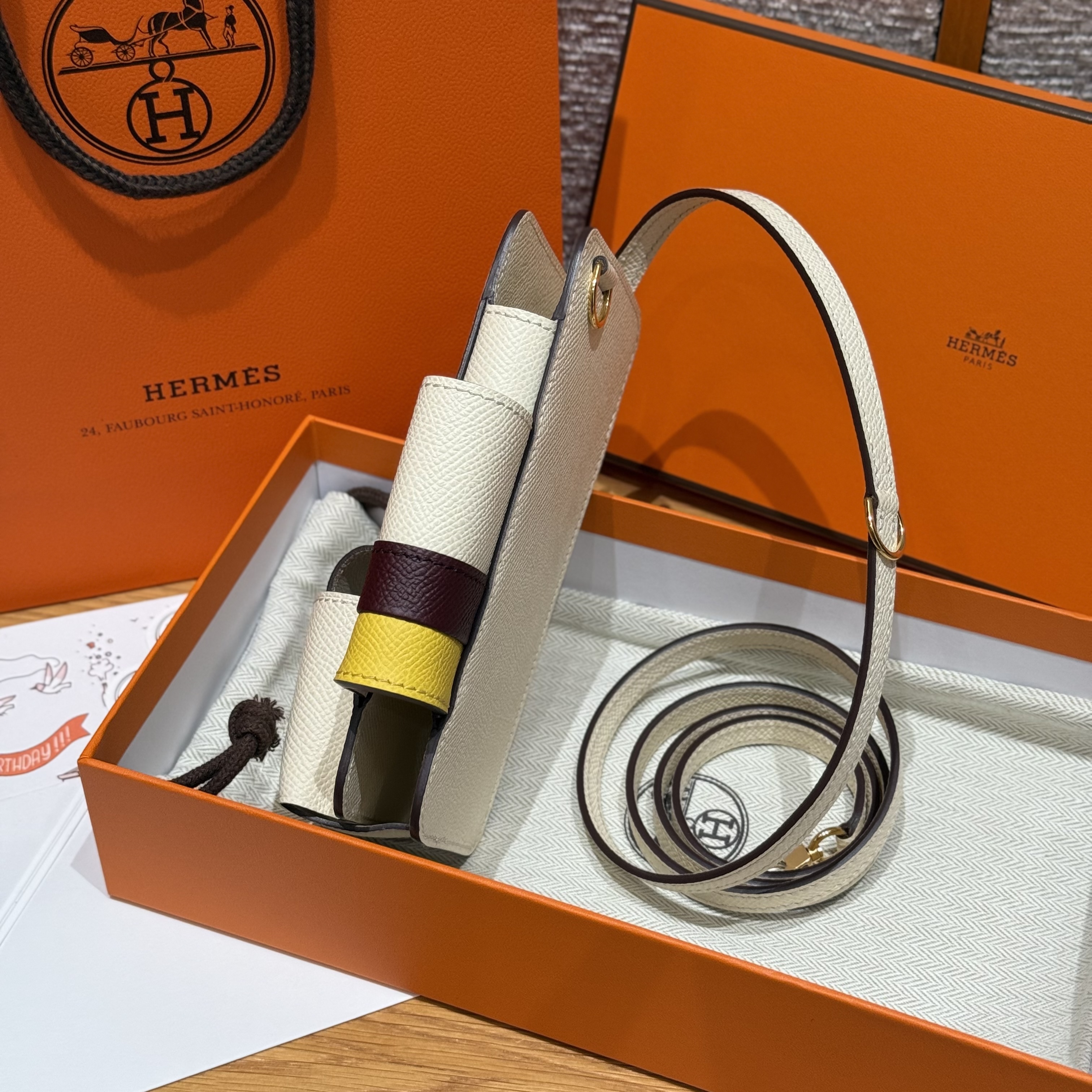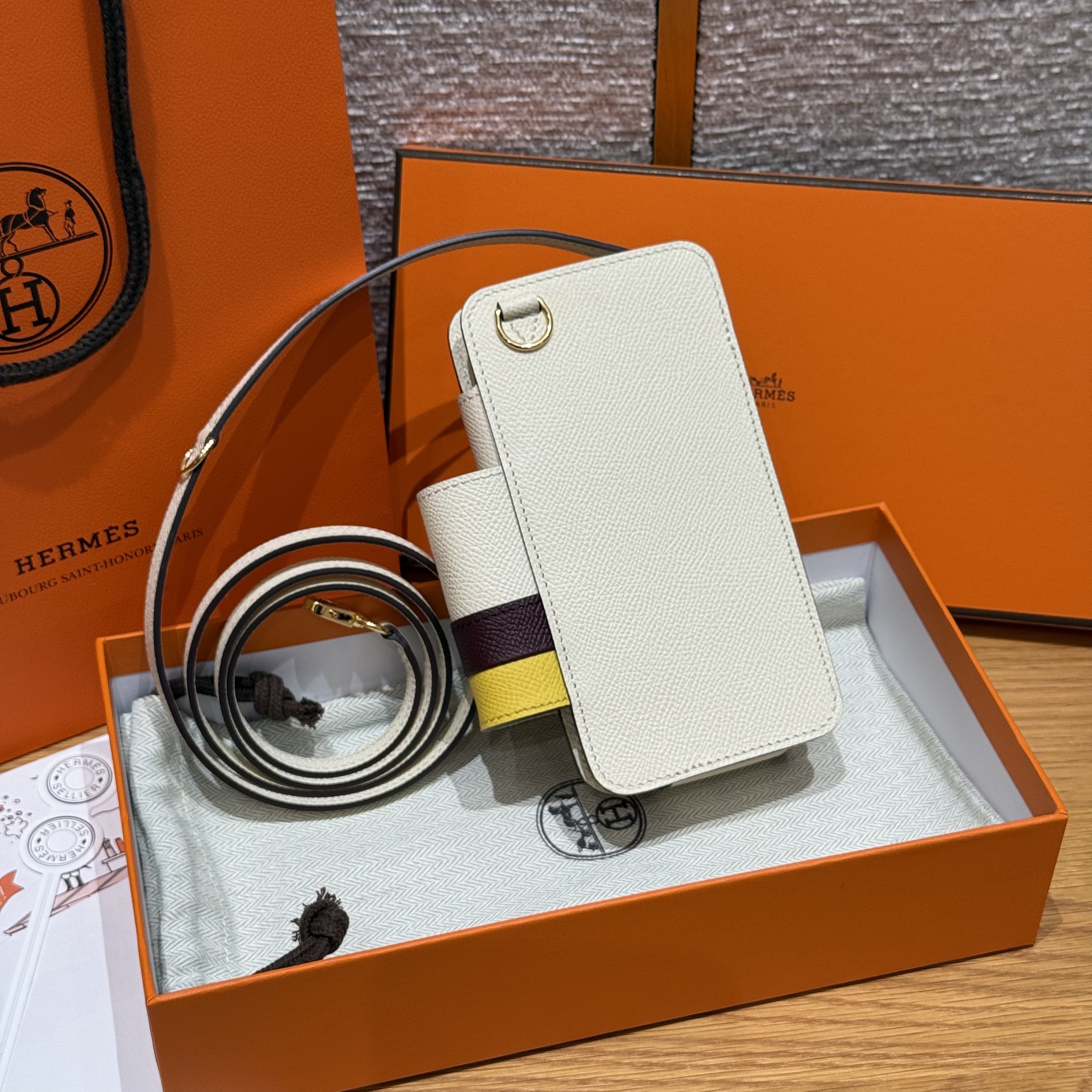 최고퀄 에르메스 올수공 에르메스웨이 폰 케이스 Nata & Bordeaux & Jaune De Naples 엡송 가죽 금장