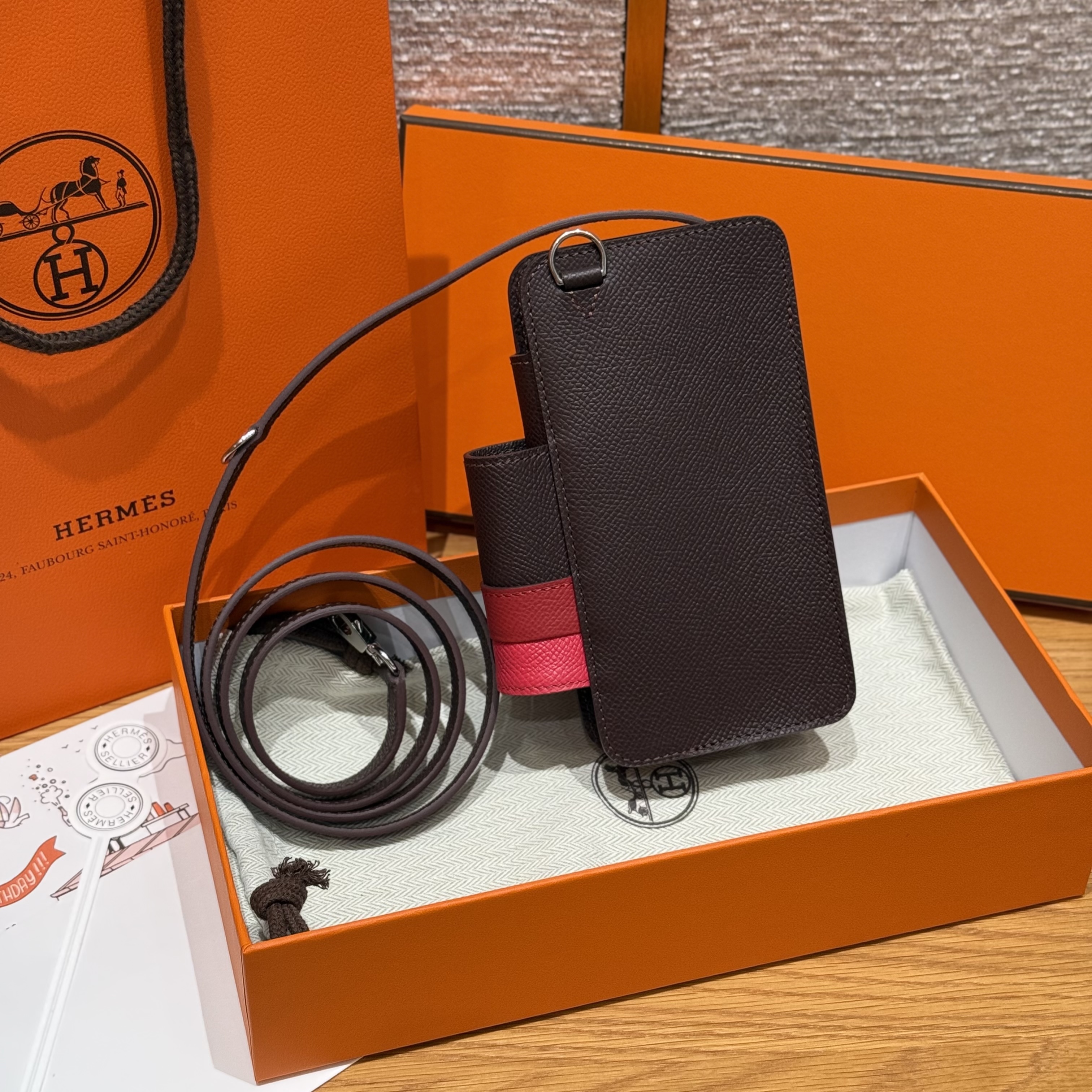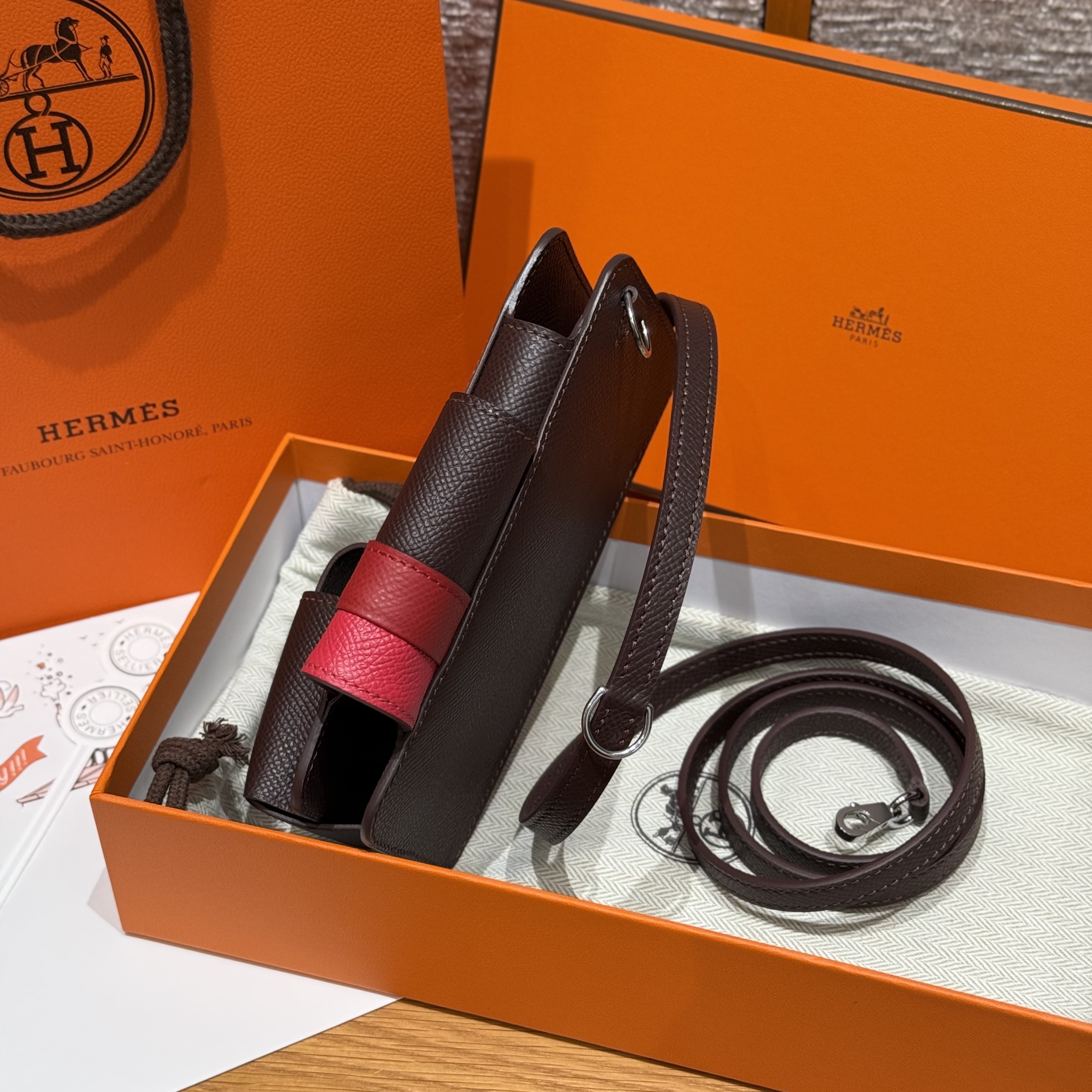 최고퀄 에르메스 올수공 에르메스웨이 폰 케이스 Rouga Seller & Rouge Casaque & Rose Extreme 엡송가죽 은장
