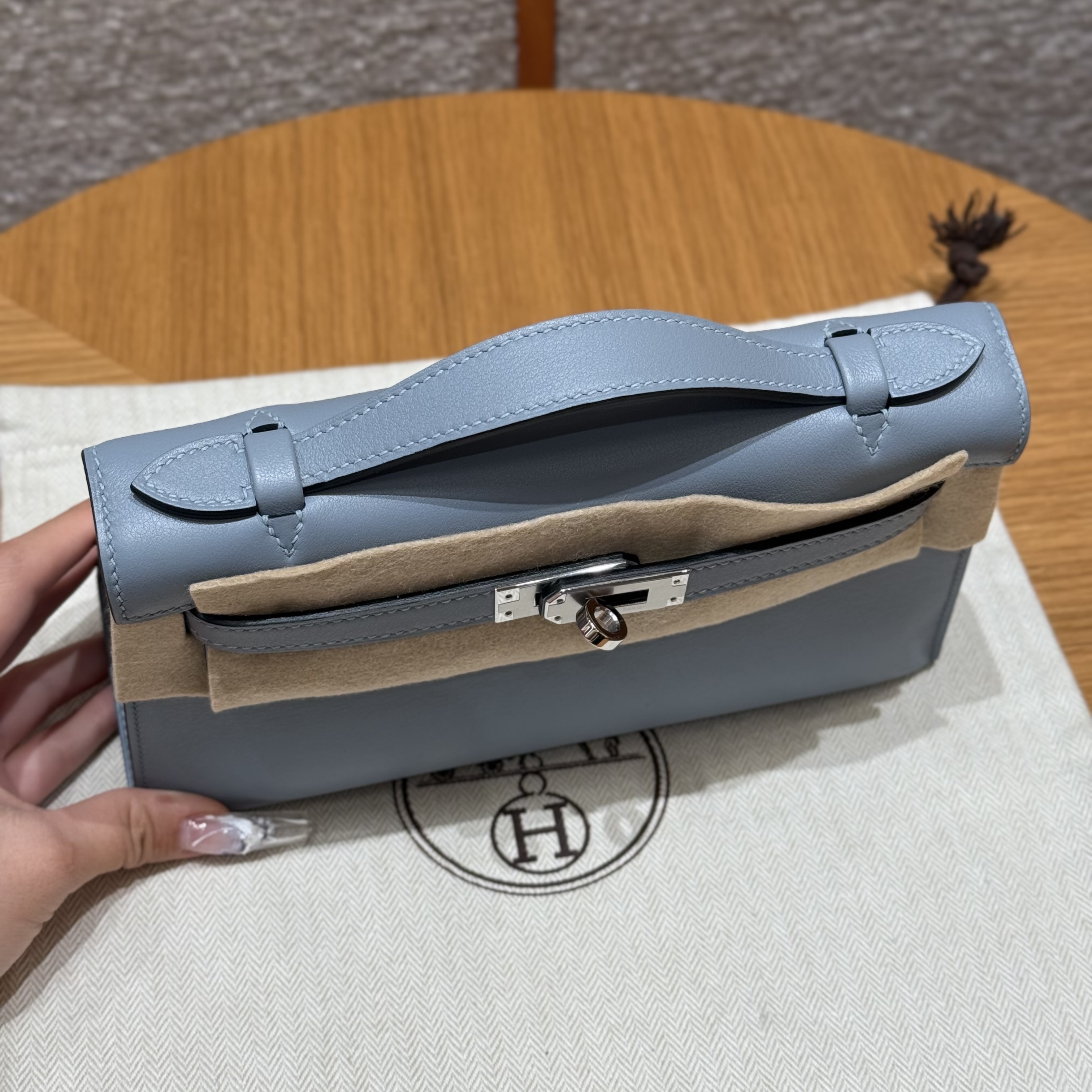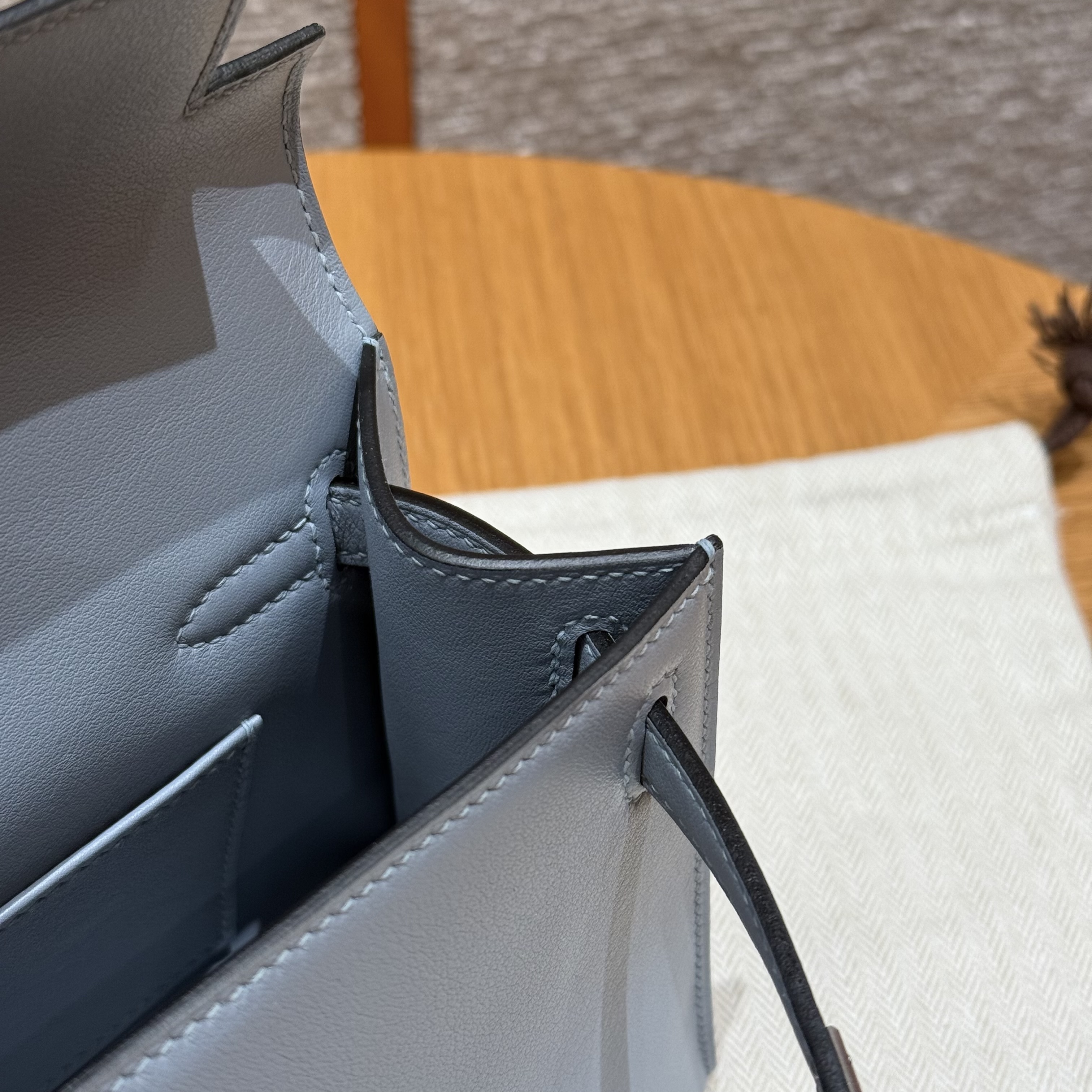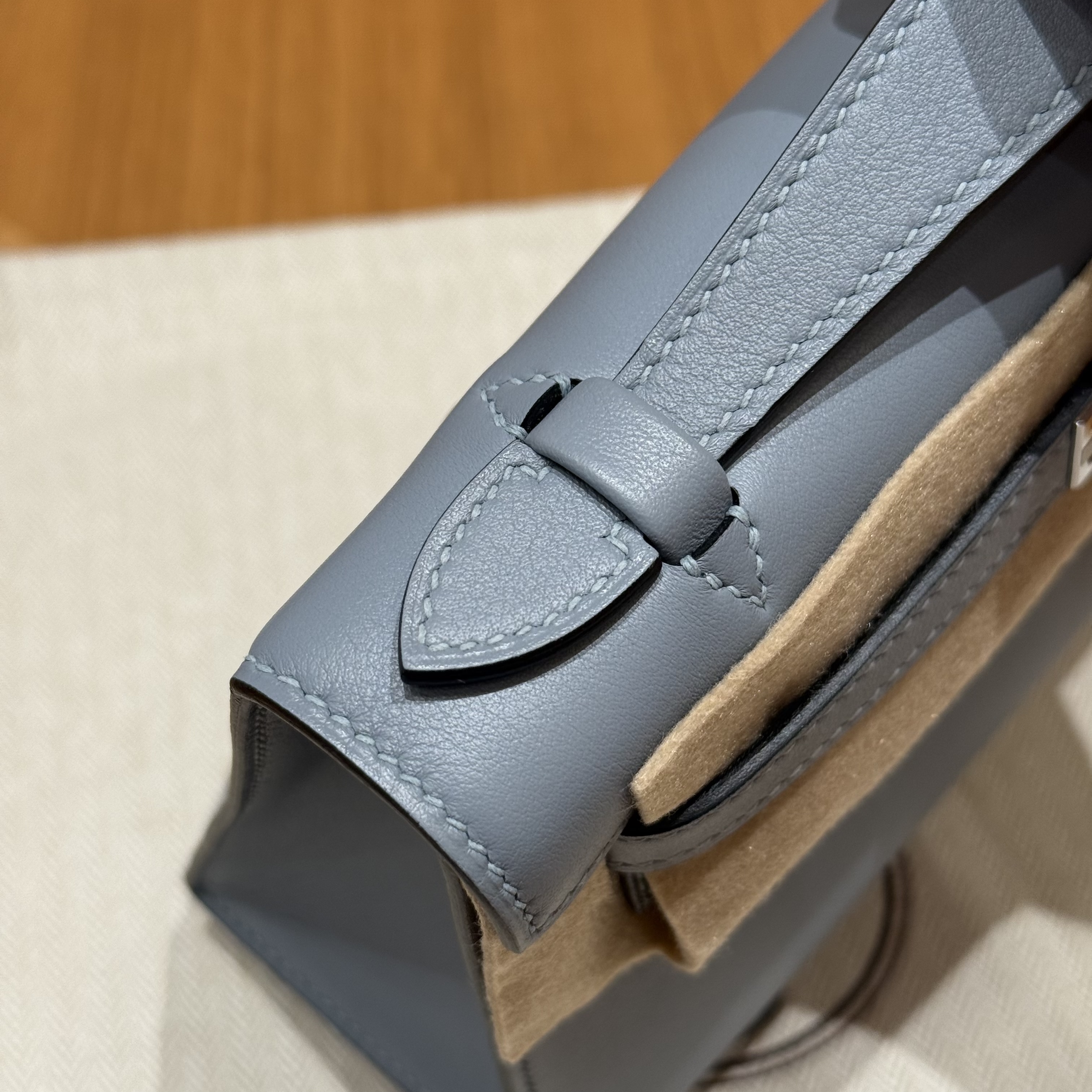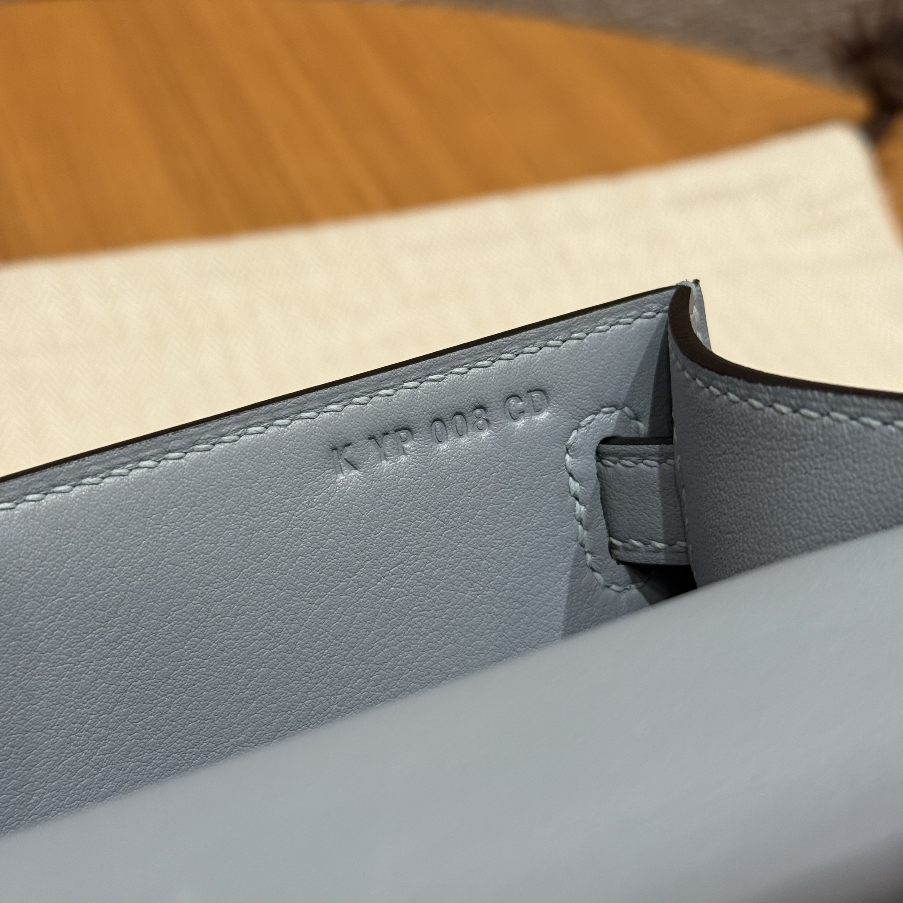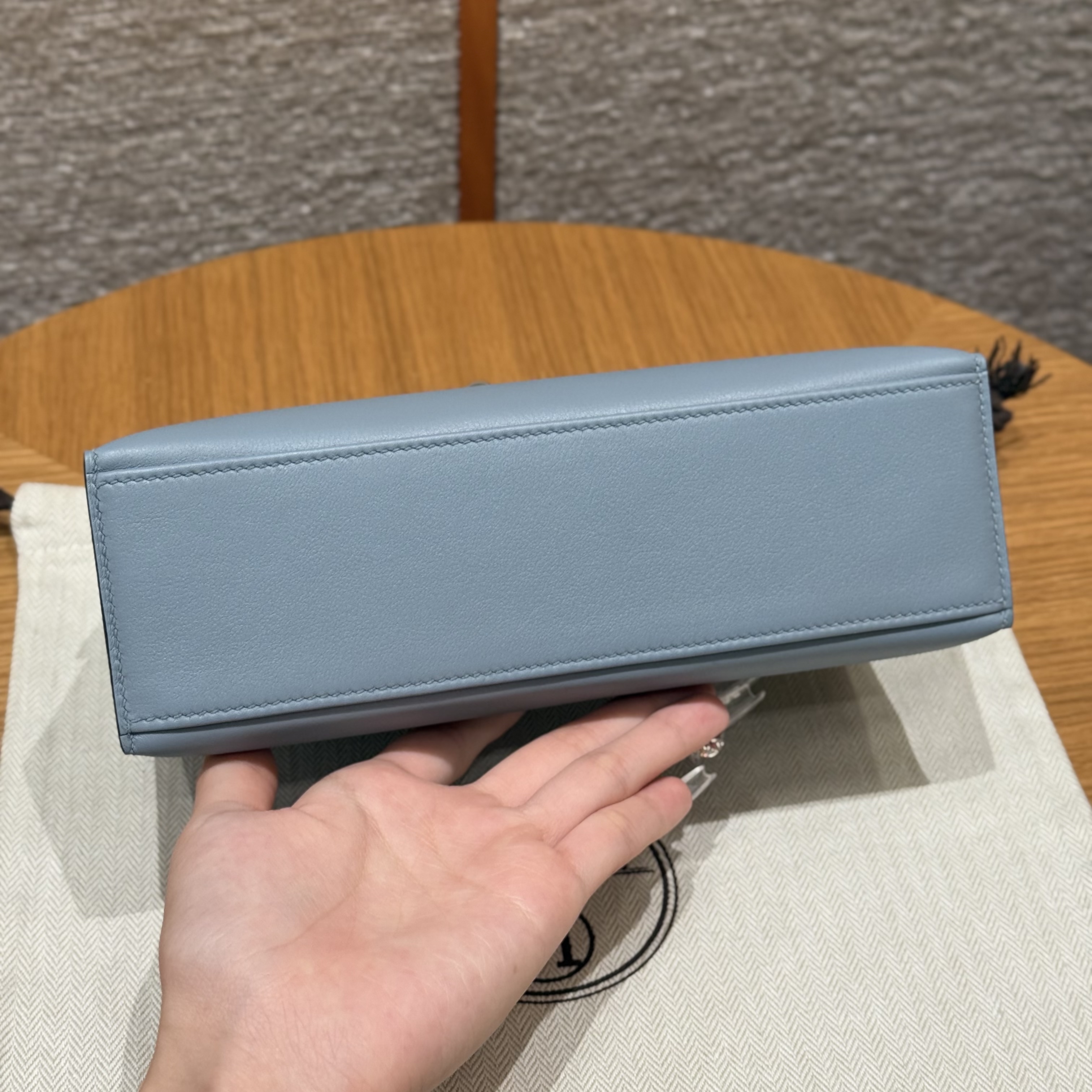 최고퀄 에르메스 올수공 켈리 포쉐트 그레이시 블루 스위프트 가죽 은장