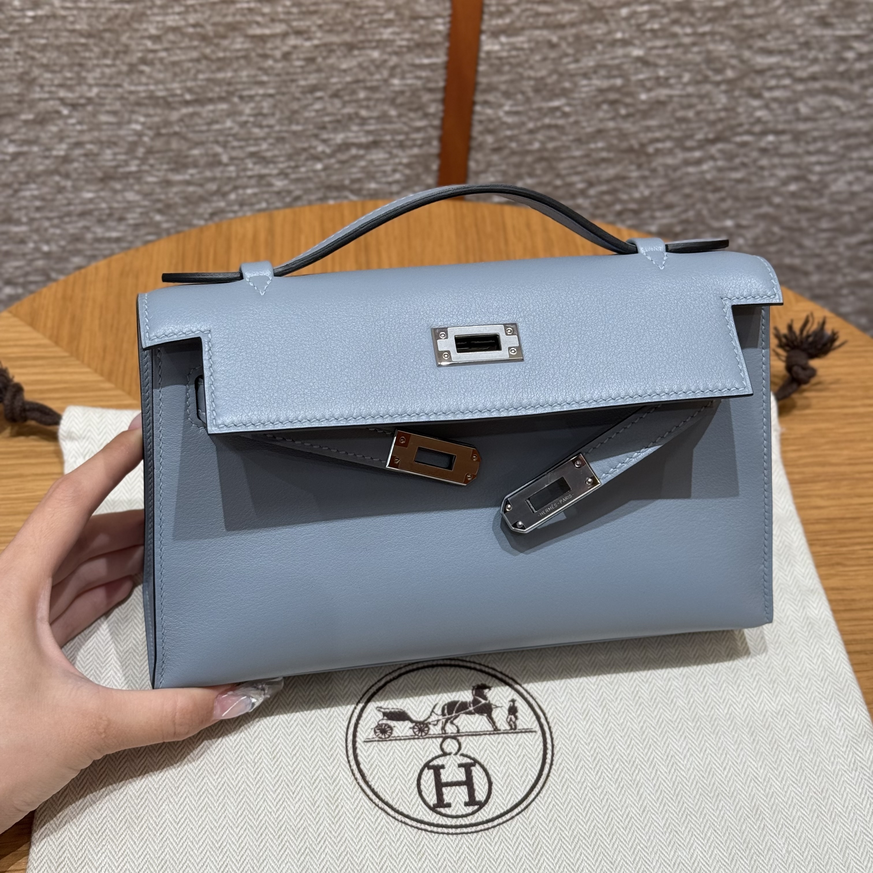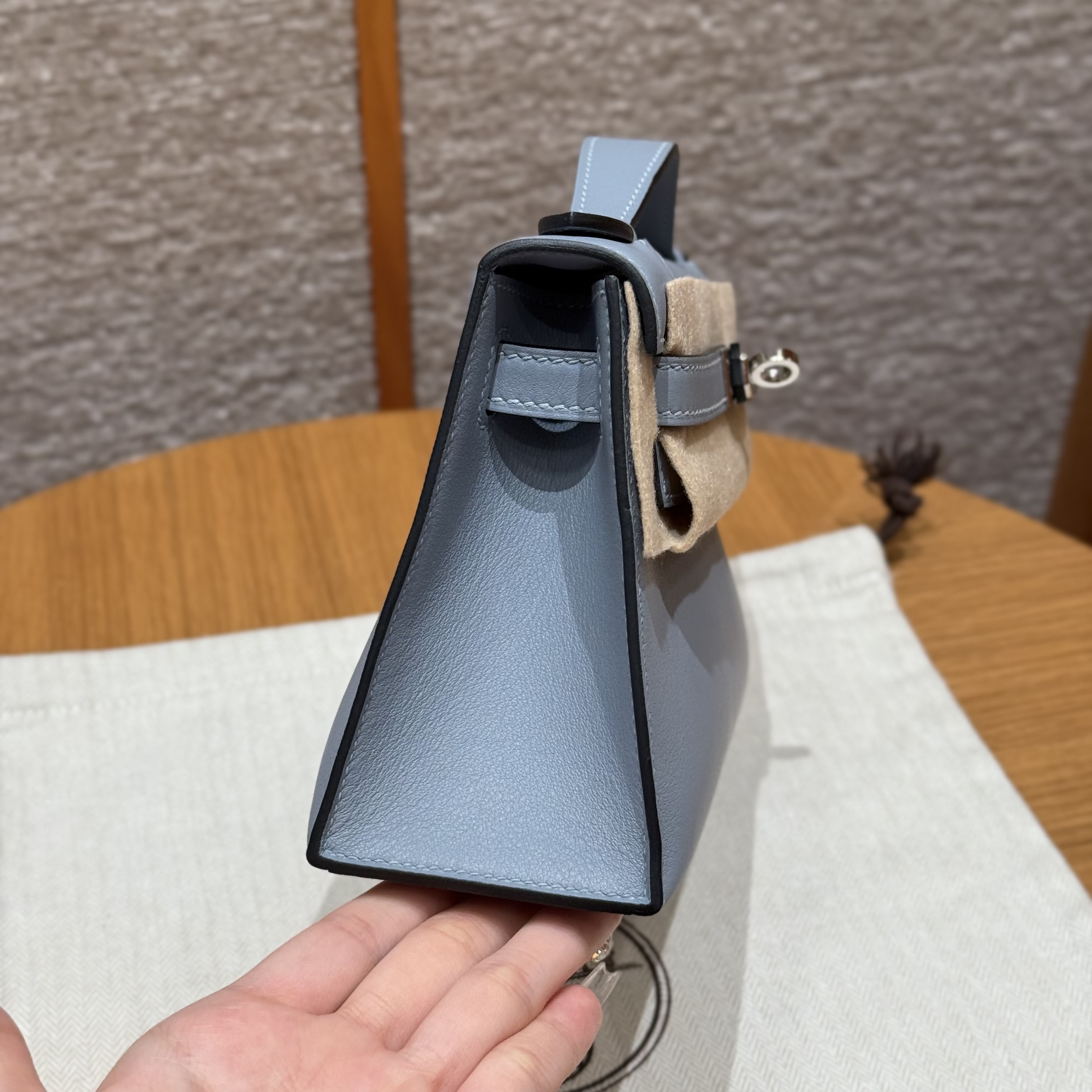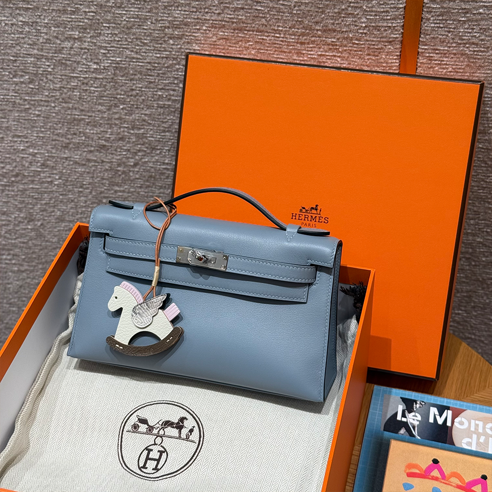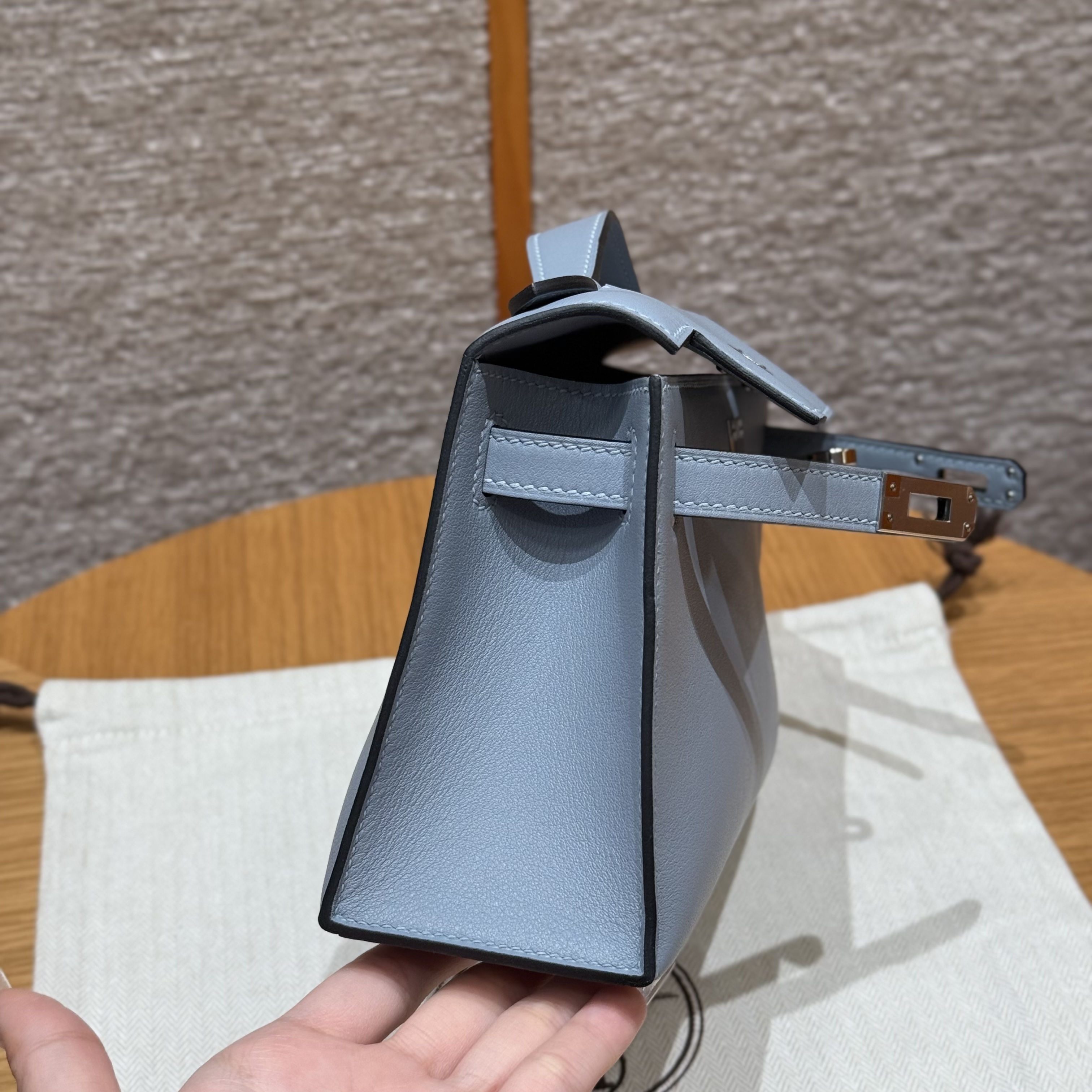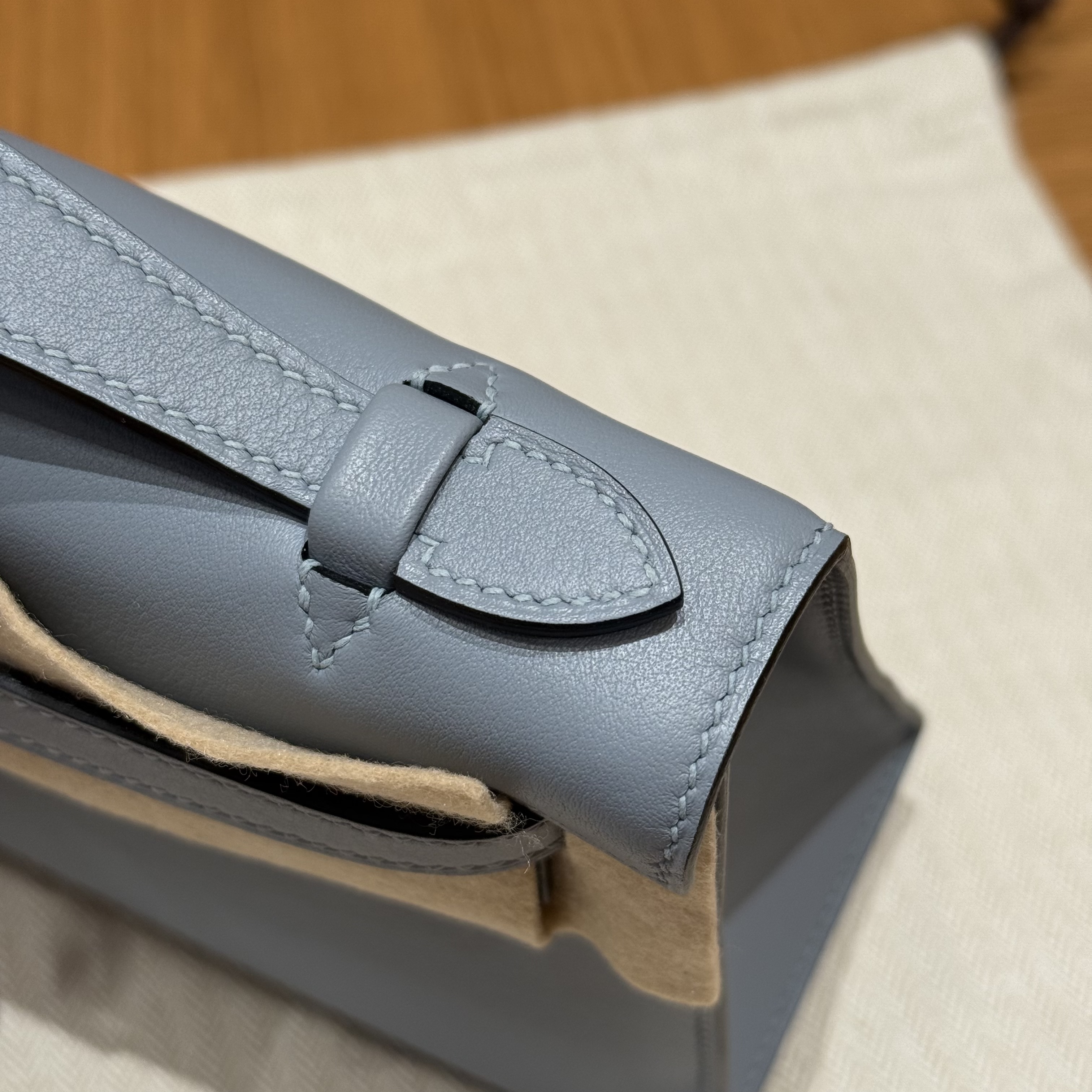 최고퀄 에르메스 올수공 켈리 포쉐트 그레이시 블루 스위프트 가죽 은장