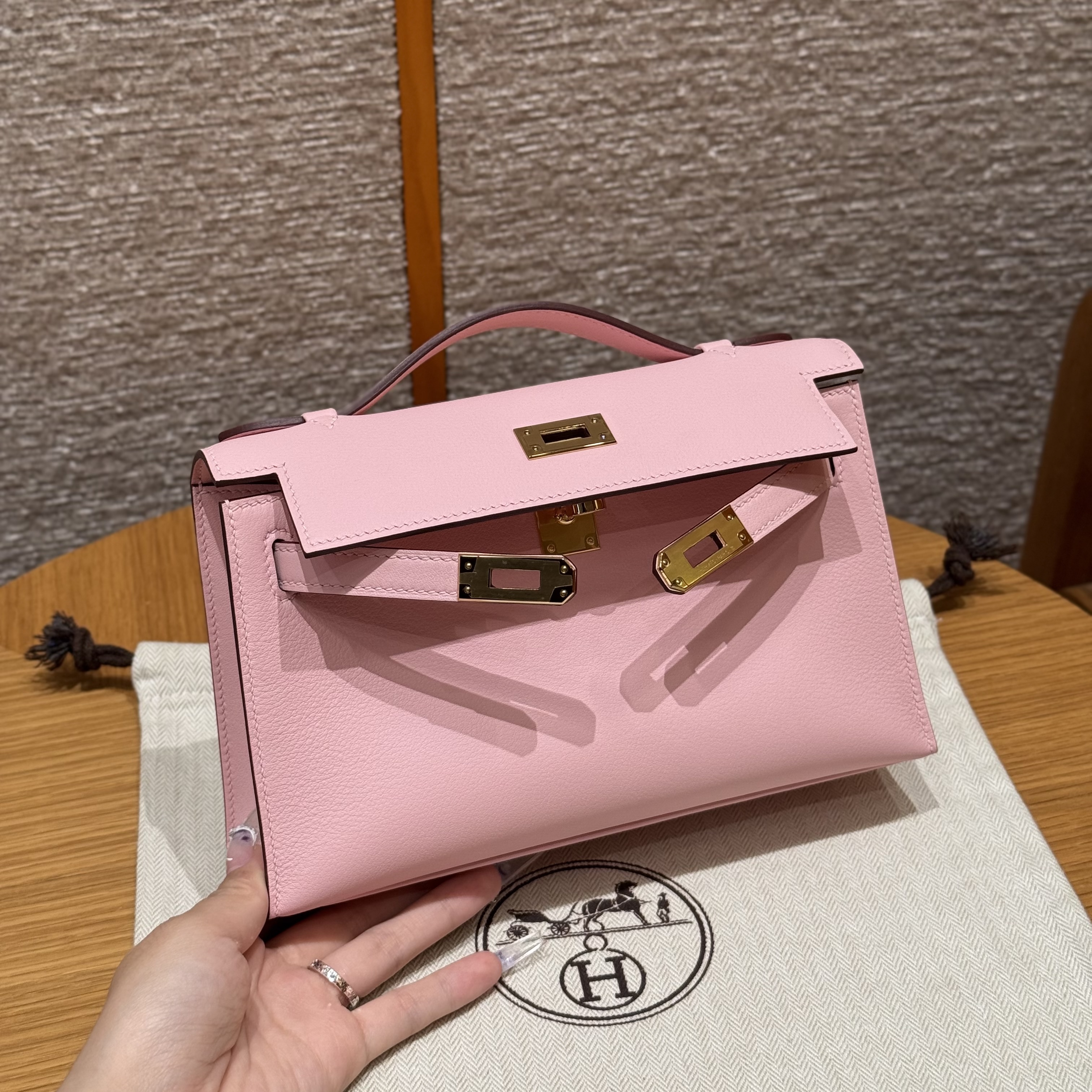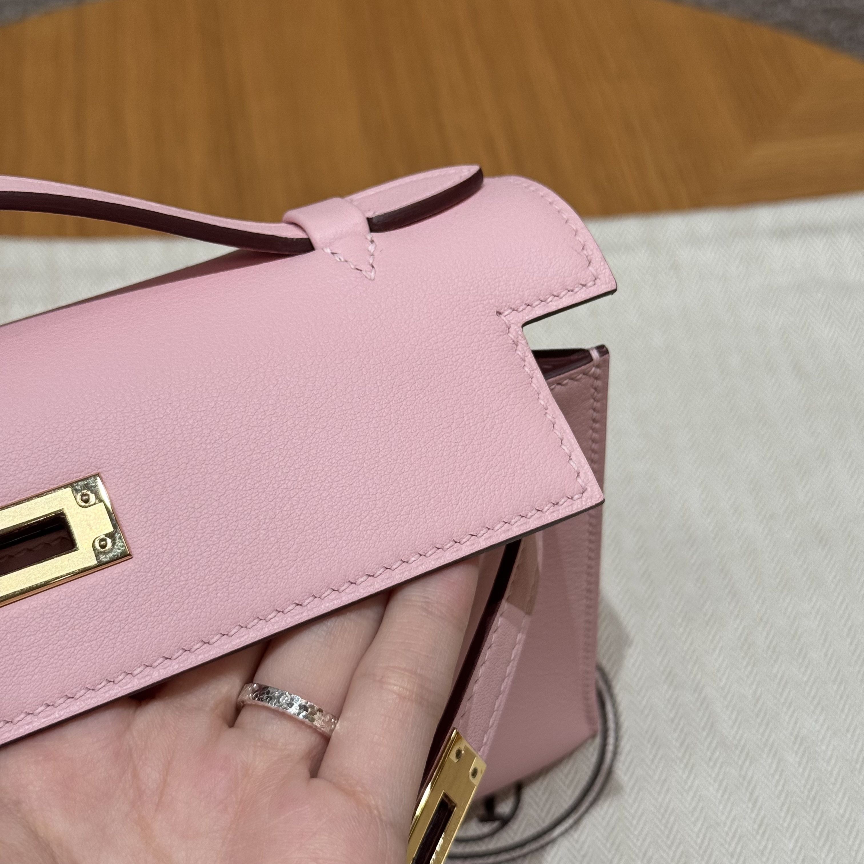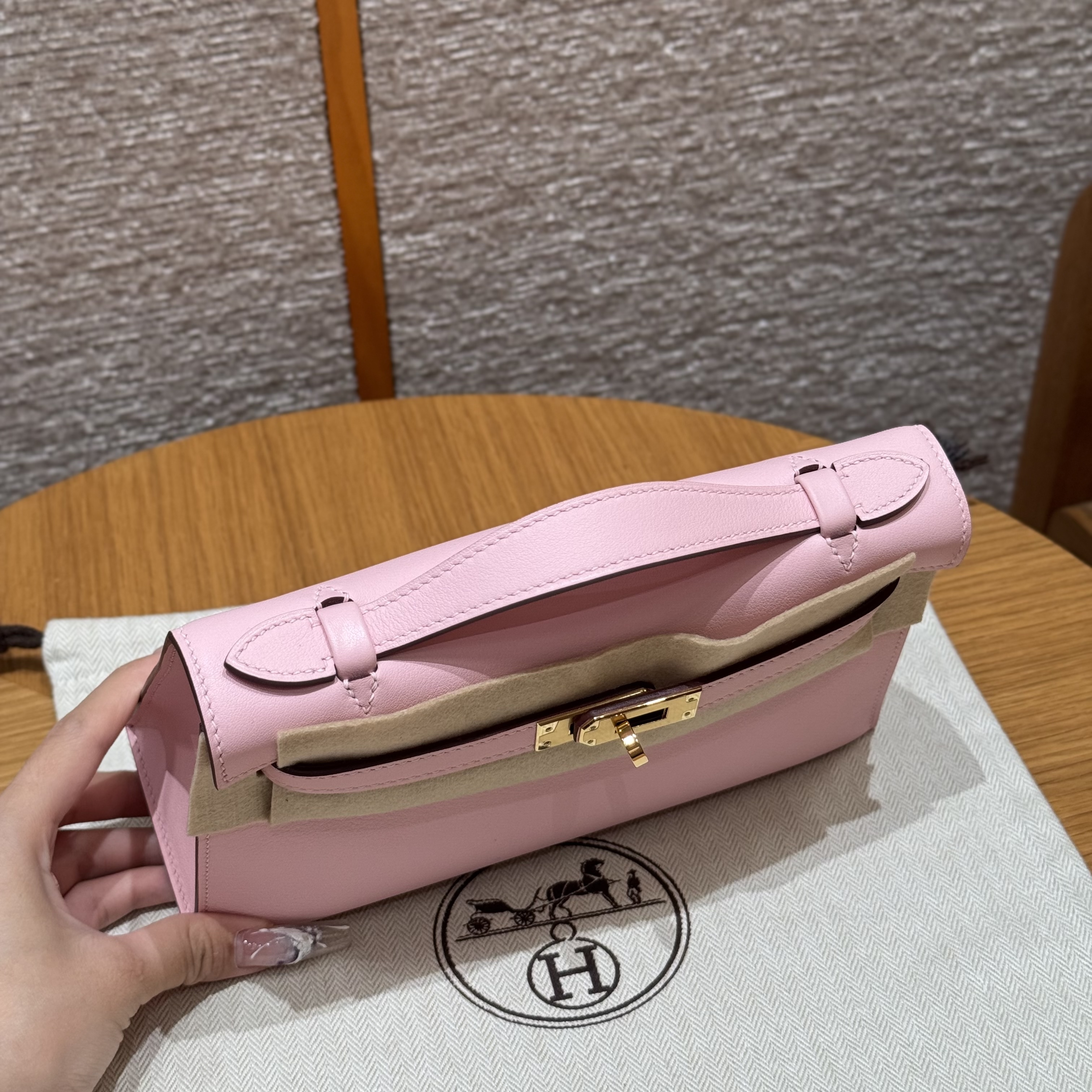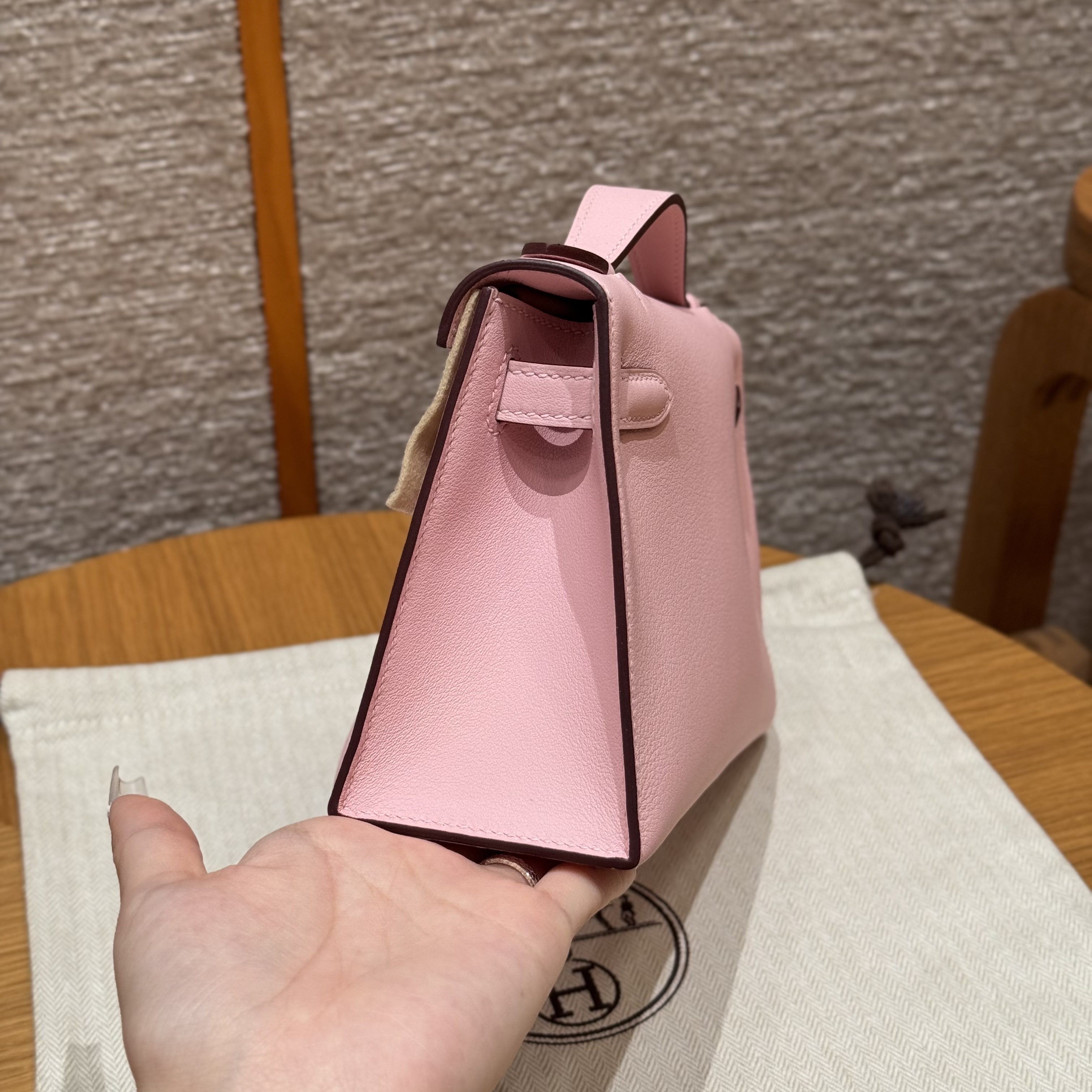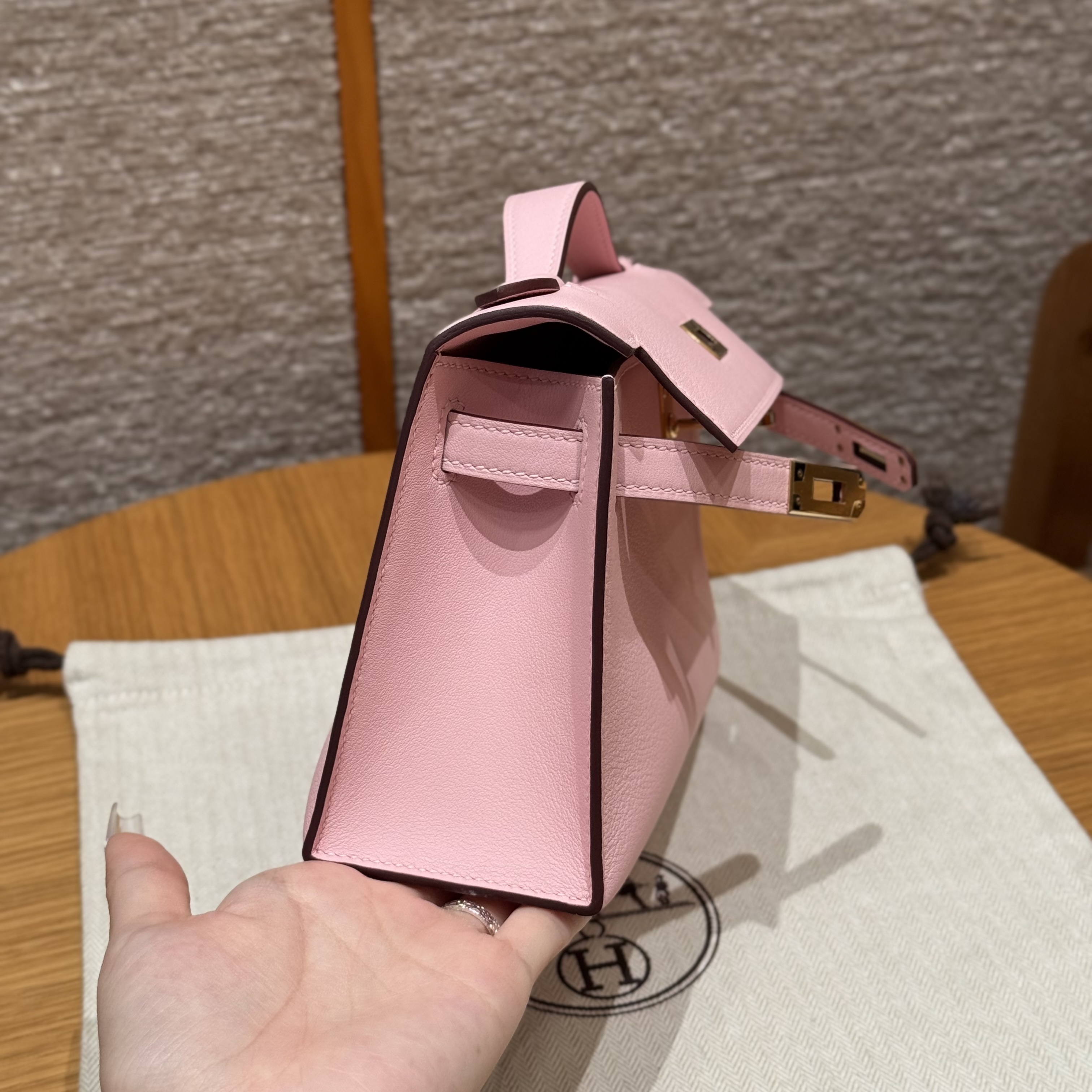 최고퀄 에르메스 올수공 켈리 포쉐트 로즈 사쿠라 스위프트 가죽 금장